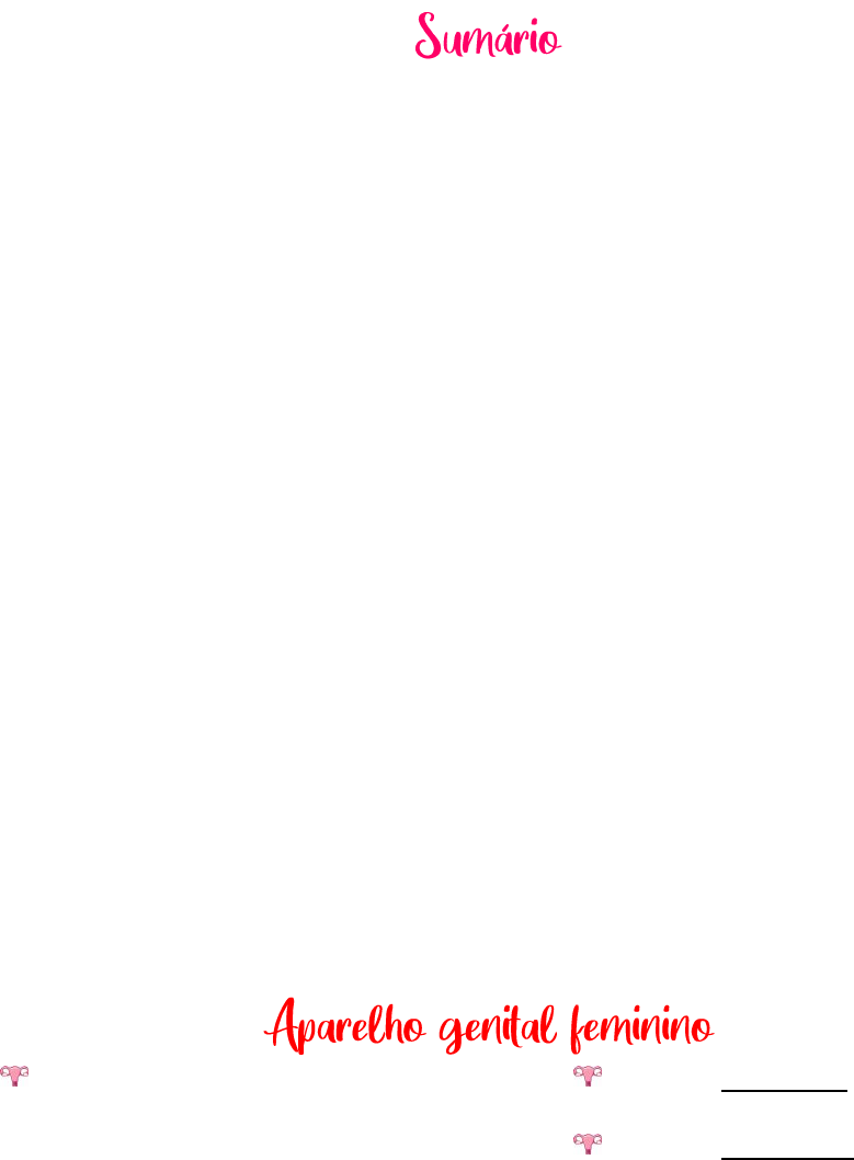 Julia Habibe de Souza – turma 219 Aparelho genital feminino ........................................................................................................................................................ 1 Útero ........................................................................................................................................................................................ 2 Faces ..................................................................................................................................................................................... 3 Ligamentos .......................................................................................................................................................................... 3 Vascularização .................................................................................................................................................................... 6 Inervação ............................................................................................................................................................................. 7 Sintopia (relações anatômicas) ...................................................................................................................................... 7 Influência da idade ................................................................................................................................................................. 8 Ovário ...................................................................................................................................................................................... 9 Vascularização e Inervação........................................................................................................................................... 10 Tuba uterina ......................................................................................................................................................................... 10 Vascularização e inervação ........................................................................................................................................... 11 Vagina..................................................................................................................................................................................... 12 Vascularização e inervação ........................................................................................................................................... 13 Vulva ...................................................................................................................................................................................... 13 Vascularização e inervação ........................................................................................................................................... 14 Mama ..................................................................................................................................................................................... 14 Vascularização e inervação ........................................................................................................................................... 14 Referências: .......................................................................................................................................................................... 14 Os órgãos genitais femininos estão ancorados no assoalho pélvico, que tem uma descontinuidade (canal vaginal atravessa o assoalho, em função da fisiologia do ato de parir). Ele também serve de suporte para estruturas, como o útero. Estruturas intra pélvicas: útero, tubas uterinas, ovário, vagina Estruturas extra pélvicas: monte púbico, grandes e pequenos lábios, clitóris e vagina Julia Habibe de Souza – turma 219 É organizado em camada externa de tec. conjuntivo = perimétrio; Camada média com mm liso = miométrio; Camada mais interna = tec conj. frouxo disposto em várias camadas de acordo com faixa etária e conhecida como endométrio; É intraperitoneal Acima da região das tubas uterinas = fundo uterino; Abaixo delas = corpo uterino; Parte que afunila/estrangula: istmo Colo uterino/cérvice/cérvix: parte projetada para canal vaginal - porção intravaginal do colo uterino; Outra porção está acima, porção supravaginal/intrapelvica; MACETE: Orifício cervical externo olha para canal vaginal; Orifício que olha para cavidade pélvica é chamado orifício interno do canal cervical/colo uterino, leva à cavidade endometrial Julia Habibe de Souza – turma 219 Cavidade endometrial tem continuidade com tuba uterina; Extremidade da tuba uterina e ovário estão dentro da cavidade peritoneal; Ventral/vesical: voltada para bexiga, peritônio que recobre reflete-se na escavação vesicouterina Dorsal/Intestinal: fossa retouterina é escavação peritoneal Sustentação do útero: diafragma pélvico e ligamentos com auxílio dos vasos Ligamentos largos: lâmina fibrosa coberta por peritônio que divide, junto ao útero, a cavidade pélvica em fossa vesico uterina e reto uterina; Reveste útero e tuba (relação e conexão do útero às paredes laterais da pelve); Mesométrio compõe o ligamento; Entre as lâminas tem a. uterina, tuba uterina, ligamento redondo e paramétrio Atrás do ligamento largo = ovários Ligamento redondo: homólogo do funículo espermático, não tem conotação estrutural para sustentação, é prega de tecido. Ligamento cardinal/paracolpo/cervical cardinal: continuação do largo; é lâmina da fáscia subserosa; Ligamento uterossacral: Atrás do útero, na região supravaginal do colo; Do colo uterino ao sacro contém mm retouterino; Importante para manutenção do útero na cavidade pélvica = impede que ele desça por canal vaginal; Prega vesicouterina/ligamento anterior Prega retovaginal/