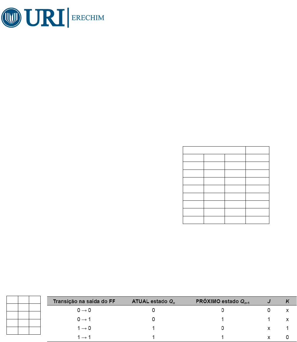 Prova I Obs: É obrigatório colocar o desenvolvimento de cada questão 1. (1.0) Desenhe o diagrama lógico representativo da expressão booleana ((𝐴 + 𝐵𝐶 + 𝐷) (𝐴 + 𝐷)(�̅�𝐵 + 𝐶̅)).̅̅ ̅̅ ̅̅ ̅̅ ̅̅ ̅̅ ̅̅ ̅̅ ̅̅ ̅̅ ̅̅ ̅̅ ̅̅ ̅̅ ̅̅ ̅̅ ̅̅ ̅̅ ̅̅ ̅̅ ̅̅ ̅̅ ̅̅ 2. (1.0) Sobre paridade, responda: a. Um emissor e receptor combinaram em enviar mensagens com paridade ímpar. Considerando que a mensagem enviada pelo emissor foi 10110100, qual será a avaliação do receptor com relação à mensagem recebida? b. Considere que um emissor precise enviar a seguinte mensagem 1111110 com paridade par, qual será a mensagem final enviada? 3. (1.0) Usando mapas de Karnaugh, simplifique as seguintes expressões: a) �̅� . 𝐵 ̅. 𝐶 + �̅� . 𝐵. 𝐶 + 𝐴 . 𝐵 ̅. 𝐶̅ + 𝐴 . 𝐵 ̅. 𝐶 + 𝐴. 𝐵. 𝐶̅ b) �̅� . 𝐵 ̅. 𝐶 + 𝐴 . 𝐵 ̅. 𝐶̅ + 𝐴 . 𝐵. 𝐶 + + 𝐴 . 𝐵 ̅. 𝐶 4. (1.0) A partir da tabela verdade da Figura à direita, execute as seguintes tarefas: a. Escreva a expressão booleana não simplificada. b. Utilize o mapa de Karnaugh para simplificar a expressão booleana do item a. c. Escreva a expressão booleana simplificada em termos mínimos. d. Desenhe o circuito lógico a partir da expressão booleana simplificada. Entradas Saída C B A Y 0 0 0 1 0 0 1 0 0 1 0 1 0 1 1 1 1 0 0 0 1 0 1 0 1 1 0 0 1 1 1 1 5. (1.0) Simplifique as expressões a seguir: a) �̅��̅�𝐶̅ + �̅�𝐵𝐶̅ + 𝐴𝐵𝐶̅ + 𝐴𝐶 b) (𝐴 + 𝐶)(�̅� + 𝐵 + 𝐶) 6. (1.0) A tabela abaixo (esquerda) mostra nossa sequência de contagem (pode ignorar os estados ausentes). Com base nisso: a) Desenhe o diagrama de transição de estados b) Monte a tabela de estado atual, próximo estado e as entradas de controle (tabela à direita para auxílio) para o contador (não será necessário simplificar e projetar o circuito lógico) C B A 1 0 0 0 0 1 0 0 0 1 1 0 7. (1.0) Realize as seguintes operações no sistema do complemento de 2. Use oito bits (incluindo o de sinal) para cada número. (converta cada número em binário no sistema de complemento de 2, exibindo a soma final em binário de complemento de 2) a) Some +14 a + 21 b) Some +6 a –18 c) Subtraia –12 de –23 d) Some –43 a –89 Ciência da Computação 30774 – Sistemas Digitais Prof. Gerson Groth 8. (1.0) O contador de 6 bits está representado na imagem abaixo. Modifique ele para que conte de 00000 até 010110. 9. (2.0) Desenhe as formas de onda para a Saída Q (saída inicial de Q em 0) a) Flip Flop D (sensível à borda de descida) b) Flip Flop JK sensível à borda de subida (utilizar valor imediatamente anterior à borda do clock)