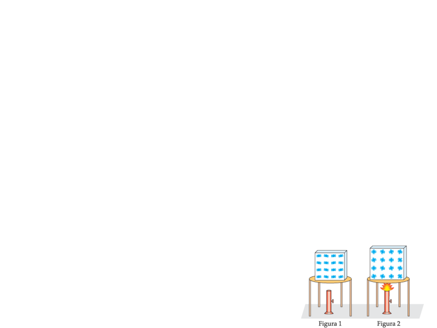 13/05/2021 Dilatação Térmica →Salvo algumas exceções, todos os corpos, quer sejam sólidos, líquidos ou gasosos, dilatam-se quando a sua temperatura aumenta. → Os átomos que constituem um sólido se distribuem ordenadamente, dando origem a uma estrutura que é denominada rede cristalina do sólido. A ligação entre esses átomos se faz por meio de forças elétricas, que atuam como se existissem pequenas molas unindo um átomo a outro. Esses átomos estão em constante vibração em torno de uma posição média de equilíbrio. → Quando a temperatura aumenta, há um aumento da agitação, fazendo com que eles, ao vibrar, afastem-se das suas posições de equilíbrio. Em consequência disso, a distância média entre os átomos torna-se maior, ocasionando a dilatação do sólido. 1 Dilatação Térmica: Variação da dimensão de um corpo quando sua temperatura varia. - Dilatação Linear - Dilatação Superficial - Dilatação Volumétrica Entre elas temos: 2 13/05/2021 Dilatação Linear Estuda a dilatação em apenas uma dimensão (comprimento). 4 13/05/2021 Problema exemplo: A dilatação térmica dos sólidos é um fenômeno importante em diversas aplicações de engenharia, como construções de pontes, prédios e estradas de ferro. Considere o caso dos trilhos de trem serem de aço, cujo coeficiente de dilatação é α = 11 . 10-6 °C-1. Se a 10°C o comprimento de um trilho é de 30m, de quanto aumentaria o seu comprimento se a temperatura aumentasse para 40°C? RESOLUÇÃO: O cálculo da dilatação linear ΔL, do trilho é: ΔL = L0 . α . ΔT ΔL = 30 . (11 . 10-6) . (40 – 10) = 99 . 10-4 m ou 0,0099m 5 13/05/2021 Os componentes de uma lâmina bimetálica são o aço e o zinco. Os coeficientes de dilatação linear desses metais são, respectivamente, 1,2 . 10-5 °C-1 e 2,6 . 10-5 °C-1. Em uma determinada temperatura, a lâmina apresenta-se retilínea. Quando aquecida ou resfriada, ela apresenta uma curvatura. Explique por quê. RESOLUÇÃO Como zinco > aço, para um mesmo aumento de temperatura o zinco sofre uma dilatação maior, fazendo com que na lâmina ocorra uma dilatação desigual, produzindo o encurvamento. Como a dilatação do zinco é maior, ele ficará na parte externa da curvatura. No resfriamento, os metais se contraem. O zinco, por ter α maior, sofre maior contração. Assim, a parte de aço ocupa a parte externa da curvatura. Problema exemplo: 6 13/05/2021 Dilatação Superficial Estuda a dilatação em duas dimensões (comprimento e largura). 7 13/05/2021 O que acontece com o diâmetro do orifício de uma coroa de alumínio quando esta é aquecida? RESOLUÇÃO A experiência mostra que o diâmetro desse orifício aumenta. Para entender melhor o fenômeno, imagine a situação equivalente de uma placa circular, de tamanho igual ao do orifício da coroa antes de ser aquecida. Aumentando a temperatura, o diâmetro da placa aumenta. 9 13/05/2021 Uma chapa possui área de 4m2 a 0oC. Aquecendo-se a chapa a 50oC, de quanto aumenta a área da chapa e qual deverá ser sua área final. Dado = 10.10-6 oC-1 ΔA = A0 . β . ΔT Obs.: β = 2.α ΔA = 4 . (2 x 10 . 10-6) . (50 – 0) = 0,004m2 A = 4 + 0,004 = 4,004m2 10 13/05/2021 Dilatação Volumétrica Estuda a dilatação em três dimensões (comprimento, largura e espessura). 11 13/05/2021 O volume de uma esfera metálica, a certa temperatura. é 100cm3. Que variação de volume sofrerá sob o acréscimo de 40oC de temperatura. Suponha ser constante e igual a 1.10-5 oC-1 o coeficiente de dilatação linear do material de que é feita a esfera. ΔV = V0 . γ . ΔT Obs.: γ = 3.α ΔV = 100 . (3 x 1 . 10-5) . 40 = 0,12cm3 Problema exemplo: 12 13/05/2021 Dilatação Volumétrica dos líquidos. Os líquidos sempre estão contidos em recipientes sólidos. Portanto quando são aquecidos ambos se dilatam. 13 13/05/2021 O caso da água A água é o líquido mais comum, no entanto, seu comportamento em termos de dilatação térmica é uma verdadeira exceção. Gráfico I O gráfico I mostra esse comportamento: de 0°C até 4°C o volume da água diminui com o aquecimento. Somente a partir de 4°C é que, com o aquecimento, a água aumenta de volume (como acontece aos demais líquidos). 14 13/05/2021 Comentário sobre o caso da água Gráfico II O gráfico II descreve a variação da densidade d da água com a temperatura. Como a densidade de um corpo é a sua massa (m) dividida pelo seu volume (V), ou seja, , tem-se que a densidade da água é inversamente proporcional ao seu volume durante a variação da temperatura, pois a massa permanece constante. 15 13/05/2021 Comentário sobre o caso da água Assim, de 0°C a 4°C a densidade da água aumenta com o aquecimento, pois seu volume diminui; a partir de 4°C a densidade da água diminui com o aquecimento, porque seu volume aumenta. A densidade da água é máxima a 4°C e seu valor é 1,0000 g/cm3. Em todas as outras temperaturas sua densidade é menor. 16 T L L i D = D . . a i L L L - = D T A A i D = D . . b i A A A - = D a b . 2 = T V V i D = D . . g i V V V - = D a g . 3 = T V V i D = D . . g rec ap liquido g g g + =