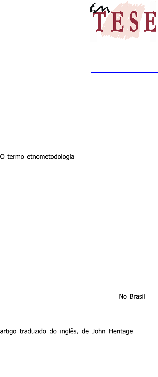 Revista Eletrônica dos Pós-Graduandos em Sociologia Política da UFSC Vol. 1 nº 1 (1), agosto-dezembro/2003, p. 149-168 www.emtese.ufsc.br A etnometodologia e a análise da conversação e da fala Adalto H. Guesser1 1. Introdução O termo etnometodologia designa uma corrente da sociologia americana, que surgiu na Califórnia no final da década de 1960, tendo como seu principal marco fundador a publicação do livro Studies in Ethnomethodology [Estudos sobre Etnometodologia], em 1967, de Harold Garfinkel. A publicação da obra de Garfinkel provocou uma reviravolta na “sociologia tradicional” gerando intensos debates no meio acadêmico das universidades americanas e européias, particularmente inglesas2 e alemãs (Coulon, 1995a, p. 7). Segundo Coulon, na França a etnometodologia chegou no início da década de 1970, quando traduções de textos etnometodológicos começaram a ser publicados em algumas revistas. No entanto, somente a partir de meados da década de 1980 é que passou a ser ensinada em várias universidades francesas e, posteriormente, já nos anos 1990, é que um grupo de pesquisadores da sociologia da educação, desenvolvendo trabalhos com base etnometodológica3, propagaram largamente a nova teoria naquele país. No Brasil, a etnometodologia ainda é pouco conhecida nos campos da sociologia, possuindo alguns raros trabalhos publicados; são exemplos as duas obras traduzidas do francês, de Alain Coulon, (1995a e 1995b) e um artigo traduzido do inglês, de John Heritage (1999). Outras referências esparsas e bastante resumidas podem ser encontradas em manuais de metodologia, como o caso de um breve capítulo dedicado à etnometodologia na obra de Haguette (1992) e na de 1 Mestrando em Sociologia Política (UFSC), Bacharel em Ciências Sociais (UFSC), Correio Eletrônico: adalto@cfh.ufsc.br 2 Ressalta-se aqui o importante trabalho intitulado Ethnomethodology de Roy Turner (1974). 3 Alan Coulon (1995b) indica alguns trabalhos franceses no campo da sociologia geral, a obra de Jean- Michel Berthelot L’intelligence du social, Paris, PUF, 1990 e La construction de la sociologie, Paris, PUF (“Que sais-je?”, n. 2602), 1991. Daniela Realce Daniela Sublinhado Daniela Realce Daniela Sublinhado Daniela Realce GUESSER, A. H. / EmTese, vol. 1, nº 1 (1), p. 149-168 150 Birnbaum & Chazel (1977), dentre outros. Nas universidades brasileiras, a etnometodologia ainda é mais utilizada pelos campos da educação infantil, ensino de matemática e de educação física4. Heritage (1999) justifica que vários fatores contribuíram para que o surgimento da etnometodologia tenha sido bastante turbulento. Aponta como principal causa o fato de os escritos de Garfinkel serem altamente condensados e não estarem sistematicamente articulados em termos de referência da sociologia clássica, dando origem a muita confusão e equívocos, mesmo entre os adeptos da nova matriz teórica. Soma-se ainda o fato de a obra de Garfinkel ter sido publicada justamente num período de “caótica convulsão nas ciências sociais”, principalmente nos Estados Unidos, com a crise do paradigma dominante, o estrutural-funcionalismo parsoniano. Mesmo antes da publicação dos Estudos sobre Etnometodologia, Garfinkel já havia se preocupado em “repensar” a teoria da ação parsoniana, cujo corpus teórico vinha criticando e reformulando. Por este motivo, Garfinkel atraiu para si as críticas tantos dos defensores, como dos opositores do estrutural-funcionalismo, legando aos primórdios da etnometodologia uma resistência quase gratuita no meio acadêmico. A perspectiva de Garfinkel parte da base teórica de Parsons, que fora seu orientador entre 1946 e 1952, mas com profundas reformulações advindas da influência da fenomenologia sobre ele exercida através de Alfred Schütz e Eduard Husserl, entre outros, que o levaram a posicionar-se contra certas versões da sociologia tradicional da época (Haguette, 1992). O ponto central da inovação teórica de Garfinkel residia no âmbito de questões conceituais da sociologia, como a teoria da ação social, a natureza da intersubjetividade e a constituição da ação social do conhecimento, com amplas ramificações teóricas e metodológicas (Heritage, 1999, p. 323). Para uma melhor compreensão da obra de Garfinkel se faz necessário uma revisão das principais correntes teóricas que influenciaram o seu pensamento, sendo que destacamos neste trabalho três delas: a teoria da ação de Parsons, a fenomenologia social de Alfred Schütz e o interacionismo simbólico desenvolvido pela “Escola de Chicago”. 4 Esta afirmação não é precisa, parte de nossa constatação, bastante superficial, após ter explorado o tema pela Internet e verificado o uso da etnometodologia nas áreas aqui apresentadas. Daniela Realce Daniela Sublinhado Daniela Sublinhado Daniela Realce Daniela Realce Daniela Realce Daniela Sublinhado Daniela Realce Daniela Realce Daniela Lápis Daniela Lápis GUESSER, A. H. / EmTese, vol. 1, nº 1 (1), p. 149-168 151 2. A influências da teoria da ação social de Talcot Parsons Talcot Parsons exerceu forte influência sobre o pensamento de Garfinkel. Importante figura na sociologia americana, tentou com sua obra integrar os trabalhos de Durkheim, Weber, Pareto e outros nomes de peso da sociologia mundial. Por esta razão, a teoria da ação é denominada por muitos como “a grande teoria”. O principal feito de Parsons foi reabilitar a sociologia de matriz européia aos trabalhos desenvolvidos nos Estados Unidos. Segundo Coulon (1995a), sua perspectiva provinha de um ambiente acadêmico rico, pois o departamento em Havard, ao qual estava vinculado e liderava, apresentava a vantagem de reunir a sociologia propriamente dita, a psicologia e a antropologia. A teoria parsoniana da ação se constituiu basicamente como uma teoria da motivação da ação. Segundo Parsons, as motivações dos atores sociais são integradas em modelos normati
