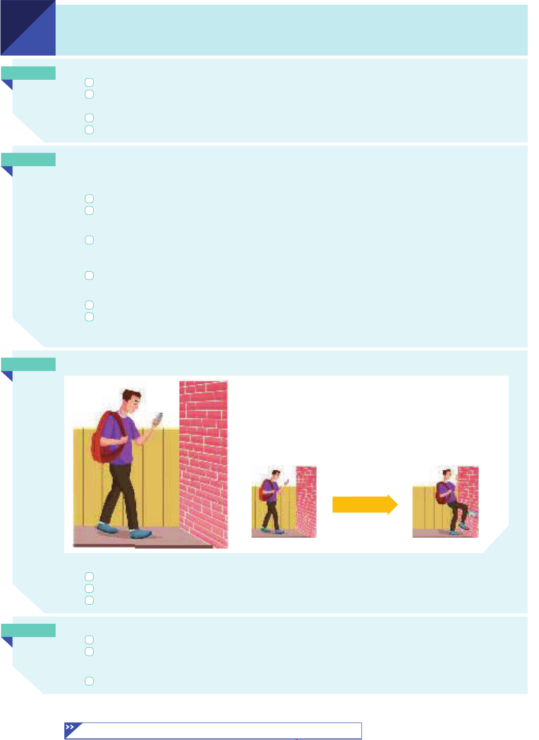 facebook.com/LinguaLIB vk.com/lingualib I’m going to (do) Unit 20 A I am going to do something = I have already decided to do it, I intend to do it: ‘Are you going to eat anything?’ ‘No, I’m not hungry.’ a: I hear Sarah won the lottery. What is she going to do with the money? b: She’s going to buy a new car. I’m just going to make a quick phone call. Can you wait for me? This cheese smells horrible. I’m not going to eat it. I am doing and I am going to do I am doing = it is already fixed or arranged. For example, you have arranged to go somewhere or meet somebody: I’m leaving next week. I’ve booked my flight. What time are you meeting Emily this evening? I am going to do something = I’ve decided to do it. Maybe I’ve arranged to do it, maybe not. a: Your shoes are dirty. b: Yes, I know. I’m going to clean them. (= I’ve decided to clean them, but I haven’t arranged this with anybody) I don’t want to stay here. Tomorrow I’m going to look for somewhere else to stay. Compare: I don’t know what I’m doing tomorrow. (= I don’t know my schedule or plans) I don’t know what I’m going to do about the problem. (= I haven’t decided what to do) Oft en the diff erence is small and either form is possible. B now future The man isn’t looking where he is going. He is going to walk into the wall. When we say that ‘something is going to happen’, the situation now makes this clear. The man is walking towards the wall now, so we can see that he is going to walk into it. You can also say that ‘something is going to happen’ in the future. For example:C I was going to do something = I intended to do it, but didn’t do it: We were going to travel by train, but then we decided to drive instead. I was just going to cross the road when somebody shouted ‘Stop!’ You can say that ‘something was going to happen’ (but didn’t happen): I thought it was going to rain, but it didn’t. D Some more examples: Look at those black clouds! It’s going to rain. (we can see the clouds now) I feel terrible. I think I’m going to be sick. (I feel terrible now) The economic situation is bad now and things are going to get worse. I am doing (future) ➜ Unit 19A I will and I’m going to ➜ Unit 23 going to 40 facebook.com/LinguaLIB vk.com/lingualib Exercises Unit 20.1 Write questions with going to. 1 Your friend has won some money. You ask: (what / do?) What are you going to do with it? 2 Your friend is going to a wedding next week. You ask: (what / wear?) 3 Your friend has just bought a new table. You ask: (where / put?) 4 Your friend has decided to have a party. You ask: (who / invite?) 5 Your friend has bought some fish for dinner. You ask: (how / cook?) 20.2 Complete the sentences using I’m going to … / I’m not going to … . Choose from: complain learn run say try wash not/accept not/eat not/tell 1 This cheese smells horrible. I’m not going to eat it. 2 I haven’t been trying hard enough. From now on harder. 3 I have to make a speech tomorrow, but I don’t know what . 4 ‘The car is very dirty.’ ‘I know. it.’ 5 I’ve been offered a job, but it. The pay is too low. 6 a language, but I haven’t decided yet which one. 7 One day in a marathon. It’s my ambition. 8 The food in this restaurant is awful. . 9 Ben doesn’t need to know what happened, so him. 20.3 What is going to happen in these situations? Use the words in brackets. 1 There are a lot of black clouds in the sky. (rain) It’s going to rain. 2 It is 8.30. Tom is leaving home. He has to be at work at 8.45, but the journey takes 30 minutes. (late) He 3 There is a hole in the bottom of the boat. A lot of water is coming in through the hole. (sink) The boat 4 Amy and Ben are driving. The tank is nearly empty. It’s a long way to the nearest petrol station. (run out) They 5 Sarah’s car was badly damaged in an accident. Now it has to be repaired. (cost a lot) It to repair the car. 20.4 Complete the sentences with was/were going to. Choose from: be buy give up phone play say travel 1 We were going to travel by train, but then we decided to go by car instead. 2 I some new clothes yesterday, but I didn’t have time to go to the shops. 3 Tom and I tennis last week, but he’d hurt his knee and had to cancel. 4 I Jane, but I sent her an email instead. 5 I thought the exam hard, but it was easier than I expected. 6 Peter his job, but in the end he decided to stay where he was. 7 I’m sorry I interrupted you. What you ? 20 41