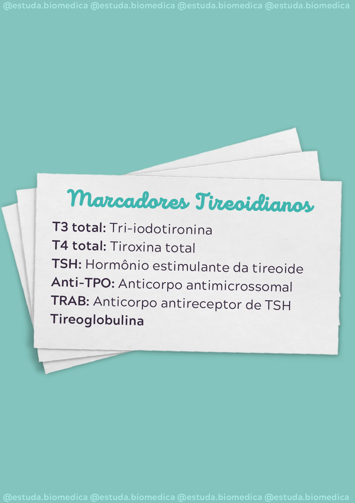 @estuda.biomedica @estuda.biomedica @estuda.biomedica @estuda.biomedica @estuda.biomedica @estuda.biomedica @estuda.biomedica @estuda.biomedica Marcadores Tireoidianos T3 total: Tri-iodotironina T4 total: Tiroxina total TSH: Hormônio estimulante da tireoide Anti-TPO: Anticorpo antimicrossomal TRAB: Anticorpo antireceptor de TSH Tireoglobulina