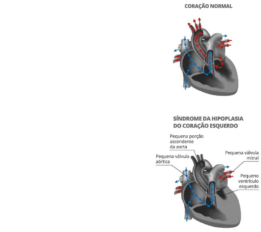 Hipoplasia do coração esquerdo • CONCEITO A palavra hipoplasia é um termo médico que significa subdesenvolvido. Portanto, SHCE é um defeito congênito em que o lado esquerdo do coração está subdesenvolvido, incluindo: - A cavidade cardíaca inferior (o ventrículo esquerdo); - As válvulas cardíacas (válvulas mitral - que controla o fluxo de sangue entre o átrio esquerdo e o ventrículo esquerdo - e aórtica - que regula o fluxo de sangue do ventrículo esquerdo ou câmara de bombeamento principal para a aorta); - E a aorta (maior artéria do corpo, que fornece sangue oxigenado para o corpo e é uma das duas grandes artérias no coração). Fetos e recém-nascidos com síndrome da hipoplasia do coração esquerdo também têm: - Persistência do canal arterial (PCA): Liga as duas grandes artérias (a aorta e a artéria pulmonar). - Forame oval patente (FOP): é uma pequena abertura entre os átrios direito e esquerdo, normalmente presente no útero. Ambos, normalmente, fecham-se logo após o nascimento. A persistência de suas aberturas faz-se de grande importância para a sobrevida dos bebês com SHCE e nós entenderemos isso mais posteriormente. • COMO OCORRE Uma vez que o lado esquerdo do coração é subdesenvolvido, o sangue oxigenado que lá chega, vindo dos pulmões, é desviado para o lado direito do coração, através do defeito do canal atrial, onde ele se mistura com sangue desoxigenado que está retornando do corpo para o coração. Esse sangue relativamente desoxigenado sai do lado direito do coração, entra nos pulmões e atravessa o canal arterial em direção ao corpo. O canal arterial é um vaso sanguíneo que conecta as duas artérias grandes que saem do coração, denominadas artéria pulmonar e aorta. Graças às comunicações que existem entre os lados direito e esquerdo durante a vida fetal, esta condição não altera o desenvolvimento do bebê, fazendo com que ele consiga crescer normalmente ao longo da gravidez. Entretanto, ao nascimento, tanto o canal arterial quanto o forame oval tendem a se fechar espontaneamente. Se isso acontece, no bebê com SHCE, há uma interrupção do fornecimento de sangue para o coração, para o sistema nervoso central e para os órgãos localizados no abdome, levando o bebê ao choque hipovolêmico e, posteriormente, ao óbito. • EPIDEMIOLOGIA - Corresponde a 2% das cardiopatias congênitas; - 4ª anomalia mais diagnosticada no 1º ano de vida; - Causa mais frequente de óbito por cardiopatia na 1ª semana de vida; - Sem tratamento, é fatal em 100% dos casos. • DIAGNÓSTICO - ECG: Sinais de sobrecarga de AD e VD, com ausência de potenciais em VD. - Raio-x de tórax: Cardiomegalia, aumento de AD e VD, artéria pulmonar dilatada, sinais de congestão pulmonar. - Ecocardiograma: AE e VE diminuídos; AD e VD aumentados. • SINTOMAS Os sintomas da síndrome da hipoplasia do coração esquerdo aparecem quando o canal arterial começa a se fechar durante as primeiras 24 a 48 horas de vida. Sinais de insuficiência cardíaca aparecem rapidamente depois disso, incluindo respiração acelerada, falta de ar, pulso fraco, palidez ou tom de pele azulado (cianose), baixa temperatura corporal e letargia (cansaço). • OPÇÕES CIRÚRGICAS No passado, oferecia-se apenas a possibilidade de transplante cardíaco logo após o nascimento. Com a dificuldade de doadores, os efeitos colaterais da imunossupressão a longo prazo e a melhora dos resultados das técnicas cirúrgicas, tem se reservado o transplante apenas para casos específicos em que o ventrículo direito não consegue bombear o sangue satisfatoriamente. Opta-se, então, na maioria das vezes, por intervenção cirúrgica. O ideal é que estas crianças já sejam nascidas no local onde serão operadas, para que não haja instabilização do quadro clínico durante o transporte entre hospitais. Com isso, inicia-se, logo após o nascimento, a infusão contínua de uma medicação chamada prostaglandina, que impede o fechamento do canal arterial. A cirurgia deve ser realizada idealmente dentro dos 3 a 5 primeiros dias de vida, o que favorece uma melhor evolução. A cirurgia feita é conhecida como Operação de Norwood. Nela, o cirurgião faz uma junção da aorta nativa, que é pequena, com a artéria pulmonar, tornando-as um só vaso. Com isso, os ramos pulmonares são desconectados do tronco pulmonar e conectados a um tubo que direcionará parte do fluxo da artéria subclávia direita, que sai da aorta, para a artéria pulmonar direita. Esta técnica tem como desvantagem requerer um longo período de circulação extra-corpórea (máquina que circula o sangue enquanto o cirurgião está realizando a operação) e, muitas vezes, requerer um tempo de parada circulatória total (abaixa-se a temperatura corporal e interrompe-se por um período de tempo a circulação sanguínea). Muitos destes bebês saem da sala cirúrgica com o tórax aberto, pois o coração fica inchado e pode ser comprimido pela parede torácica quando fechada. Com o passar dos dias o bebê vai desinchando permitindo o fechamento do tórax. Essa operação garante maior sobrevida do bebê. Alguns aspectos da anatomia de cada caso podem também interferir na escolha de optar pela cirurgia ou não. Ecocardiograma de SHCE clássica mostrando o VD hipertrofiado e VE hipoplásico. Fonte: Norwood WI, Lang P, Castaneda AR, Campbell DN. Experience with operations for hypoplastic left heart syndrome. J Thorac Cardiovasc Surg. 1981;82(4):511-9