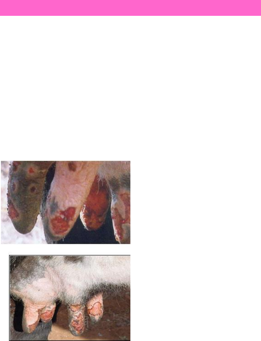 Varíola bovina @futuradrathaina • Introdução e sintomatologia A varíola bovina é uma enfermidade contagiosa, causada pelo Cowpox vírus que se caracteriza por lesões principalmente nas tetas e úbere das vacas, caracterizada pele o aparecimento de lesões ulceradas ou em crostas, sendo que quando atingem a pele observa-se o desenvolvimento de eritema cutâneo que se inicia no aparecimento de pequenas manchas, as quais evoluem para vesículas, podendo ulcerar, que terminam por cicatrizar por dentro de 15 a 20 dias. Nos seres humanos ocorre a presença de feridas, algumas com pus, nas mãos, antebraços, nariz e boca. Podem apresentar febre, dor, mal estar e aumento de gânglios linfáticos. Transmissão A transmissão ocorre principalmente pelas mãos dos ordenhadores ou equipamentos de ordenha, entre fazendas a doença é transmitida por introdução dos animais doentes no rebanho e ordenhadores por ordenharem outros animais que estão doentes em outras fazendas. Sendo que alguns autores relatam que roedores silvestres podem servir de reservatório para doença. VARÍOLA BOVINA! QUEDA NA PRODUÇAO DO LEITE QUE PODE OCORRER INFECÇÃO SECUNDÁRIA. Varíola bovina e a criação da vacina para a varíola Humana Em 1796, o médico inglês Edward Jenner retirou pequena quantidade de sangue das mãos de uma camponesa e inoculou em um garoto de oito anos e com o tempo constatou-se que aquela criança se tornou imune para a varíola humana. Esse experimento foi feito quando o pesquisador observou que pessoas infectadas por varíola bovina, nunca manifestavam varíola humana, estava descoberta a vacina. ZOONOSE. A transmissão dos animais aos seres humanos ocorre através do contato com as lesões presentes nas tetas dos animais doentes. No homem as lesões são semelhantes às descritas para os bovinos, localizadas principalmente nas mãos e mais raramente nos braços e antebraços Diagnóstico: Deve ser realizado em associação com os achados clínicos, histórico e anamnese, sendo sempre associado com o diagnóstico laboratorial para confirmação definitiva. O diaganóstico laboratorial pode ser realizado a partir do isolamento viral, microscopia eletronia e sorologia. Controle e prevenção: Entre as medidas de controle que devem ser adotadas, destaca-se a separação dos animais doentes, linha de ordenha e higiene da ordenha. Iodo glicerinado deve ser utilizado nas lesões, que devem ser mantidas sempre limpas. O uso de luvas de borracha antiderrapante deve ser incentivado. A desinfecção das mãos do ordenhador entre vacas ordenhadas deve ser feita, Fontes: site da secretária de saúde, site beefpoint, relato de caso de varíola bovina faculdade cidade de Coromandel.