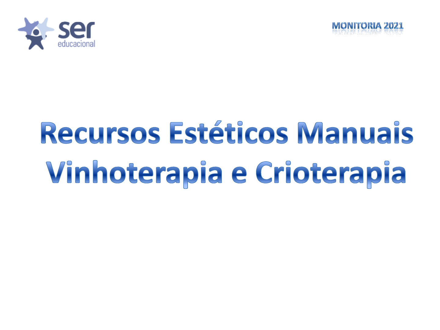 A vinhoterapia é uma técnica baseada na utilização do vinho e cosméticos derivados da uva, com aplicação facial e corporal. Tem por objetivos principais o rejuvenescimento, hidratação, desintoxicação e nutrição da pele. A uva tem destaque especial por ser considerada uma das maiores fontes de componentes fenólicos. Esses componentes associados à dieta, apresentamcomponentes fenólicos. Esses componentes associados à dieta, apresentam múltiplos efeitos biológicos como, atividade antioxidante, anti-inflamatória, antimicrobiana e anticarcinogênica. (Ballestreri, 2018, p. 103.). Tem ainda ação clareadora, renovadora, nutritiva, tonificante, revitalizante desintoxicante, sendo indicada na prevenção do envelhecimento, manchas e flacidez cutânea. As formas de aplicação vão muito além dos cosméticos derivados da uva e o uso do vinho, banhos de ofurô, massagens com cremes, gomagem corporal contendo sementes de uva, banhos relaxantes em hidromassagem com jatos de produtos à base de uva entre outros. As indicações são: Pele com envelhecimento precoce, Pele desidratada, Pele pigmentada, Pele de fumante, Pele sensível ou sensibilizada.Pele sensível ou sensibilizada. O uso da vinhoterapia deve ser evitado nos seguintes casos: Hipersensibilidade ao componente químico, Pessoas hipertensas, Alcoolistas, Cardiopatas e Diabéticas. Protocolo Protocolo VinhoterapiaVinhoterapia facialfacial 1. Higienizar a face, colo e pescoço com emulsão à base de vinho; 2. Aplicar esfoliante na região a ser tratada com movimentos circulares por 3 minutos, remover com gaze umedecida em água;remover com gaze umedecida em água; 3. Tonificar a pele com loção tônica à base de vinho observando o tipo de pele (seca, normal, oleosa ou mista); 4. Aplicar o creme à base de uva realizando manobras de massagem facial; 5. Aplicar máscara facial à base de uva, deixe agir por 10 a 15 minutos, remover com gaze umedecida em água; 6. Finalizar com protetor solar. 1. Higienizar as mãos e pés com emulsão de limpeza a base de uva, remover com gaze umedecido em água; 2. Realizar esfoliação com movimentos circulares, remover com gaze Protocolo Protocolo VinhoterapiaVinhoterapia CorporalCorporal 2. Realizar esfoliação com movimentos circulares, remover com gaze umedecida em água; 3. Tonificar a pele com loção tônica à base de vinho; 4. Oferecer ao cliente, suco de uva ou uma taça de vinho ou uma porção de uva, respeitando a preferência do cliente; 5. Aplicar creme de massagem à base de uva e realizar massagem modeladora ou relaxante. Certifique-se se não há alguma contraindicação; 6. Finalizar com hidratante ou creme lipolítico à base de uva. 1. Higienizar a região que receberá massagem com emulsão de limpeza a base de uva; 2. Oferecer ao cliente, suco de uva ou uma taça de vinho ou uma porção de Protocolo Protocolo VinhoterapiaVinhoterapia ImersãoImersão 2. Oferecer ao cliente, suco de uva ou uma taça de vinho ou uma porção de uva, respeitando a preferência do cliente; 3. Realizar esfoliação com movimentos circulares, remover com gaze ou toalha umedecida em água; 4. Tonificar a pele com loção tônica à base de vinho; 5. Realizar massagem relaxante; 6. Imergir o cliente em banheira ou ofurô, adicionar vinho ou óleo de uva dispersível, não ultrapassar 35º C, deixe agir de 15 a 30 minutos. 7. Finalizar com hidratante ou creme lipolítico à base de uva. https://www.youtube.com/watch?v=PpApIRfOJCA A crioterapia é uma técnica que tem a finalidade deA crioterapia é uma técnica que tem a finalidade de resfriar uma parte do corpo, com um produto cosmético (crioterápico). O que favorece uma diminuição da temperatura corporal de 0° a 2° Fisiologicamente, o hipotálamo manda a mensagem pra os neuroreceptores da região resfriada e a gordura branca vai gerar energia para homeostase energética. Aumento de Ingestão calórica Diminuição de queima calórica Crioterapia Corporal La Vertuan Uso de “globes” as esperas que são colocadas na geladeira e resfriam de 12 a 15°C. Link: https://www.youtube.com/watch?v=adtN0dGavjALink: https://www.youtube.com/watch?v=adtN0dGavjA Indicação: Para qualquer tipo de pele. Frequência: Conforme a necessidade do cliente. Número de Sessões: Variável e codependente de uso do home care. 1º Passo: Higienizar a pele do cliente com o Nano Tea-Tree Sabonete Líquido Facial La Vertuan. Remover o produto com água. 2º Passo: Esfoliar com o Peeling Esfoliante de Uva e Amora La Vertuan. Retirar as microesferas gaze 2º Passo: Esfoliar com o Peeling Esfoliante de Uva e Amora La Vertuan. Retirar as microesferas gaze seca. 3º Passo: Tonificar a pele com a Nano Tea-Tree Loção Tônica Facial La Vertuan realizando movimentos suaves até absorção. 4º Passo: Aplicar na pele uma fina camada da Máscara Emoliente La Vertuan, colocar os algodões sobre a pele e aplicar fonte de calor (máscara térmica ou vapor de ozônio). Após 15 à 20 minutos realizar a extração. 5º Aplicar uma espessa camada de Nano Tea-Tree Mask La Vertuan, por toda a face e deixar secar. 6º Aquecer no microondaspor 1 minuto e meio uma toalha levemente umedecida. Após verificar no interior do braço a temperatura da toalha antes de colocar na pele do cliente. Em seguida posicionar a toalha sobre toda a face, deixar por 2 a 3 minutos e retirar todo o excesso da máscara. 7º Passo: Finalizar com massagem facial utilizando o Nano Tea-Tree Sérum Facial Raavi. Do livro de Fabio Borges, Terapêutica em estética [recurso eletrônico] : conceitos e técnicas Material : espátula, gel crioterápico, loção crioterápica e bandagem; b) e c) Bandagens são colocadas num recipiente apropriado para serem embebidas. Aplicação de bandagem de crepom embebida em loção crioterápica: a) Aplicação do gel crioterápico; b) Enfaixamento com a bandagem na região abdominal; c) Enfaixamento na região abdominal finalizada; d) Enfaixamento na região de coxa