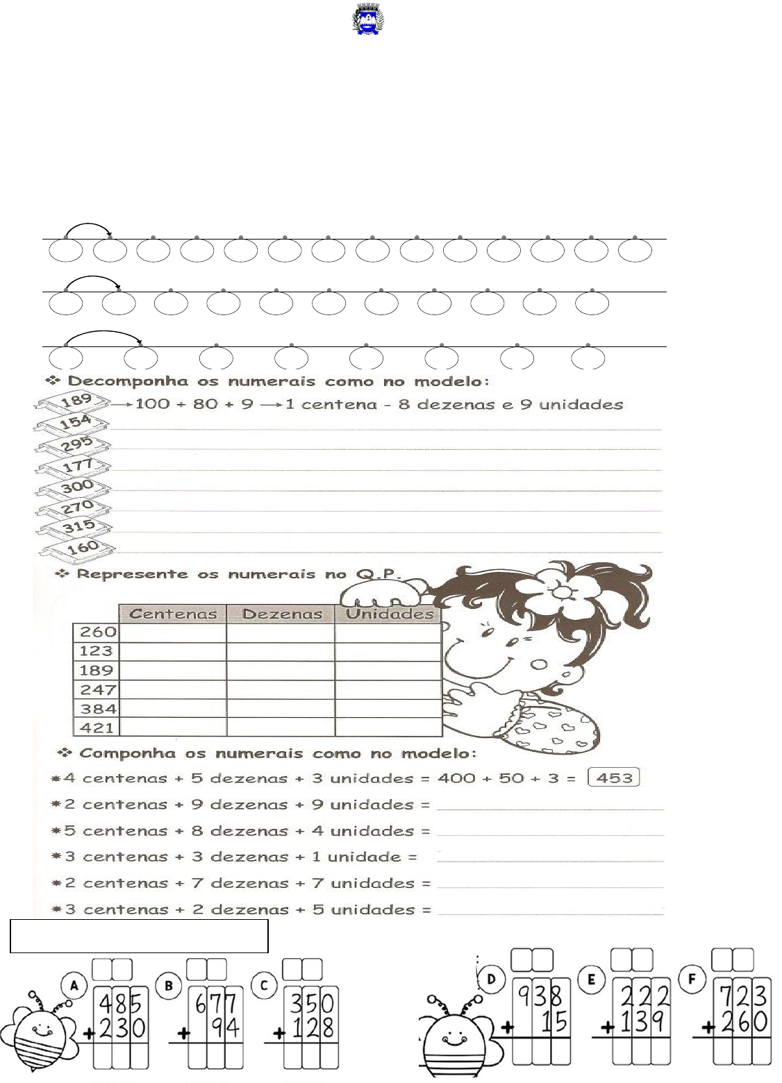 Prefeitura Municipal de Piúma Secretaria Municipal de Educação COLETÂNIA DE ATIVIDADES PEDAGÓGICAS PLANEJADAS PELOS DOCENTES DA REDE MUNICIPAL DE PIÚMA Estudante realize as atividades no seu caderno. MATEMÁTICA 3º ANO 1- Complete a sequencia: 5 + 45 40 10 + 210 200 – 100 750 850 Resolva as adições no seu caderno: cca