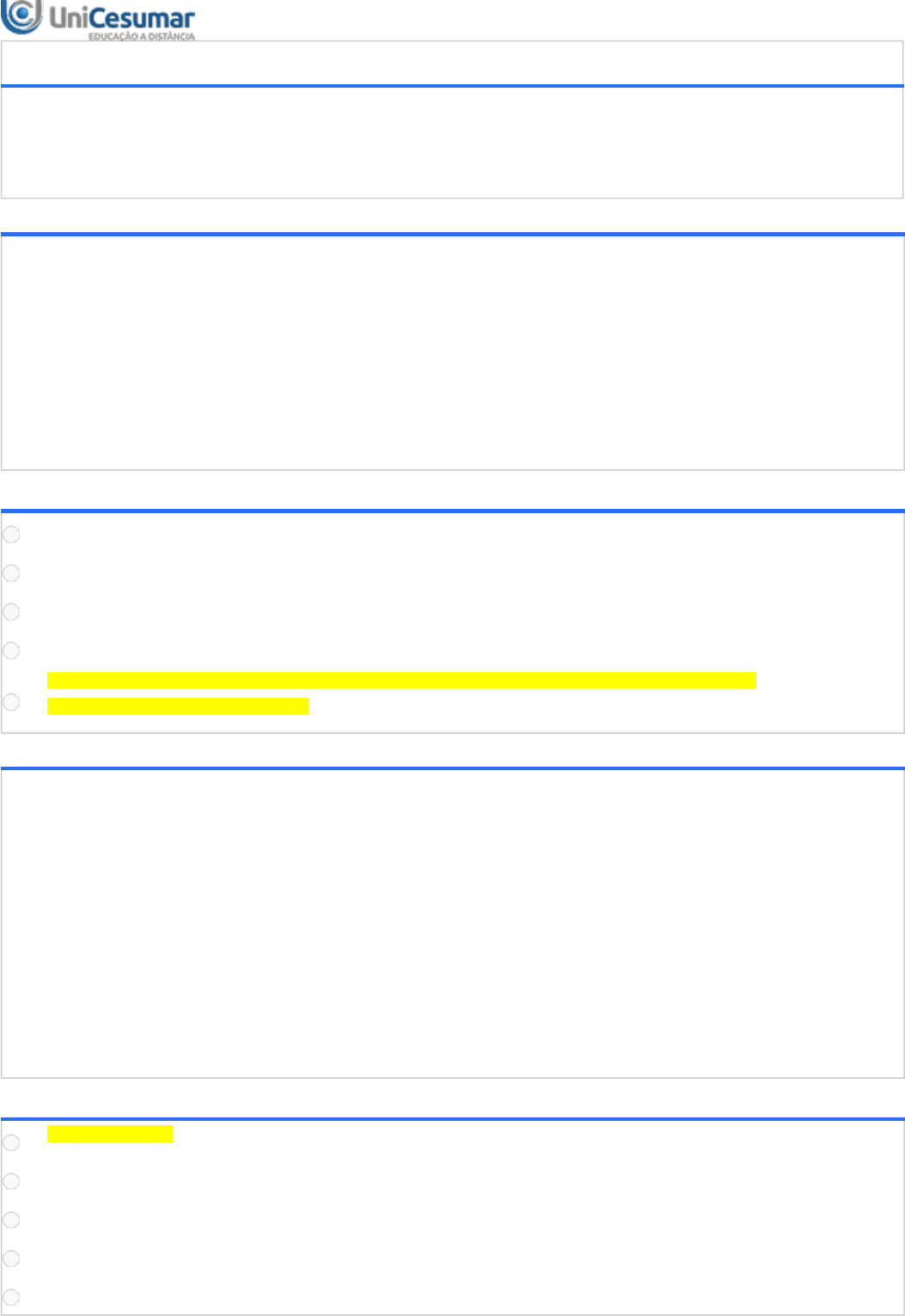 06/04/2021 Unicesumar - Ensino a Distância 1/6 1ª QUESTÃO ALTERNATIVAS 2ª QUESTÃO ALTERNATIVAS Ensino Supletivo. Educação Popular. Modalidade de Ensino. Alfabetização de Adolescentes. Educação e Profissionalização de Jovens. Na educação funcional (final da década de 1950), tem-se um pensamento voltado à atividades e habilidades de trabalho. Uma tendência que segue até a década de 1970, porém, ainda por meio de uma educação não formal. Em 1971, a Lei de Diretrizes e Bases da Educação Nacional (Lei n. 5692/71), dá um novo rumo à Educação de Jovens e Adultos, focando a atenção na formação para conclusão do Ensino de Primeiro e Segundo Graus (organização do ensino brasileiro na época). RIBEIRO, Maria Rosânia Mattiolli. Teoria e Prática na Educação de Jovens e Adultos. Maringá-Pr.: UniCesumar, 2018. Considerando o referido período, o ensino para o atendimento de jovens e adultos, tinha como nomenclatura: Uma escola unitária e desinteressada é aquela que forma para os interesses políticos. Uma escola unitária e desinteressada é aquela que forma tendo em vista uma profissão. Uma escola unitária e desinteressada é aquela capaz de formar para uma função técnica. Uma escola unitária e desinteressada é aquela que forma especificamente para a continuidade dos estudos. Uma escola unitária e desinteressada é aquela que forma o indivíduo em todos os seus aspectos, independentemente de classe social. Gramsci (2001) enfatizava, no seu tempo, a importância de uma escola unitária e desinteressada das questões burguesas. GRAMSCI, Antonio. Cadernos do cárcere. Volume 2: Os intelectuais – O trabalho educativo. 2. ed. Rio de Janeiro: Civilização Brasileira, 2001. De acordo com o pensamento do autor, leia as alternativas e assinale a correta. Período:05/04/2021 08:00 a 23/04/2021 23:59 (Horário de Brasília) ATIVIDADE 1 - LPED - TEORIA E PRÁTICA NA EDUCAÇÃO DE JOVENS E ADULTOS - 2021A 06/04/2021 Unicesumar - Ensino a Distância 2/6 3ª QUESTÃO ALTERNATIVAS 4ª QUESTÃO ALTERNATIVAS Os pressupostos freireanos nos orientam quanto a pensar o homem e sua condição no mundo. Segundo o educador, os “homens enquanto ‘seres-em-situação’ encontram-se submersos em condições espaço- temporais que influem neles e nas quais eles igualmente influem. . . . Refletirão sobre seu caráter de seres situados, na medida em que sejam desafiados a atuar. Os homens são porque estão situados. Quanto mais refletirem de maneira crítica sobre sua existência, e mais atuarem sobre ela, serão mais homens” (FREIRE, 1980, p. 33). FREIRE, Paulo. Conscientização: teoria e prática da libertação. São Paulo: Moraes, 1980. A partir do exposto, avalie as afirmativas a seguir e considere (V) para verdadeiro e (F) para falso. I. "Seres em situação" são seres reais, que atuam, influenciam e são influenciados na prática social. II. Ao refletir e agir sobre a realidade, transformando-a, os homens dão continuidade à existência humana. III. Os homens quanto mais refletirem sobre a realidade concreta, mais desenvolve sua consciência sobre ser e estar no mundo. As afirmativas I, II e III são, respectivamente: Objetivos; situação; o conjunto de aspirações; ato político; ação cultural. Escritos; ação política; o conteúdo programático; conjunto de aspirações; situação. Escritos; situação; o conjunto de aspirações; conteúdo programático; ação política. Escritos; situação; a ação política; conjunto de aspirações; educação programática. Objetivos; ação política; o conteúdo programático; conjunto de aspirações; situação. De acordo com o método de Paulo Freire, a investigação do universo temático tem como propósito observar a prática social de forma a pensar as palavras que comumente fazem parte da realidade dos educandos. É a partir daí que se planejam os temas geradores do conhecimento a ser ensinado. Organizar as palavras apropriadas para desenvolver o início do processo de alfabetização implica na metodologia a ser utilizada para atingir os objetivos da educação escolar. Nesse sentido, Paulo Freire (2005) quer nos mostrar que seu método considera o conhecimento prévio dos alunos como elementar no processo de apropriação do conhecimento formal. Assim, nos seus , quando trata da Educação de Jovens e Adultos, sobre os temas geradores, o autor enfatiza que é a partir da presente, existencial, concreta, refletindo do povo, que será possível organizar o da educação ou da . FREIRE, P. Pedagogia do oprimido. Rio de Janeiro: Paz e Terra, 2005. Diante do exposto, na sequência, assinale a alternativa que preencha corretamente as lacunas: 06/04/2021 Unicesumar - Ensino a Distância 3/6 5ª QUESTÃO ALTERNATIVAS 6ª QUESTÃO I e III. II e III. II e IV. I, II e III. II, III e IV. O currículo escolar da Educação de Jovens e Adultos deve atribuir à educação o princípio da emancipação, propagar múltiplas possibilidades para que os indivíduos possam se desenvolver com capacidade para intervir na realidade. RIBEIRO, Maria Rosânia Mattiolli. Teoria e Prática na Educação de Jovens e Adultos. Maringá: UniCesumar, 2018. A partir desta afirmação, leia e analise as assertivas a seguir: I. A EJA propicia, aos sujeitos, por meio do currículo, capacidade de pensar e agir coerentemente, com determinação e consciência. II. O currículo escolar deve promover o conhecimento com o objetivo de qualificação para o trabalho técnico, ou seja, o que tem importância é a prática. III. Ao educando, em processo de formação, são importantes as diferentes linguagens, o que possibilita a aquisição dos instrumentos que favorecem a formação cidadã. IV. O trabalho com os jovens e adultos visa à participação nas questões políticas, sociais, a qual tende a acontecer tendo em vista o caráter adaptativo às condições postas pela própria sociedade. Está correto apenas o que se afirma em: V, V, 