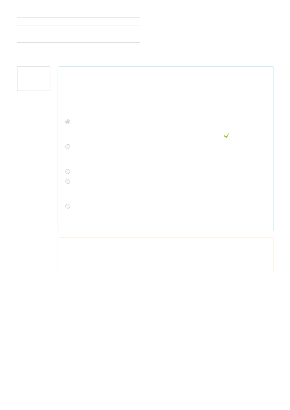 10/06/2021 Avaliação Final https://www.certificacaotecnica.com.br/mod/quiz/review.php?attempt=1916285 1/6 Questão 1 Correto Atingiu 1,0 de 1,0 Iniciado em quinta, 10 Jun 2021, 17:38 Estado Finalizada Concluída em quinta, 10 Jun 2021, 18:00 Tempo empregado 21 minutos 52 segundos Avaliar 10,0 de um máximo de 10,0(100%) A fim de consolidar práticas no ambiente de trabalho pautadas na biossegurança, o profissional de saúde deve conhecer esse ambiente, bem como planejar e instituir ações que minimizem riscos e ofereçam proteção individual e coletiva. Frente ao exposto, pode-se afirmar que: Escolha uma opção: a. O profissional de saúde deve instituir a biossegurança a partir de negociação junto à equipe de trabalho, o que facilitará a conformidade das rotinas, seguindo a orientação normativa de biossegurança para o ambiente de trabalho. b. Devido as constantes capacitações e reuniões de equipe abordando a biossegurança, não há necessidade de extremos cuidados no ambiente, pois todos os profissionais têm o conhecimento e evitarão situações de acidentes e contaminação. c. A sinalização dos riscos é suficiente para a segurança no ambiente de trabalho. d. Por terem sido capacitados quanto à biossegurança, determinados profissionais de saúde não sofrem acidentes nem estão expostos a riscos, uma vez que conhecem as práticas seguras do ambiente de trabalho. e. A responsabilidade pela manutenção da biossegurança no ambiente é dever de cada profissional. Desse modo, o profissional deve apenas cuidar de si e, com isso, colaborará com a diminuição dos riscos. Sua resposta está correta. A resposta correta é: O profissional de saúde deve instituir a biossegurança a partir de negociação junto à equipe de trabalho, o que facilitará a conformidade das rotinas, seguindo a orientação normativa de biossegurança para o ambiente de trabalho.. 10/06/2021 Avaliação Final https://www.certificacaotecnica.com.br/mod/quiz/review.php?attempt=1916285 2/6 Questão 2 Correto Atingiu 1,0 de 1,0 Questão 3 Correto Atingiu 1,0 de 1,0 Agentes ou riscos ambientais são elementos/substâncias presentes em diversos ambientes, as quais podem ocasionar danos à saúde dos profissionais se estiverem acima dos limites de tolerância. Eles são agrupados em cinco classes. Qual das alternativas corresponde aos riscos considerados físicos. Escolha uma opção: a. Solventes e tintas. b. Má postura, exercícios repetitivos. c. Temperaturas extremas e ruído. d. Gases e poeiras. e. Vírus e bactérias. Sua resposta está correta. A resposta correta é: Temperaturas extremas e ruído.. Os resíduos potencialmente não contaminantes são: Escolha uma opção: a. suor, urina, fezes e saliva. b. sêmen, urina, fezes e saliva com sangue visível. c. suor, urina, fezes e sêmen. d. urina, suor, saliva e fezes com sangue visível. e. suor, saliva e liquor. Sua resposta está correta. A resposta correta é: suor, urina, fezes e saliva.. 10/06/2021 Avaliação Final https://www.certificacaotecnica.com.br/mod/quiz/review.php?attempt=1916285 3/6 Questão 4 Correto Atingiu 1,0 de 1,0 Questão 5 Correto Atingiu 1,0 de 1,0 Os indicadores biológicos indicam a eficácia do processo de esterilização por meio da mudança de cor do meio de cultura. Qual a reação química/alteração físico-química que deve ocorrer para que o meio de cultura mude de cor? Escolha uma opção: a. Aumento da viscosidade do meio. b. Oxidação do meio de cultura. c. Mudança no potencial de hidrogênio (pH) do meio de cultura. d. Hidrólise dos esporos. e. Redução da viscosidade do meio. Sua resposta está correta. A resposta correta é: Mudança no potencial de hidrogênio (pH) do meio de cultura.. Para que a higienização das mãos com água e sabão seja realizada de maneira adequada, por quantos segundos ela deverá ser realizada? Escolha uma opção: a. 20 a 30 segundos. b. 30 a 40 segundos. c. 40 a 50 segundos. d. 5 a 20 segundos. e. 50 a 60 segundos . Sua resposta está correta. A resposta correta é: 50 a 60 segundos .. 10/06/2021 Avaliação Final https://www.certificacaotecnica.com.br/mod/quiz/review.php?attempt=1916285 4/6 Questão 6 Correto Atingiu 1,0 de 1,0 Questão 7 Correto Atingiu 1,0 de 1,0 Quais fatores a seguir afetam a eficácia da higienização das mãos? Escolha uma opção: a. O modelo das pias e torneiras. b. Realizar a técnica demoradamente. c. Utilizar papel toalha para fechar a torneira. d. Secar as mãos em uma tolha de uso comum. e. Ter um pequeno arranhão na mão. Sua resposta está correta. A resposta correta é: Secar as mãos em uma tolha de uso comum.. Quanto aos equipamentos de proteção coletiva dentro do ambiente dos laboratórios com riscos biológicos e químicos, podemos afirmar que: Escolha uma opção: a. Possui uso recomendado em laboratórios que utilizem radiações em sua rotina. b. São equipamentos que visam a proteger o meio ambiente, a saúde e a integridade dos ocupantes de determinada área, diminuindo ou eliminando os riscos provocados pelo manuseio de produtos químicos (principalmente os tóxicos e inflamáveis) e de agentes microbiológicos e biológicos. c. São equipamentos que protegem eficientemente o seu usuário, entretanto, não tem grande eficiência na proteção do ambiente em que se encontra. d. São equipamentos que protegem somente os profissionais do laboratório que estejam utilizando jaleco. e. São equipamentos menos eficientes na proteção individual, mas protegem de forma eficaz todos os que frequentam o ambiente do laboratório. Sua resposta está correta. A resposta correta é: São equipamentos que visam a proteger o meio ambiente, a saúde e a integridade dos ocupantes de determinada área, diminuindo ou eliminando os riscos provocados pelo manuseio de produtos químicos (principalmente os tóxicos e inflamáveis) e de agentes microbiológicos e biológicos.. 10/06/2021 Avaliação Final https://www.certificacaotecnica.c