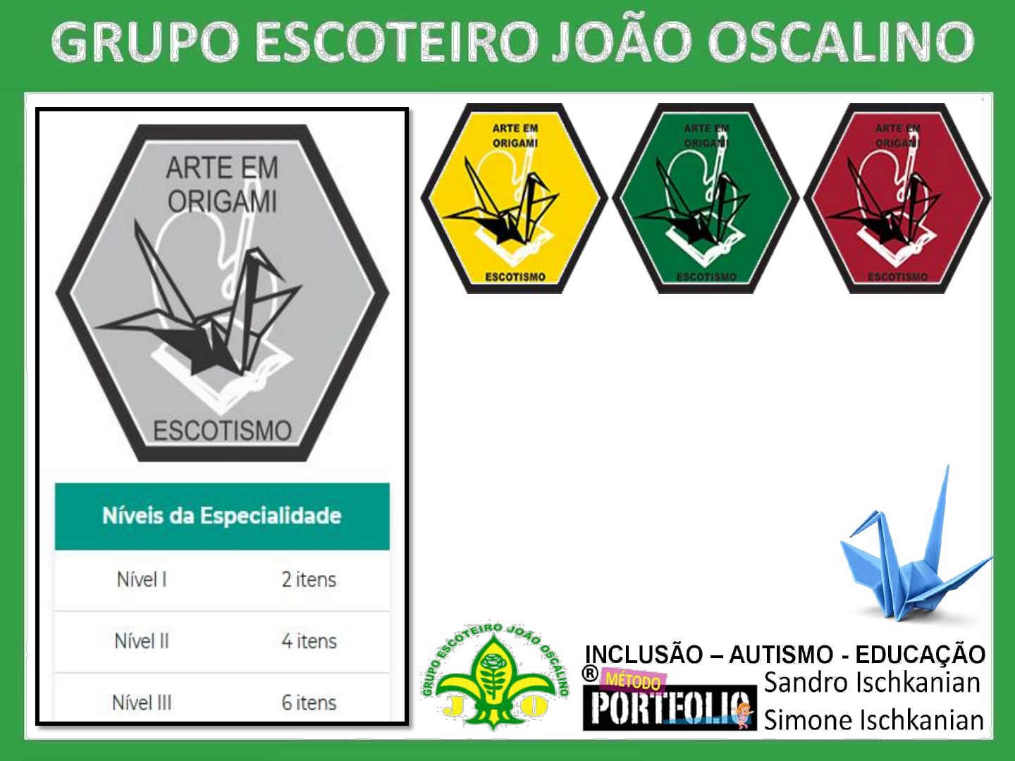 OS MEMBROS JUVENIS TEM A LIBERDADE DE ESCOLHER QUAISQUER ITENS PARA A CONQUISTA DO NÍVEL QUE DESEJAR. NÃO SENDO OBRIGATÓRIO SEGUIR A ORDEM DA NUMERAÇÃO DOS ITENS. Materiais Papel de origami ou papel comum, cortado em quadrados de 8 x 8; Objetivos Os membros juvenis usarão o origami para desenvolver uma compreensão das propriedades geométricas. ARTE EM ORIGAMI - Fazer uma exposição com, no mínimo: Nível 1: 10 (dez) dobraduras simples de até trinta dobras. Nível 2: 25 (vinte e cinco) dobraduras, dentre elas algumas peças com mais de trinta dobras, incluindo caixas simples e “kusudama” (bola com peças modulares). Nível 3: 40 (quarenta) dobraduras, dentre elas alguns mais complexos com mais de cinquenta dobras, “kusudama” com mais de trinta peças e figuras geométricas. Nome: ______________________________________ Apresentar 1 (um) relatório sobre o significado da palavra “origami”, a origem desta arte e do papel, descrevendo seus benefícios. _________________________________________________ _________________________________________________ _________________________________________________ _________________________________________________ _________________________________________________ _________________________________________________ _________________________________________________ _________________________________________________ Nome: ______________________________________ Montar um esquema que apresente a linguagem do origami (símbolos utilizados na dobradura: Linha do vale, linha da montanha, virar, girar, dobrar por dentro, dobrar por fora, plissagem, achatar ou afundar). _________________________________________________ _________________________________________________ _________________________________________________ _________________________________________________ _________________________________________________ _________________________________________________ _________________________________________________ _________________________________________________ Nome: ______________________________________ Apresentar por escrito bibliografia sobre o Origami: sobre 2 (dois) autores famosos nacionais ou internacionais e possuir pelo menos 1 (um) livro de origami. _________________________________________________ _________________________________________________ _________________________________________________ _________________________________________________ _________________________________________________ _________________________________________________ _________________________________________________ _________________________________________________ Origami é uma arte milenar japonesa nascida há quase mil anos na Corte Imperial, onde era conhecido como um passatempo divertido e interessante. Com o passar do tempo esta arte foi transmitida ao povo que adotou-a com o entusiasmo e transformou-se em uma arte conhecida no mundo todo. Os primeiros registros do surgimento do papel vêm da China do ano 105 d.C. De lá, monges budistas levaram o método de fabricação do produto para outros países asiáticos, a partir do século VII. Foi Yoshizawa quem criou a ideia da dobragem criativa (Sasaku Origami) e inventou todo um conjunto de métodos que nada deviam ao origami do passado, permitindo "dobrar" uma série de animais e pássaros. As primeiras dobraduras foram criadas quando o Estado e a religião eram um só, dessa forma representavam a natureza das Estes, porém, eram a mistura de origami com kirgami (arte de formar figuras através de recortes de papéis), eram confeccionados com papéis manufaturados unicamente para o uso dos sacerdotes xintoístas. Com a intenção de honrar o espírito das árvores que davam vida ao papel, os sacerdotes xintoístas passaram a pregar regras rígidas para a arte do origami como, por exemplo, não cortar ou colar as folhas. Até metade do século XIX, a arte das dobraduras era restrita aos adultos pelo alto custo do papel, porém, em 1876, o origami passou a ser ensinado nas escolas, fazendo parte da educação dos japoneses. Expor seus trabalhos de origami sozinho ou com outros origamistas em outro local, como escola, biblioteca, associações ou exposição internacional. Obs: Em tempos de pandemia a exposição das atividades serão através de LIVES ou divulgação de vídeos e fotos. Visitar uma exposição de origami mostrando fotos ou participar de “workshop” de origami apresentando, posteriormente, as dobraduras feitas. Obs: Em tempos de pandemia visite museus on-line. Tire fotos ou grave vídeos mostrando suas novas descobertas. Utilizar origamis como decoração de 1 (um) evento, preferencialmente, promovido pelo Grupo Escoteiro, seção ou matilha/patrulha. Obs: Em tempos de pandemia presenteie os membros do seu Grupo Escoteiro, vizinhos, amigos ou demais pessoas com uma dobradura de ESPERANÇAS de dias MELHORES. ESPERANÇAS DE DIAS MELHORES Faça você mesmo: Sugestão de presente para o dia das mães. Artesanato de Origamis: https://casaeconstrucao.org/artesanato/como-fazer-origami/ Museu do Origami: https://pt.museodelorigami.org/ https://www.tripadvisor.com.br/Attraction_Review-g1066459-d10307080-Reviews- Tokyo_Origami_Museum-Sumida_Tokyo_Tokyo_Prefecture_Kanto.html https://www.tripadvisor.com.br/Attraction_Review-g1066459-d10307080-Reviews- Tokyo_Origami_Museum-Sumida_Tokyo_Tokyo_Prefecture_Kanto.html Vídeos de Origami: https://www.google.com/search?q=Origami+como+fazer&biw=1366&bih=654&tbm= vid&sxsrf=ALeKk02cKHVdCwj404sYC- laSnDO4KwxNQ%3A1619765289476&ei=KaiLYJmdHKbc1sQPlKKjgA8&oq=Origa mi+como+fazer&gs_l=psy-ab- video.3..0l7j0i22i30k1l3.16092.22435.0.22748.20.19.1.0.0.0.301.3941.2-16j1.17.0....0...1.1.64.psy-ab- video..2.18.3944...0i67k1j0i433k1j0i433i131k1j0i433i67k1.0.velNfPpgZyE https://casaeconstrucao.org/artesanato/como-fazer-origami/ https://casaeconstrucao.org/artesanato/como-fazer-origami/ https://casaeconstrucao.org/artesanato/como-fazer-origami/ https://casaeconstrucao.org/art