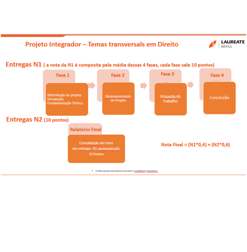 GUIA PRÁTICO PROJETO INTEGRADOR – TEMAS TRANSVERSAIS EM DIREITO Prezado estudante! Para o desenvolvimento do projeto de animação explore todo o material disponíveis nas fases bem como o guia prático e modelo de relatório final disponível em conheça sua disciplina > material de apoio. Bons estudos! FASE 1 – INÍCIO DO PROJETO INTEGRADOR TEMAS TRANVERSAIS JURÍDICO CIDADANIA Nas sociedades modernas, especialmente nas democráticas, o exercício da cidadania é assunto que rende diversos debates, visto que o tema, além de polêmico, permeia a mais vasta gama de direitos fundamentais, cuja tutela e a efetivação concretizam-se por meio do conceito de cidadania. Nesse contexto, alguns debates relacionados à cidadania são muito atuais, a guisa de exemplo, podemos citar a polêmica acerca da aquisição de armas de fogo e a flexibilização das regras para o porte de arma. Esse tema, em outro momento, já foi discutido por meio de um referendo, realizado em 23 de outubro de 2005, quando foi perguntado, aos cidadãos, quem era a favor do comércio de armas e munição no Brasil. Esse referendo foi a ferramenta utilizada pelo Estado para promover o exercício da cidadania e fazer valer os princípios norteadores da democracia, que representa o governo do povo. Atualmente, vivemos um estágio do desenvolvimento social em que diversos valores e direitos fundamentais estão em xeque, o que torna muito importante o pleno exercício da cidadania. Pensando na relevância e atualidade do tema cidadania, agora, é hora de colocar esses conceitos em prática, para tanto, você deve elaborar um projeto, que será composto de várias fases. A cada fase, você irá desenvolver uma fase de seu projeto. Essa metodologia é importante, no sentido de que, quando se pretende discutir um assunto, pesquisar sobre ele, é preciso estruturar a pesquisa e dar visibilidade a essa estrutura, que é a função do projeto. A função do projeto é dar, ao estudante, elementos para que ele visualize a real relevância e pertinência do tema, as razões para pesquisá-lo, bem como as limitações da sua concretização. O projeto é uma maneira de visualizar o seu tema de pesquisa sobre diversas perspectivas e ter mais clareza sobre os possíveis desafios que irá encontrar. É por meio dele que você delimitará o seu campo de pesquisa e, quando se fala em cidadania, você perceberá que se trata de um campo muito fértil, o qual pode ser analisado por diversas perspectivas, as quais vão desde a tutela de direitos inerentes ao cidadão, até a necessidade de políticas públicas, voltadas à temática. Você poderá explorar aspectos relacionados a programas criados em determinadas cidades ou por determinadas associações ou ONGS que buscam efetivar a cidadania. Além disso, você vai perceber, também, que a compreensão da temática extrapola os limites da seara jurídica e que, para uma pesquisa completa, você deverá buscar o auxílio de outras ciências e outros fundamentos ENTREGA PARCIAL 1 VAMOS PRATICAR Então, vamos delimitar a forma que a atividade será executada. Nessa primeira fase, você deve refletir sobre a estrutura de um projeto que envolva a Cidadania e os princípios norteadores da convivência social. Utilize o modelo de relatório final disponível em conheça sua disciplina > material de apoio, para orientar no seu projeto que deve comtemplar os seguintes tópicos: problema, justificativa, objetivos, fundamentação teórica, metas, componentes. A seguir uma breve descrição desses tópicos: O problema deve ser entendido como o fator ou fatores de ordem prática que são relevantes para um determinado grupo e que comportam algumas soluções. A justificativa de um projeto é o tópico onde o estudante deve apresentar as razões e os argumentos que justificam a discussão daquele problema; é o momento em que se demonstra a relevância da pesquisa. Os objetivos definem os resultados que se pretendem alcançar com a pesquisa; estes devem ser definidos de maneira clara, por isso, a importância de refletir detidamente sobre seu problema. A fundamentação teórica é outro aspecto muito relevante, pois permite que você crie argumentos consistentes para desenvolver sua pesquisa, demonstrando que seus apontamentos sobre o tema são alicerçados em pesquisa. As metas são bem parecidas com os objetivos, mas são específicas, uma vez que toda meta precisa ser claramente delimitada no tempo e no espaço. Uma meta, quanto mais detalhada, mais facilmente é alcançada, então, para definir sua meta, faça as seguintes perguntas: como? onde? quando? de que forma? Os componentes de um projeto são as pessoas que participaram deste projeto, seja na elaboração, na pesquisa, na orientação etc. Você deve delimitar, ainda, as etapas, isto é, ter clareza nas etapas que irão compor o projeto, pois isso permite que você tenha noção de sua viabilidade, principalmente, em relação ao tempo; isso pode ser feito por meio de um cronograma. Ao estruturar seu projeto, é importante, também, prever os recursos e a metodologia que utilizada e, finalmente, o custo e riscos desse projeto, que podem ser apenas uma estimativa, mas precisam ser previstos. Nessa etapa você deve entregar: 1. INTRODUÇÃO 1.1 Justificativa 1.2 Objetivos do trabalho 1.3 Objetivo específico (metas) 1.4 Os componentes 1.5 Metodologia que utilizada 1.6 O custo e riscos desse projeto 1.7 Cronograma 2. FUNDAMENTAÇÃO TEÓRICA Utilize o modelo de relatório final disponível “conheça sua disciplina > material de apoio> modelo de relatório final”. Faça a entrega da fase 1 em entrega parcial 1 para avaliação. FASE 2 – DESENVOLVIMENTO DO PROJETO Agora que você já definiu seu problema e estruturou o seu projeto, delimitando de que forma ele será desenvolvido, vamos pensar nos procedimentos iniciais de execução. ENTREGA PARCIAL 2 Trace um panorama de como a cidadania é exercida no Brasil. Destaque quais mecanism