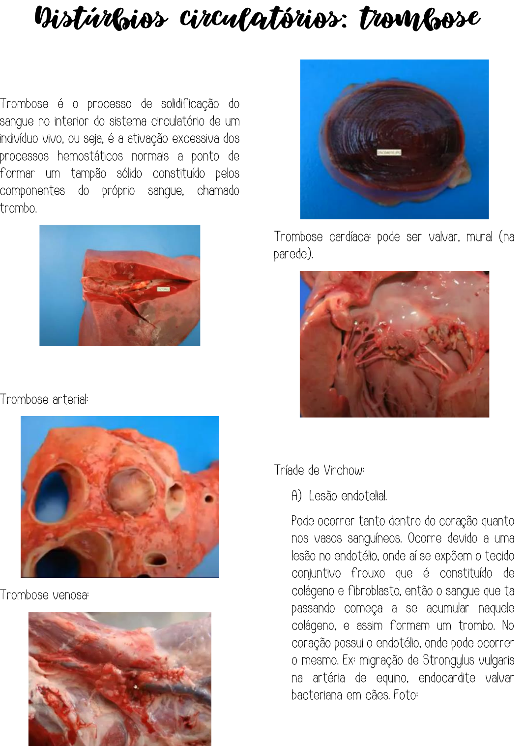 Conceito Tipos de trombose Causas da trombose Miocardiopatia dilatada primária canina. Estenose subaortica Consequências da trombose Coração normal Principais locais de infarto • • • • • • • • Destinos do trombo • • coagulação intravascular disseminada (cid)? O que causa CID? • • •