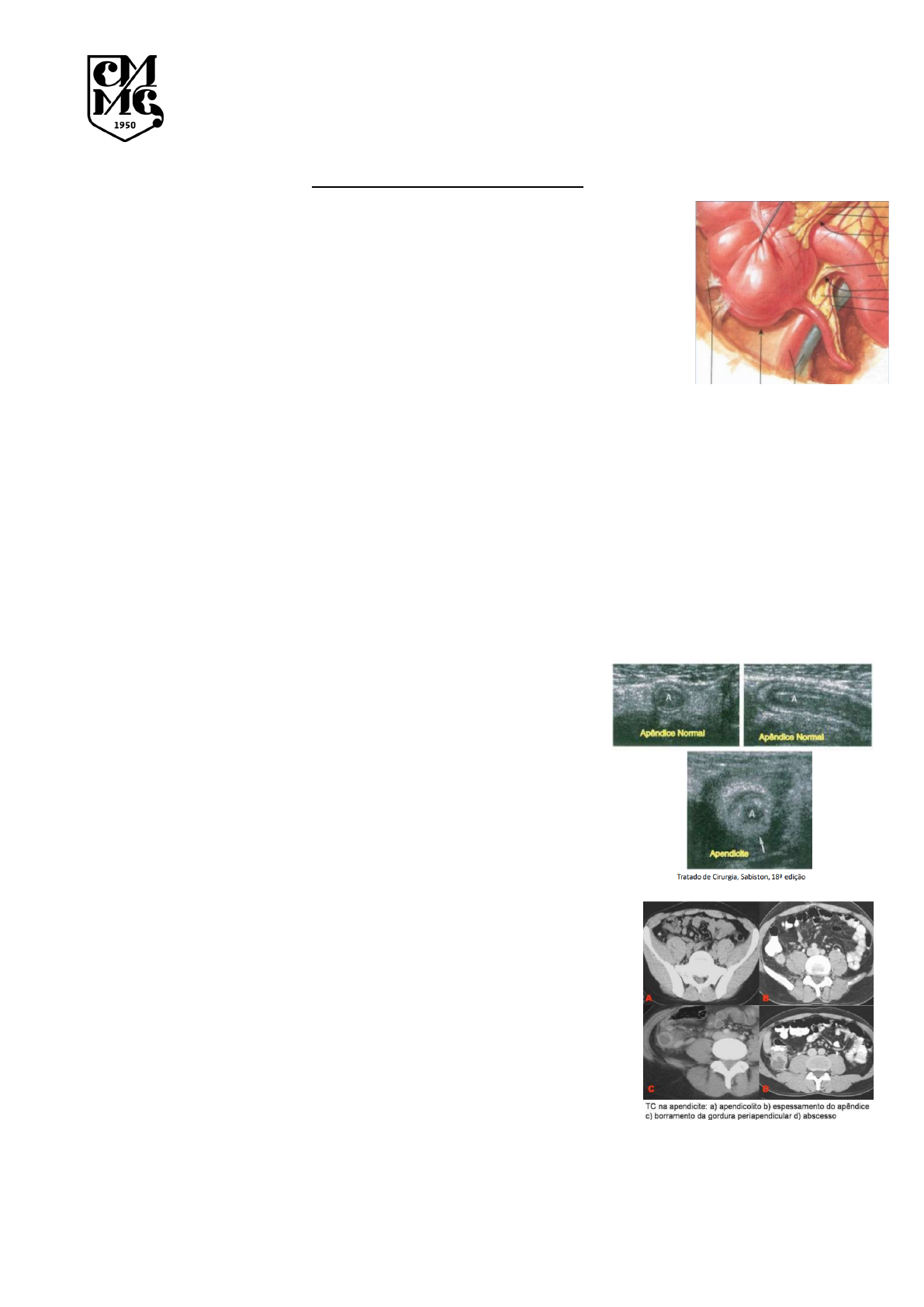 FACULDADE CIÊNCIAS MÉDICAS DE MINAS GERAIS CLÍNICA CIRÚRGICA II GABRIELA PICCHIONI BAÊTA - 68A Apendicite aguda e Plastrão Apendicular Apendicite Aguda: doença recorrente na prática médica, é a principal causa de abdome agudo e emergência cirúrgica mais comum. A incidência máxima é entre 10 e 30 anos de idade, sendo mais comum em homens. Fisiopatologia: começa na obstrução da luz do apendicular (apendicolito, aumento linfonodal, matéria vegetal, obstrução por parasitoses, neoplasias…) → supercrescimento bacteriano + secreção continuada de muco → distensão luminal (gera a dor) → isquemia mucosa (diminuição da drenagem venosa e linfático) → processo inflamatório + gangrena + perfuração (dependendo do tempo). História Clínica: dor migratória: periumbilical → fossa ilíaca direita, anorexia, náusea, vômitos, febre, íleo adinâmico Exame Físico: - Ponto de McBurney: a dor será localizada geralmente nesse ponto. Situado dois terços da distância da cicatriz umbilical à espinha ilíaca ântero-superior direita - OBS: o ceco é móvel e o apêndice pode estar rotado, nem sempre a dor será nesse local! Pode ser no flanco, na pelve subhepática - Sinal de Blumberg: indica possibilidade de apendicite (não é patognomônico) → dor à descompressão brusca do ponto de McBurney - Sinal de Rovsing: indica possibilidade de apendicite (não é patognomônico) → palpação no QIE e o paciente queixa de dor no QID - Sinal do Obturador: indica possibilidade de apendicite (não é patognomônico) → paciente em decúbito dorsal, faz-se uma rotação interna + flexão da coxa (mais comum em apendicites retrocecal) - Sinal do Psoas: indica possibilidade de apendicite (não é patognomônico) → paciente em decúbito lateral esquerdo, sente dor quando você faz extensão da coxa direita sobre o quadril - Sinal de Dunphy: indica possibilidade de apendicite (não é patognomônico) → dor no ponto de McBurney quando tosse Exames Laboratoriais: leucocitose, PCR aumentado, EAS: piócitos + Exame de imagem: US: vê se a parede espessada, maior que 7mm. Em corte: lesão em alvo - melhor para crianças, mulheres grávidas, diferenciar no caso de DIP TC: exame de escolha, sensibilidade e especificidade melhor. Vê-se a parede espessada, maior que 7mm. A medida que vai evoluindo observa-se gordura periapendicular borrada, abscesso, líquido e possibilidade de visualizar apendicolito OBS: laparoscopia diagnóstica → quando não se define pelos exames clínicos, físico e de imagem, ou seja, em dúvida diagnóstica. Diagnóstico diferencial: qualquer dor abdominal aguda! - Linfadenite mesentérica - Gastroenterite Aguda - Ureterolitíase - Pielonefrite Aguda - DII - Divertículo de Meckel - Tuberculose Intestinal - Úlcera péptica perfurada FACULDADE CIÊNCIAS MÉDICAS DE MINAS GERAIS CLÍNICA CIRÚRGICA II GABRIELA PICCHIONI BAÊTA - 68A - DIP - Cisto ovariano roto - Gravidez ectópica Escore de Alvarado: É um teste de triagem que tem como objetivo reduzir a proporção de falso-negativos. Se >7 pontos: alta probabilidade de apendicite Avaliação e Tratamento: Classificação: Apendicectomia Aberta: muito raramente realizada, restrita aos serviços que não possuem cirurgia laparoscópica ou pacientes instáveis/complicados - Incisão de McBurney ou de Davis, Mediana (se complicada ou conversão) Apendicectomia Videolaparoscopica: tendência atual, geralmente realizado com 3 portais (infraumbilical 10mm, da câmera 10mm, de instrumento 5mm) FACULDADE CIÊNCIAS MÉDICAS DE MINAS GERAIS CLÍNICA CIRÚRGICA II GABRIELA PICCHIONI BAÊTA - 68A Plastrão Apendicular: é uma condição que ocorre em 2 a 6% dos casos de apendicite aguda, geralmente quando o paciente chega tardiamente ao hospital. É uma "massa inflamatória" e pode ser classificado em fleimão ou abscesso, sendo este drenado assim que possível (percutânea, transvaginal ou transanal). A abordagem terapêutica desses casos permanece controversa. Palpável no exame físico. Os estudos mostram atualmente que se o paciente não estiver séptico, faz-se a ATBterapia (evitar colectomia ou fístulas) e depois a apendicectomia de intervalo.