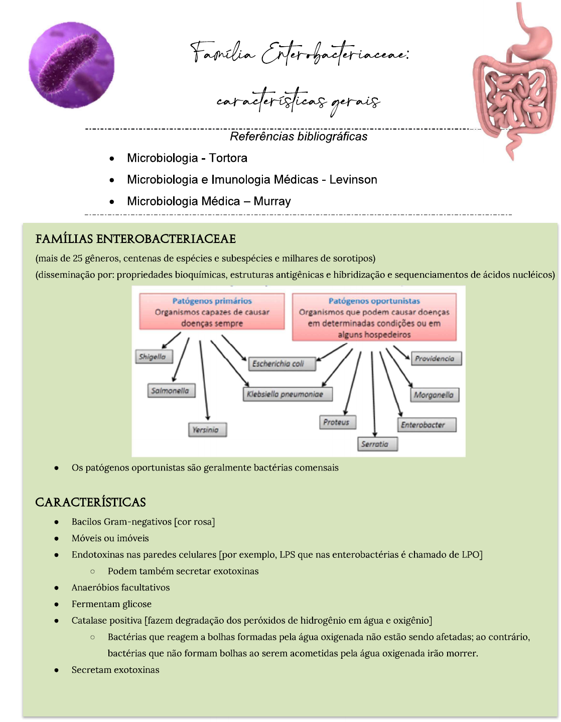 Família Enterobacteriaceae - características gerais das infecções do TGI
