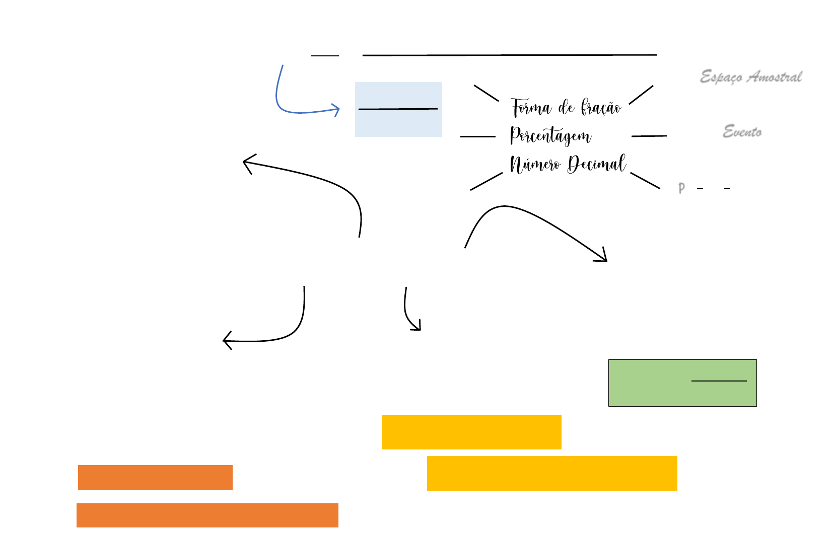 Probabilidade Experimento Aleatório Quando repetido nas mesmas condições, gera resultados que não podem ser previstos. Espaço Amostral (Ω) Conjunto de todos os resultados possíveis de ocorrer no experimento. Evento Qualquer subconjunto do espaço amostral de um experimento aleatório. Probabilidade de um evento qualquer P(E) =𝒏 (𝑬) 𝒏 (Ω) = Tudo Quero Tudo Tenho Espaço Amostral {1, 2, 3, 4, 5, 6} Evento {2, 3, 5} P = 3 6 = 1 2 = 50% = 0,5 Probabilidade Condicional Probabilidade de ocorrer um evento A, sendo que um outro evento B já aconteceu Interseção de Eventos Quando a ocorrência de um evento não altera a ocorrência do outro São evento independentes? Sim P (A ∩ B) = P(A).P(B) Não P (A ∩ B) = P(B).P(A | B) = P(A).P(B | A) União de Eventos São eventos mutuamente exclusivos? Sim P (A ∪ B) = P(A) + P(B) Não P (A ∪ B) = P(A) + P(B) – P(A ∩ B) P (A | B) = 𝑃 (𝐴 ∩ 𝐵) 𝑃(𝐵) Número de resultados favoráveis à ocorrência do evento E Número de resultados possíveis no experimento