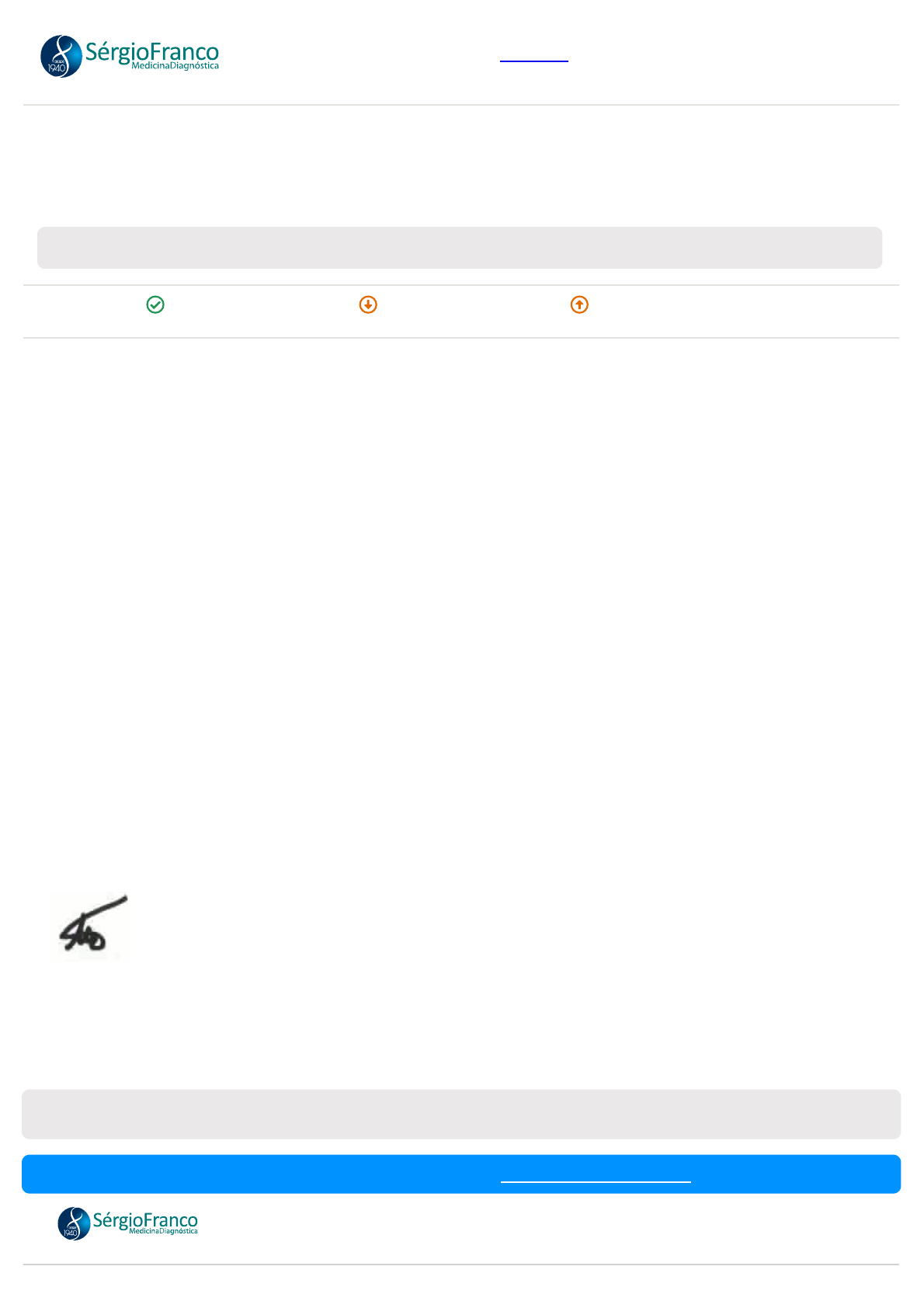 Atendimento ao Cliente (21) 2672 7070 Canal Médico Luana Carolina Rodrigues Ferreira FAP: 861500392225 Gênero: Feminino DN: 16/05/1999 | 21 anos e 11 meses Médico: Dr(a). Juliana Torres Alzuguir Snel Correa Endereço: Rua Oscar Lopes 103, Casa 05, Freguesia, , RJ - BR DATA COLETA/RECEBIMENTO: 14/10/2020 15:44 BRT ÚLTIMA REFEIÇÃO: Desconhecido Dentro do intervalo de referência Abaixo do intervalo de referência Acima do intervalo de referência Legenda aplicável para valores numéricos A interpretação dos resultados deste(s) exame(s) e a conclusão diagnóstica são atos médicos, dependem de análise conjunta dos dados clínicos e demais exames do(a) paciente. Quer se informar sobre a COVID-19? Acesse www.dasa.com.br/coronavirus Data da geração: 30/04/2021 - 12:03 Sob a responsabilidade do Dr. Gustavo Aguiar Campana CRM/RJ 52.0108745-2 Pág. 1 de 2 Laboratório registrado no CRM/RJ/RJ sob o número 0111212-0 - Licença de funcionamento 52425 Citologia Cérvico-vaginal em Meio Líquido - ThinPrep: Adequabilidade do Material: Satisfatória Epitélios representados na amostra: Escamoso e metaplásico Microbiologia: Flora Mista Diagnóstico descritivo: Lesão intraepitelial escamosa de baixo grau (Displasia leve/ Grau 1). Observação: Presença de inflamação moderada Exame analisado por: Dr. Gesner Vieira Motta CRM-RJ 5225308-7 "O exame de Colpocitologia Oncótica (Papanicolaou) é um exame de triagem e de acordo com trabalhos científicos nacionais e internacionais, apresenta sensibilidade de até 76% em meio líquido (Thinprep) e de 68% para a convencional. A incidência de falsos negativos é de 27% para citologia em meio líquido (Thinprep) e de 49% para a convencional. (Montz FJ et al Obstetrics & Gynecology, 2001; 97, 781:788 - Abulafia O Gynecologic Oncology, 2003; 90, 137:144 ) Apenas o médico assistente ou, eventualmente, outros médicos integrantes da equipe assistencial têm condições de interpretar apropriadamente o laudo anatomopatológico, inserindo-o no contexto clínico da doença ou das doenças em investigação." A nomenclatura utilizada baseia-se no Sistema de Bethesda - 2014. (Material: Raspado Cérvico Vaginal) (Método: THINPREP (HOLOGIC/CYTYC)) Liberado por: Dr. Gesner Vieira Motta CRM-RJ 5225308-7 (18/10/2020 - 09:25 BRT) Responsável: Dr. Wilhermo Torres CRM-RJ 52.24282-4 CRM-RJ: 52.24282-4 https://canalmedico.dasa.com.br/ http://www.dasa.com.br/coronavirus Atendimento ao Cliente (21) 2672 7070 Canal Médico Luana Carolina Rodrigues Ferreira FAP: 861500392225 Gênero: Feminino DN: 16/05/1999 | 21 anos e 11 meses Médico: Dr(a). Juliana Torres Alzuguir Snel Correa Endereço: Rua Oscar Lopes 103, Casa 05, Freguesia, , RJ - BR DATA COLETA/RECEBIMENTO: 14/10/2020 15:44 BRT ÚLTIMA REFEIÇÃO: Desconhecido Dentro do intervalo de referência Abaixo do intervalo de referência Acima do intervalo de referência Legenda aplicável para valores numéricos A interpretação dos resultados deste(s) exame(s) e a conclusão diagnóstica são atos médicos, dependem de análise conjunta dos dados clínicos e demais exames do(a) paciente. Quer se informar sobre a COVID-19? Acesse www.dasa.com.br/coronavirus Data da geração: 30/04/2021 - 12:03 Sob a responsabilidade do Dr. Gustavo Aguiar Campana CRM/RJ 52.0108745-2 Pág. 2 de 2 Laboratório registrado no CRM/RJ/RJ sob o número 0111212-0 - Licença de funcionamento 52425 Locais de Execução dos exames: DASA - Rua Xavier Pinheiro, 439 Quadra 29 - Pq. Duque de Caxias - Duque de Caxias, RJ Citologia Cérvico-vaginal em Meio Líquido https://canalmedico.dasa.com.br/ http://www.dasa.com.br/coronavirus