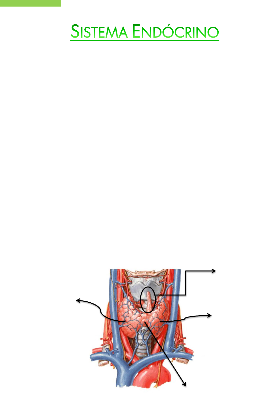 Laís Molina – Med 102 Anatomia Sistêmica e Aplicada II – Prof. Emílio Glândula Tireoide A glândula tireoide é a maior glândula endócrina do corpo, a qual produz os hormônios tireoidianos (T3 e T4) e calcitonina. Ademais, influencia todas as áreas do corpo, com exceção dela própria e do baço, testículos e útero. Tem origem na região da laringe, próxima ao assoalho na língua, no forame cego, onde existe um ducto chamado de ducto tireoglosso, que faz a ligação da tireoide com a língua. Está localizada na região cervical (na parte anterior do pescoço), e situa-se profundamente aos músculos esternotireóideo e esterno-hióideo, no nível das vértebras C5 – T1. É formada por lobos direito e esquerdo, situados anterolateralmente à laringe e à traqueia. Um istmo une os lobos sobre a traqueia (pode estar ausente como variação anatômica) Pode apresentar também, como variação anatômica, um lobo piramidal, que é um remanescente embrionário do ducto tireoglosso. A glândula tireoide pode ser ectópica, ou seja, pode estar fora de sua localidade normal (variação anatômica). É circundada por uma cápsula fibrosa fina, que envia septos profundos para o interior da glândula. Lobo Piramidal Lobo Esquerdo Istmo Lobo Direito Laís Molina – Med 102 Anatomia Sistêmica e Aplicada II – Prof. Emílio Suprimento Arterial: A glândula tireoide é suprida pelas artérias tireóideas superior e inferior. Em geral, os primeiros ramos das artérias carótidas externas, as artérias tireóideas superiores, dividem-se em ramos anterior e posterior que suprem principalmente a face anterossuperior da glândula. As artérias tireóideas inferiores são os maiores ramos dos troncos tireocervicais que se originam das artérias subclávias. Seguem em sentido superomedial até chegarem à face posterior da glândula tireoide. Dividem-se em ramos e suprem a face posteroinferior, incluindo os polos inferiores da glândula. Tem uma íntima relação com o nervo laríngeo recorrente. As artérias tireóideas superiores e inferiores direita e esquerda anastomosam-se dentro da glândula, assegurando sua vascularização ao mesmo tempo em que proporcionam potencial de circulação colateral entre as artérias subclávia e carótida externa. Em algumas pessoas, uma artéria tireóidea ima ímpar origina-se normalmente do tronco braquiocefálico, e ascende sobre a face anterior da traqueia, emitindo pequenos ramos para ela. A artéria continua até o istmo da glândula tireoide, onde se divide para irrigá- la. Suprimento Venoso: Três pares de veias tireóideas formam um plexo venoso tireóideo na superfície anterior da glândula tireoide e anterior à traqueia. São elas: veias tireóideas superiores, veias tireóideas médias e veias tireóideas inferiores. As veias tireóideas superiores acompanham as artérias tireóideas superiores, e drenam os polos superiores da glândula tireoide e drenam para as veias jugulares internas. As veias tireóideas médias não acompanham, mas seguem trajetos paralelos às artérias tireóideas inferiores, e drenam a região intermédia dos lobos e drenam para as veias jugulares internas. As veias tireóideas inferiores, geralmente independentes, drenam os polos inferiores e drenam também para as veias braquiocefálicas, posteriormente ao manúbrio do externo. Laís Molina – Med 102 Anatomia Sistêmica e Aplicada II – Prof. Emílio Drenagem linfática: Os vasos linfáticos da glândula tireoide seguem no tecido conjuntivo interlobular, perto das artérias. Eles se comunicam com uma rede capsular dos vasos linfáticos. Os vasos seguem primeiro para os linfonodos pré-laríngeos, pré- traqueais e paratraqueais. Os linfonodos pré-laríngeos drenam para os linfonodos cervicais superiores; os linfonodos pré-traqueais e paratraqueais drenam para os linfonodos cervicais profundos inferiores. Inervação: Os nervos da glândula tireoide são derivados dos gânglios simpáticos cervicais superiores, médios e inferiores. Os gânglios chegam à glândula através dos plexos cardíaco e periarteriais tireóideos superior e inferior, que acompanham as artérias tireóideas. Glândulas Paratireoides As glândulas paratireoides são pequenas, ovais e achatadas. Produzem o hormônio paratormônio (PTH), que controla o metabolismo do fósforo e do cálcio no sangue (aumenta a absorção), e atuam no esqueleto, nos rins e no intestino. Situam-se externamente à cápsula tireóidea, na metade medial da superfície posterior de cada lobo da glândula tireoide, dentro de sua bainha. Normalmente, as pessoas possuem quatro glândulas paratireoides. As glândulas paratireoides superiores costumam situar-se 1 cm acima do ponto de entrada das artérias tireóideas inferiores na glândula tireoide, no nível da margem inferior da cartilagem cricóidea. As glândulas paratireoides inferiores usualmente situam-se 1 cm abaixo do ponto de entrada arterial, perto dos polos inferiores da glândula tireoide. Laís Molina – Med 102 Anatomia Sistêmica e Aplicada II – Prof. Emílio Suprimento Arterial: Geralmente ramos das artérias tireóideas inferiores são responsáveis por suprir as glândulas paratireoides. Podem também ser supridas por ramos das artérias tireóideas superiores; a artéria ima; ou as artérias laríngeas, traqueais e esofágicas. Suprimento Venoso: As veias paratireóideas drenam para o plexo venoso tireóideo da glândula tireoide e da traqueia. Drenagem linfática: Os vasos linfáticos das glândulas paratireoides drenam com os vasos da glândula tireoide para os linfonodos cervicais profundos e linfonodos paratraqueais. Inervação: A inervação é derivada de ramos tireóideos dos gânglios simpáticos cervicais, que são vasomotores e não secretomotores, pois as secreções endócrinas dessas glândulas são controladas por hormônios.