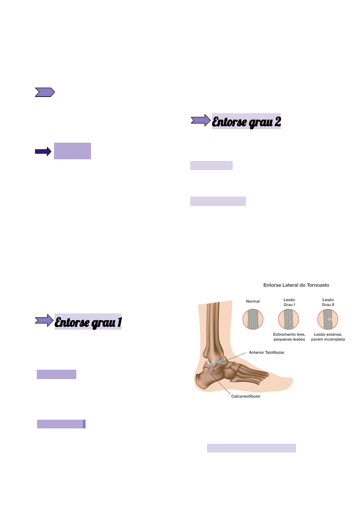 Lesõe� Saib� diferencia� ento�s�, distensã�, luxaçã�, contusã�. Entors� É a perda momentânea de uma articulação. Pode ser definida também como uma lesão traumática dela por meio de alongamento, arrancamento ou ruptura de um ou mais ligamentos, sem deslocamento das superfícies articulares. Ou seja, é a separação momentânea das superfícies ósseas articulares, provocando assim o estiramento ou rompimento dos ligamentos. O nível de gravidade da lesão é classificada de diversas maneiras; porém são mais usados esses dois sistemas: Entors� gra� 1 Quando se dá o estiramento ou uma pequena rotura das fibras dos ligamentos com pouca ou nenhuma instabilidade articular. -Sintomas: Dor de moderada a forte, edema e rigidez muscular. Há uma pequena laceração no músculo ou no tendão. A dor é mais extensa, durando de 1 a 3 semanas -Tratamento: Descanse o local lesionado. Se não há fratura coloque algum peso sobre a perna. Use uma tornozeleira pois muitas vezes ajuda a controlar o inchaço e acrescenta estabilidade enquanto os ligamentos estão cicatrizando. Mantenha a perna elevada para evitar inchaço. Não coloque gelo diretamente sobre a pele (use um pedaço de pano fino como uma almofada entre o saco de gelo e a pele) e não aplique gelo por mais de 20 minutos de cada vez para evitar queimaduras. Entors� gra� 2 É quando ocorre alguma ruptura e separação das fibras ligamentares e instabilidade moderada da articulação. -Sintomas: Dor de moderada a forte, edema e rigidez muscular. Há uma pequena laceração no músculo ou no tendão. A dor é mais extensa, durando de 1 a 3 semanas -Tratamento: Imobilizar imediatamente o local e aplicar compressas frias e bolsas de gelo durante as primeiras 24 horas. Nos casos mais graves podem necessitar de imobilização com bandagens ou gesso, por isso não hesite em procurar um hospital mais próximo. @clareandoaenfermagem Distensã� A distensão muscular ocorre quando um músculo se estica demais, gerando a ruptura de algumas fibras musculares ou de todo o tendão ou músculo envolvido. Esse estiramento muscular é resultante de um esforço extremo realizado pelo músculo em questão. As distensões são mais facilmente reconhecidas que as contraturas musculares (músculo contraindo de forma incorreta), uma vez que a dor causada pela ruptura dos feixes é imediata, tornando impossível dar continuidade ao exercício. As causas da distensão muscular são devido ao esforço excessivo para realizar uma contração muscular durante a prática de atividade física, e por isso o estiramento muscular é muito comum em atletas que estão se preparando para um campeonato ou durante uma competição, mas também pode ocorrer em pessoas comuns que exigem um grande esforço de seus músculos e articulações num dia que decide jogar bola com os amigos, tipo numa partida de final de semana. -Sintomas: Dor intensa localizada próximo de uma articulação, fraqueza muscular, dificuldade de movimentar a região afetada, sendo difícil continuar na atividade, pode vir a ficar roxo (característica do extravasamento sanguíneo), inchaço e a região pode ficar um pouco mais quente que o normal. -Tratamento: Repouso da região afetada, uso de remédios anti-inflamatórios em pomadas ou comprimidos, Ibuprofeno (sempre sob orientação médica), faça compressas frias ou com gelo de 3 a 4 vezes por dia até 48 horas e sessões de fisioterapia se necessário. Se for o caso, a fisioterapia deve ser o quanto antes para garantir o retorno às atividades diárias o mais rápido possível. L�açã� A luxação é uma lesão que ocorre dentro das articulações em que um dos ossos é deslocado perdendo seu encaixe natural. Muitas vezes ela pode estar associada a uma fratura e geralmente é causada por um forte traumatismo (queda, acidente automobilístico, doenças crônicas como artrite ou artrose). -Sintomas: Restrição da mobilidade da articulação da área afetada, dores, inchaço local e alteração do formato do órgão. A luxação do ombro é uma das mais comuns luxações de grandes articulações. -Tratamento: Reposição, após a exclusão de fraturas ósseas através de um raio-x. Uso de analgésicos para suportar a dor e “redução” da luxação, que consiste em posicionar o osso devidamente no seu lugar (feitos por médicos). Em alguns casos mais específicos talvez seja necessária uma cirurgia para o correto posicionamento do osso. Contusã� A contusão é uma lesão (sem fratura) dos tecidos moles do corpo. Ela é considerada uma lesão traumática aguda, sem corte, decorrente de trauma direto aos tecidos moles e que provoca dor e edema. A contusão vai de leve até uma grande infiltração de sangue nos tecidos vizinhos. Diversos fatores expõem cada indivíduo às contusões, até mesmo o menor choque. Pessoas que não comem alimentos frescos e crus são mais suscetíveis a sofrerem contusões, aqueles que possuem carência de vitamina C e que não bebem água suficiente também estão mais propensos. Sintoma�: Após um trauma, a contusão pode aparecer espontaneamente. O primeiro sinal é a dor que é sentida durante o impacto. Depois do impacto, a área lesionada fica inchada, vermelha e inflamada. A dor pode impedir a vítima de se movimentar normalmente. A pele fica roxa e não desaparece se for pressionada. Com o tempo ela some gradualmente. Tratamento: Resfrie a lesão com a aplicação de um objeto gelado por 10 a 12 minutos, fique em repouso a fim evitar mais contusões, se houver inchaço eleve a área afetada o máximo possível, faça compressão sobre o membro inchado. O uso de medicação analgésica pode ser feito por aqueles que não conseguem tolerar a dor. Se a contusão não tiver ferida, a aplicação de creme ou gel específico alivia e reduz o inchaço. Tomar vitamina C tem uma ação curativa e também preventiva. Para previnir, evite ser atingido com um agente agressor ou