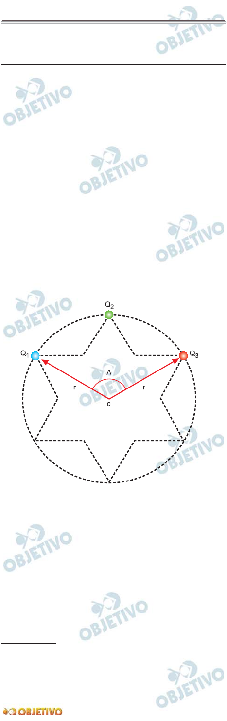 FFÍÍSSIICCAA 16 Por meio do processo conhecido como eletrização por atrito, eletriza-se com um tecido uma pequena esfera metálica, inicialmente neutra e presa a um suporte isolante. Após o atrito, constata-se que essa esfera perdeu 1,0 x 1020 elétrons. A seguir, faz-se o contato imediato e sucessivo dessa esfera com outras três (3) esferas idênticas a ela, inicialmente neutras, fixadas em suportes isolantes e separadas entre si conforme mostra a figura. Depois dos contatos, a esfera inicialmente eletrizada por atrito é levada para bem longe das demais. Supondo o local do experimento eletricamente isolado, k a constante eletrostática do meio do local do experimento e o potencial de referência no infinito igual a zero, determine o potencial elétrico no ponto C devido às cargas das esferas fixas. Dado: carga do elétron = 1,6 x 19–19C a) sen θ b) c) cos θ d) b) Resolução Q = carga inicial adquirida por atrito: Q = +n . e = +1,0 . 1020 . 1,6 . 10–19C 1.o contato: Q1 = = = 8C 14 . k ––––– r 14 . k ––––– r2 12 . k ––––– r 14 . k ––––– r 16 . k ––––– r2 Q = 16C 16C –––– 2 Q ––– 2 PPUUCC -- DDEEZZEEMMBBRROO//22001144 2.o contato: Q2 = = = 4C 3.o contato: Q3 = = = 2C A distância entre o centro C da estrela e cada uma das esferas é r. O potencial elétrico devido a uma carga em um ponto é dado por V = k Então, o potencial de Q1 em C vale: V1 = k Admitindo-se que a constante k e a distância r este - jam medidas em unidades SI: V1 = k (unidades SI) V2 = k = k (unidades SI) V3 = k = k (unidades SI) O potencial elétrico resultante em C é dado pela soma algébrica dos potenciais parciais: VC = V1 + V2 + V3 Vc = k + k + k (unidades SI) Vc = (unidades SI) Resposta pretendida pelo examinador: E Comentários: 1) O valor da carga do elétron está errado: em vez de 1,6 . 19–19C, o correto é 1,6 . 10–19C 2) A carga elétrica resultante na esfera, por atrito, é absurdamente elevada: 16C. Pequenas esferas suportam cargas entre 10–16C e 10–12C. 3) Não temos no enunciado as unidades de r e nem tampouco da constante eletrostática. Desse modo, a resposta à questão ficou prejudicada. Propomos que se anule a questão. Resposta: EE 8C ––– 2 Q1––– 2 4C ––– 2 Q2––– 2 Q ––– r Q1––– r 8 ––– r 4 ––– r Q2––– r 2 ––– r Q3––– r 2 ––– r 4 ––– r 8 ––– r 14k –––– r PPUUCC -- DDEEZZEEMMBBRROO//22001144 17 As Nações Unidas declararam 2015 como o ano interna - cional da luz e das tecnologias baseadas em luz. O Ano Internacional da Luz ajudará na divulgação da im por - tância de tecnologias ópticas e da luz em nossa vida cotidiana. A luz visível é uma onda eletromagnética, que se situa entre a radiação infravermelha e a radiação ultravioleta, cujo comprimento de onda está compreen - dido num determinado intervalo dentro do qual o olho humano é a ela sensível. Toda radiação eletromagnética, incluindo a luz visível, se propaga no vácuo a uma velocidade constante, comumente chamada de velocidade da luz, constituindo-se assim, numa importante constante da Física. No entanto, quando essa radiação deixa o vácuo e penetra, por exemplo, na atmosfera terrestre, essa radiação sofre variação em sua velocidade de propagação e essa variação depende do comprimento de onda da radiação incidente. Dependendo do ângulo em que se dá essa incidência na atmosfera, a radiação pode sofrer, tam - bém, mudança em sua direção de propagação. Essa mu - dança na velocidade de propagação da luz, ao passar do vácuo para a camada gasosa da atmosfera terrestre, é um fenômeno óptico conhecido como: a) interferência b) polarização c) refração d) absorção e) difração Resolução A variação de velocidade experimentada pela luz ou outra onda eletromagnética ao mudar de um meio para outro é um fenômeno conhecido como refração. Resposta: CC PPUUCC -- DDEEZZEEMMBBRROO//22001144 18 Considere uma mola de comprimento inicial igual a L0 e um bloco de massa igual a m, conforme a figura 1. Com esses dois objetos e mais uma prancha de madeira, cons - trói-se um sistema mecânico, em que uma das extre - midades da mola foi presa a uma das faces do bloco e a outra extremidade presa a um suporte na prancha de madeira, conforme mostra a figura 2. O sistema perma - nece em equilíbrio estático após a mola ter sofrido uma deformação x assim que o bloco foi abandonado sobre a prancha. Sabe-se que o coeficiente de atrito estático entre as superfícies de contato do bloco e da prancha é igual a μe . O sistema está inclinado de um ângulo igual a � em relação ao plano horizontal e o módulo da aceleração da gravidade, no local do experimento, é igual a g. Com base nessas informações, a expressão algébrica que permite determinar o valor da constante elástica k da mola é dada por: a) k = b) k = c) k = d) k = e) k = Resolução Vamos admitir que o bloco de massa m esteja em repou so, porém, na iminência de se movimentar. Assim, po deremos supor que a força de atrito estático tem in tensidade máxima, ou seja: (1) m . g . (sen θ – μe . cos θ)––––––––––––––––––––– x μe . m . g . (sen θ – cos θ)–––––––––––––––––––––– x m . g . μe . x––––––––––––– (sen θ – cos θ) m . g . sen θ – μe . cos θ––––––––––––––––––––– x m . g . (cos θ – μe .sen θ)––––––––––––––––––––– x Fat = μe . Fn PPUUCC -- DDEEZZEEMMBBRROO//22001144 Vamos admitir que força de atrito atua para cima. Na direção tangencial ao plano, a força resultante é nula e temos Pt = Felást + Fat ou Felást = Pt – Fat (2) Na direção perpendicular ao plano: FN = Pn = m . g . cos θ (3) De (3) em (1), vem: Fat = μe . m . g . cos θ 
