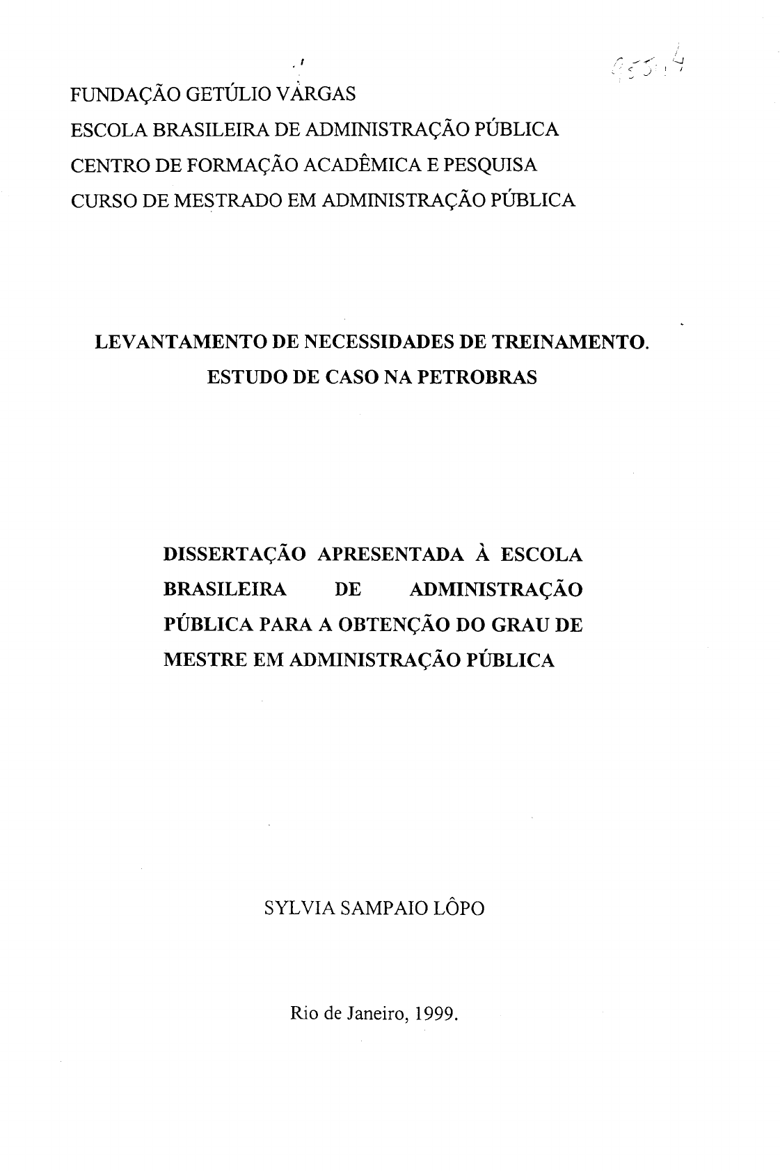 FUNDAÇÃO GETÚLIO V ÀRGAS ESCOLA BRASILEIRA DE ADMINISTRAÇÃO PÚBLICA CENTRO DE FORMAÇÃO ACADÊMICA E PESQUISA CURSO DE MESTRADO EM ADMINISTRAÇÃO PÚBLICA ! r _ . ..."./ 1---1 '~ J' t J LEVANTAMENTO DE NECESSIDADES DE TREINAMENTO. ESTUDO DE CASO NA PETROBRAS DISSERTAÇÃO APRESENTADA À ESCOLA BRASILEIRA DE ADMINISTRAÇÃO PÚBLICA PARA A OBTENÇÃO DO GRAU DE MESTRE EM ADMINISTRAÇÃO PÚBLICA SYL VIA SAMPAIO LÔPO Rio de Janeiro, 1999. FUNDAÇÃO GETÚLIO VARGAS ESCOLA BRASILEIRA DE ADMINISTRAÇÃO PÚBLICA CENTRO DE FORMAÇÃO ACADÊMICA E PESQUISA CURSO DE MESTRADO EM ADMINISTRAÇÃO PÚBLICA LEVANTAMENTO DE NECESSIDADES DE TREINAMENTO. ESTUDO DE CASO NA PETROBRAS DISSERTAÇÃO DE MESTRADO APRESENTADA POR SYL VIA SAMPAIO LÔPO E APROVADA EM 02/07/1999 PELA COMISSÃO EXAMINADORA /"- J,a t ~ 'a d< ~;2,"~ o V ALÉ~A DE SOUZA - MESTRE EM ADMINISTRAÇÃO J~~t~ F Á TIMA BA ~ DE OLIVEIRA - DOUTORA EM EDUCAÇÃO fJ~il PAULO ROBERTO MOTTA - DOUTOR EM ADMINISTRAÇÃO PÚBLICA ii li' "Aprender significa modificar a conduta e não, simplesmente, acumular conhecimentos." Tomás de Vilanova Monteiro Lopes "O treinamento de hoje é o caminho do sucesso de amanhã." Alexandre Randol1 "As organizações inteligentes só aprendem através de indivíduos que aprendem. O aprendizado individual não garante o aprendizado organizacional, mas sem ele não há como ocorrer o aprendizado organizacional." Peter Senge - "A quinta disciplina. ,. - 1990 iv DEDICATÓRIA Aos meus queridos pais, por todo amor, dedicação, compreensão, sabedoria, exemplo e apoio que sempre, incondicionalmente, me ofereceram e sem os quais não teria vencido mais este desafio na minha vida. v AGRADECIMENTOS • À Petrobras, por ter permitido e criado condições para a realização do mestrado, particularmente ao Superintendente de Recursos Humanos, José Lima de Andrade Neto, por ter acreditado no meu potencial; • À minha orientadora Prof Valéria de Souza, pelos ensinamentos, compreensão e carinho que sempre me ofereceu; • Aos professores Paulo Roberto Motta e Fátima Bayma de Oliveira, por terem aceitado fazer parte de minha banca; .• Aos Gerentes do E&P, pela atenção e interesse demonstrados durante as entrevistas que gentilmente me concederam; • Aos colegas do SETEP, Gabriel, Marchi, Ricardo, Vaneir e, especialmente a Eurico, que sempre me encorajaram e me deram condições de concluir este trabalho; • Aos amigos Denize e Irapuan, que sempre disponíveis e solicitos, contribuíram decisivamente para a elaboração deste trabalho, desde a formulação do conteúdo, até o "carregar do piano", sem esquecer o constante apoio moral e logístico; • Ao meu filho Gustavo que serviu de incentivo para a realização deste trabalho. vi SINOPSE É indiscutível a importância do treinamento para que as organizações alcancem os seus objetivos empresariais e prosperem. Entretanto, para que o treinamento efetivamente impacte os resultados organizacionais é essencial, entre outros, um criterioso e abrangente levantamento de necessidades de treinamento. Partindo de uma abordagem teórica sobre Políticas Públicas, Políticas de RH e a sub função Desenvolvimento de RH, integrada às demais funções, com foco nas diversas concepções e modelos de levantamento de necessidades de treinamento e suas interrelações com os demais componentes do sistema, esta dissertação estuda o processo de levantamento de necessidades de treinamento na Petrobras e propõe sugestões visando aumentar a sua efetividade, contribuindo, conseqüentemente, para a maximização dos resultados organizacionais. vii ABSTRACT It's indisputable the training importance in order that the organizations attain their business goals, grow and get success. However, in order that the training effectively contributes to the business results, it' s essential, among others, a careful and complete Training Necessity Identification. From one theoretical approach about Public Policies, Human Resources Policies and Human Resources Development subfunction, integrated into the others functions, focus in several conceptions and Training Necessity Identification models and their relations with the others system parts, this thesis studies the Training Necessity Identification process in Petrobras and makes suggestions to improve its effectiveness, contributing, consequently, to get better organizational results. viii suMÁRIo Capítulo Página I. IN"TRODUÇÃO ........................................................................................................ 1 1.1. Apresentação ....................................................................................................... 1 1.2. Metodologia ........................................................................................................ 3 I. 3. Perfil da Petrobras ............................................................................................... 5 ll. POLÍTICAS PÚBLICAS: uma fundamentação teórica •...................................... 9 1I.1. Definição ........................................................................................................... 9 II.2. Fases do processo de políticas públicas ............................................................. 11 1I.3. Análise de políticas públicas .............................................................................. 14 liA. Uma tipologia de políticas ............................................................................... 19 ID. POLÍTICAS DE RECURSOS HUMANOS ....................................................... 21 1I1.1. Introdução .................................................................................................... 21 III.2. Premissas e tendências ................................................................................... 22 III.3. Sistemas de Administração de Recursos Humanos ......................................... 24 Ill.4. Conteúdo das Políticas ..