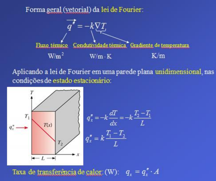TRANSFERÊNCIA DE CALOR 1. Introdução Em linhas gerais, podemos definir calor como sendo energia térmica em trânsito devido a uma diferença de temperaturas no espaço. A ciência que se preocupa com a determinação das taxas de transferência de energia é a transferência de calor. Todos os processos de transferência de calor podem ser quantificados através de equações de taxa. Já por outro lado, a termodinâmica trata apenas da quantidade de calor transferida quando um sistema passa de um estado de equilíbrio para outro. Como engenheiros, é importante que saibamos quais os mecanismos físicos que fundamentam a transferência de calor. Estes mecanismos são reconhecidos distintamente por: condução, convecção e radiação. 1.1 Condução O mecanismo de condução está associado com as atividades atômicas e moleculares da matéria. Podemos visualizar a condução como a transferência de energia das partículas mais energéticas para as menos energéticas de uma substância devido às suas interações. Para a condução térmica, a equação da taxa é conhecida como lei de Fourier. Um resumo dessa lei é mostrado no quadro a seguir. Ex. (1.1) As superfícies interna e externa de uma parede de tijolos de 4 m × 7 m e 30 cm de espessura são mantidas em temperaturas de 26 ºC e 8 ºC, respectivamente. A condutividade térmica da parede é de 0,69 W/m.K. Determine a taxa de transferência de calor por meio da parede. Ex. (1.2) Trechos de um oleoduto que atravessa o Alasca encontram-se acima do solo e são sustentados por suportes verticais de aço (k = 25 W/m.K) que possuem comprimento de 1 m e área de seção transversal de 0,005 m2. Em condições normais de operação, sabe-se que a variação da temperatura ao longo do suporte é governada por uma expressão com a forma T = 100 – 150x + 10x2, na qual T e x possuem unidades de ºC e m, respectivamente. Determine a temperatura e a taxa de condução de calor na junção suporte-oleoduto (x = 0) e na interface suporte-solo (x = 1m). 1.2 Convecção Convecção é o modo de transferência de energia entre uma superfície sólida e um fluido que está escoando, e que envolve os efeitos combinados de condução e de movimento do fluido. Uma consequência da interação entre o fluido e a superfície é o desenvolvimento da camada-limite hidrodinâmica e da camada-limite térmica. A convecção é chamada convecção forçada se o fluido é forçado a fluir sobre a superfície por meios externos como ventiladores, bombas ou o próprio vento. Em contrapartida, a convecção é chamada convecção natural (ou livre) se o movimento do fluido é causado por forças de flutuação induzidas por diferenças de densidade, decorrentes da variação da temperatura no fluido. A taxa de transferência de calor por convecção é proporcional à diferença de temperatura, sendo expressa pela lei do resfriamento de Newton como: TThAq ss onde: h é o coeficiente de transferência de calor por convecção [W/m2.K]; As é a área da superfície onde ocorre troca térmica [m 2] Em termos de fluxo, a lei de resfriamento de Newton toma a seguinte forma: TThq s'' Ex. (1.3) Um aquecedor elétrico encontra-se no interior de um longo cilindro de diâmetro igual a 30 mm. Quando água, a uma temperatura de 25 ºC e velocidade de 1 m/s escoa perpendicularmente ao cilindro, a potência por unidade de comprimento necessária para manter a superfície do cilindro a uma temperatura uniforme de 90 ºC é de 28 kW/m. Quando ar, também a 25 ºC, mas a uma velocidade de 10 m/s está escoando, a potência por unidade de comprimento necessária para manter a mesma temperatura superficial é de 400 W/m. Calcule e compare os coeficientes de transferência de calor por convecção para os escoamentos de água e de ar. 1.3 Radiação Radiação é a energia emitida pela matéria sob a forma de ondas eletromagnéticas (ou fótons) como resultado das mudanças nas configurações eletrônicas de átomos ou moléculas. Ao contrário da condução e da convecção, a transferência de calor por radiação não exige a presença de um meio físico ou material. Em nossos estudos, estamos interessados em radiação térmica, que é a forma de radiação emitida pelos corpos por causa de sua temperatura. Todo corpo com temperatura diferente de zero emite radiação. O fluxo de energia térmica liberado por uma superfície é conhecido como poder emissivo E, sendo que seu limite superior é dado pela lei de Stefan-Boltzmann 4 sTE onde: Ts é a temperatura da superfície [K] σ é a constante de Stefan-Boltzmann, cujo valor é 5,67 × 10-8 W/m2.K4 O fluxo térmico emitido por uma superfície real é dado por: 4 sTE em que ε é uma propriedade radiante da superfície conhecida por emissividade. Um radiador ideal (ou seja, com ε = 1) é chamado de corpo negro. O corpo negro também é um absorvedor ideal, absorvendo toda a energia que incide sobre ele. A figura a seguir ilustra um exemplo de um corpo negro: uma cavidade que absorve toda a radiação incidente e que após um certo tempo, passa a emitir essa radiação para o exterior. A taxa de transferência de calor por radiação pode ser expressa como: 44 vizs TTAq Ou em termos do coeficiente de transferência de calor por radiação hr: vizsr TTAhq onde: 22 vizsvizsr TTTTh Ex. (1.4) Uma tubulação de vapor de água sem isolamento térmico atravessa uma sala que está a 25 ºC. O diâmetro externo do tubo é de 70 mm, a temperatura de sua superfície é de 200 ºC e sua emissividade é 0,8. Considerando um coeficiente de transferência de calor por convecção da superfície para o ar de 15 W/m2.K, calcule o poder emissivo e a taxa de calor perdida pela superfície por unidade de comprimento do tubo.