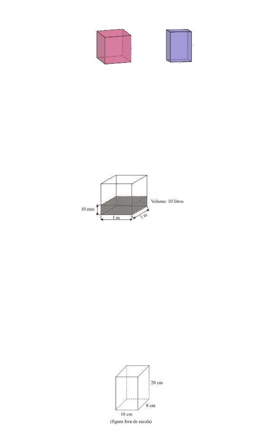Exercícios Cubo Paralelepípedo At = 6a2 At = 2ab+2ac+2bc V = a3 V = abc 1) Uma das caixas de embalagens usadas pelos CORREIOS tem forma de um paralelepípedo retângulo de área total igual a 352 cm². Se as dimensões desta caixa estão proporcionais aos números 1, 2 e 3, então as medidas são, em cm a) 4, 8 e 12 b) 2, 4 e 12 c) 12, 24 e 36 d) 10, 20 e 30 e) 15, 20 e 35 2) Quando se diz que numa determinada região a precipitação pluviométrica foi de 10 mm, significa que a precipitação naquela região foi de 10 litros de água por metro quadrado, em média. Se numa região de 10 km2 de área ocorreu uma precipitação de 5 cm, quantos litros de água foram precipitados? a) 5 x 107 b) 5 x 108 c) 5 x 109 d) 5 x 1010 e) 5 x 1011 3) Um queijo tem o formato de paralelepípedo, com dimensões 20 cm x 8 cm x 5 cm. Sem descascar o queijo, uma pessoa o divide em cubos com 1 cm de aresta, de modo que alguns cubos ficam totalmente sem casca, outros permanecem com casca em apenas uma face, alguns com casca em duas faces e os restantes com casca em três faces. Nesse caso, o número de cubos que possuem casca em apenas uma face é igual a) 344 b) 360 c) 324 d) 368 e) 396 4) Certa empresa fabrica xarope de açaí, acondicionado em vasilhames na forma de um paralelepípedo retângulo de dimensões 8 cm, 10 cm e 20 cm (medidas internas). Cada vasilhame custa para a empresa R$ 0,30. O valor exato gasto com vasilhames pela empresa para acondicionar 9 600 cm³ do xarope é a) R$ 0,60 b) R$ 1,20 c) R$ 1,80 d) R$ 12,00 e) R$ 18,00 https://1.bp.blogspot.com/-aWILEcLbrq4/W70PlUJRPMI/AAAAAAAAR8c/XR9PZIduZw04dvIC9d4U4JsF3kgX1vCtACLcBGAs/s1600/vpn.rr.jpg 5) Uma fábrica produz barras de chocolates no formato de paralelepípedos e de cubos, com o mesmo volume. As arestas da barra de chocolate no formato de paralelepípedo medem 3 cm de largura, 18 cm de comprimento e 4 cm de espessura. Analisando as características das figuras geométricas descritas, a medida das arestas dos chocolates que têm o formato de cubo é igual a a) 5 cm b) 6 cm c) 12 cm d) 24 cm e) 25 cm 6) O volume de um paralelepípedo reto-retângulo é 240cm³ As áreas de duas de suas faces são 30cm² e 48cm². A área total do paralelepípedo, em cm², é: a) 96 b) 118 c) 236 d) 240 e) 472 7) A siderúrgica “Metal Nobre” produz diversos objetos maciços utilizando o ferro. Um tipo especial de peça feita nessa companhia tem o formato de um paralelepípedo retangular, de acordo com as dimensões indicadas na figura que segue. O produto das três dimensões indicadas na peça resultaria na medida da grandeza: a) massa b) volume c) superfície d) capacidade e) comprimento 8) Alguns objetos, durante a sua fabricação, necessitam passar por um processo de resfriamento. Para que isso ocorra, uma fábrica utiliza um tanque de resfriamento, como mostrado na figura. O que aconteceria com o nível da água se colocássemos no tanque um objeto cujo volume fosse de 2400cm³? a) O nível subiria 0,2cm, fazendo a água ficar com 20,2cm de altura. b) O nível subiria 1cm, fazendo a água ficar com 21cm de altura. c) O nível subiria 2cm, fazendo a água ficar com 22cm de altura. d) O nível subiria 8cm, fazendo a água transbordar. e) O nível subiria 20cm, fazendo a água transbordar. 9) Um petroleiro possui reservatório em formato de um paralelepípedo retangular com as dimensões dadas por 60 m × 10 m de base e 10 m de altura. Com o objetivo de minimizar o impacto ambiental de um eventual vazamento, esse reservatório é subdividido em três compartimentos, A, B e C, de mesmo volume, por duas placas de aço retangulares com dimensões de 7 m de altura e 10 m de base, de modo que os compartimentos são interligados, conforme a figura. Assim, caso haja rompimento no casco do reservatório, apenas uma parte de sua carga vazará. https://4.bp.blogspot.com/-nroLDx7uML8/W70ebqU_PII/AAAAAAAAR8o/WIwiKf1-DScq696Wy-YqjLaGvOzb3N-vgCLcBGAs/s1600/enem.png https://1.bp.blogspot.com/-yblLpW99CsI/W70f9qaFfzI/AAAAAAAAR80/LOaJ4aFUnPMllsegitmncLD4pECF_Q3tQCLcBGAs/s1600/enem.png Suponha que ocorra um desastre quando o petroleiro se encontra com sua carga máxima: ele sofre um acidente que ocasiona um furo no fundo do compartimento C. Para fins de cálculo, considere desprezíveis as espessuras das placas divisórias. Após o fim do vazamento, o volume de petróleo derramado terá sido de a) 1,4 × 10³ m³ b) 1,8 × 10³ m³ c) 2,0 × 10³ m³ d) 3,2 × 10³ m³ e) 6,0 × 10³ m³ 10) Uma piscina vazia, com formato de paralelepípedo reto-retângulo, tem comprimento de 10m, largura igual a 5m e altura de 2m. Ela é preenchida com água a uma vazão de 5000 litros por hora. Considere 1000 litros = 1 m³. Após três horas e meia do início do preenchimento, a altura da água na piscina atingiu: a) 25 cm b) 27,5 cm c) 30 cm d) 32,5 cm e) 35 cm 11) Dois blocos de alumínio, em forma de cubo, com arestas medindo 10 cm e 6 cm, são levados juntos à fusão e em seguida o alumínio líquido é moldado como um paralelepípedo reto de arestas 8 cm, 8 cm e x cm. O valor de x é: a) 16 cm b) 17 cm c) 18 cm d) 19 cm e) 20 cm 12) Num recipiente com a forma de paralelepípedo reto-retângulo, colocou-se água até a altura de 8 cm e um objeto, que ficou flutuando na superfície da água. Para retirar o objeto de dentro do recipiente, a altura da coluna de água deve ser de, pelo menos, 15 cm. Para a coluna de água chegar até essa altura, é necessário colocar dentro do recipiente bolinhas de volume igual a 6 cm³ cada, que ficarão totalmente submersas. O número mínimo de bolinhas necessárias para que se possa retirar o objeto que flutua na água, seguindo as instruções dadas, é de: a) 14 b) 16 c) 18 d) 30 e) 34 https://4.bp.blogspot.com/-FrZ8cGvqFUk/W71Q3jz6rpI/AAAAAAAAR9A/gnm0sLbS0_4Lz_D76j9U7-D-4x3jnfbDACLcBGAs/s1600/enem.png https://1.bp.blogspot.com/-ftegKonNWtA/YBKxVz3b_7I/AAAAAAAAK3U/SEWu9aM3HI4iKpOFlPi8FVDSRS10ypTXACLcBGAsYHQ/s409/paralelep%C3%ADpedo+reto-
