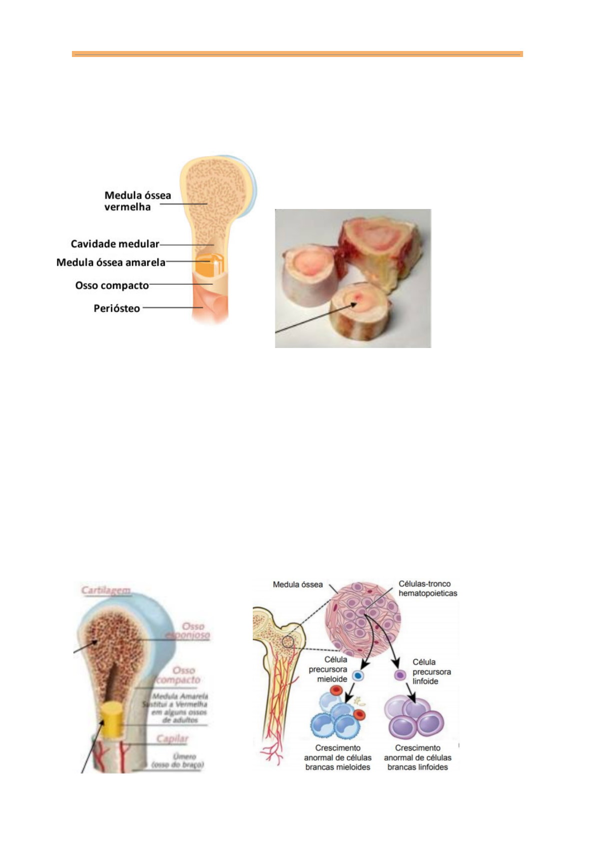 Leucemias As células progenitoras e precursoras do sangue são denominadas morfologicamente como blastos e localizam-se normalmente apenas nos órgãos hematopoiéticos (medula óssea e linfonodos), não sendo observadas no sangue normal Na hematopoiese, temos a formação de todas as células sanguíneas. Os megacariócitos se transformam em plaquetas. Medula óssea amarela- tutano- Na diáfise dos ossos longos. É formado de tecido conjuntivo formado por células adiposas. No recém-nascido é observada apenas a presença de medula óssea vermelha, sendo que ela vai sendo substituída pela amarela com o passar dos anos Nos adultos temos a transição entre a medula óssea vermelha e a amarela nos ossos longos, embora ainda mantenhamos uma quantidade de células tronco. Ex: uma pessoa com uma anemia muito grave, que não consegue desenvolver as células sanguíneas, pode ocorrer de células precursoras que estavam na medula óssea amarela se transformar em células sanguíneas. No adulto, o principal lugar que temos medula óssea vermelha- osso esponjoso ou diáfise de jovens : vértebras costelas esterno crista ilíaca ossos do crânio epífise do fêmur e úmero Gabriela de Oliveira- 4º período O mielograma é coletado de onde tem medula óssea vermelha. A partir de uma célula tronco pluripotente, temos a formação de todas as células sanguíneas. Um precursor de linha eritrocitária, outro para formação de plaquetas (a partir do megacariócito), e a linhagem mielóide- monócitos, neutrófilos, eosinófilos e basófilos células granolofiticas; e a linhagem linfóide é a formação de linfócito B e T. Se eu tenho qualquer um dos precursores na corrente sanguínea, é pq eu tenho alguma condição patológica que está causando essa liberação de células precursoras na corrente sanguínea Não conseguimos diferenciar os linfócitos B e T apenas com histologia, precisa de imunofenotipagem. Termos do hemograma Existe o escalonamento maturativo do sangue, e as células vão desde pluripotentes até células diferenciadas das linhagens. Gabriela de Oliveira- 4º período Quando temos um desvio à esquerda, temos bastonetes, que são células mais jovens dentro da linhagem… Quando temos a presença de células imaturas temos suspeita de leucemia O normal é: seguir a ordem de maturação do sangue, que é grafada da esquerda pra direita; na linhagem granulocítica para formação do segmentado, a partir de um blastos ele se compromete com a formação do segmentado e ele matura em pra promielócito, mielócito, metamielócito, bastonete e segmentado. Desvio nuclear à esquerda: quando começo a ter aparecimento de células que não estão grafadas a direta, mas sim da esquerda, aumenta bastonetes ou aparecem células mais jovens como metamielócitos e mielócitos. quando eu começo a ter precursores aparecendo na corrente sanguínea, chamo de desvio nuclear à esquerda. Escalonado: segue a escada, o aparecimento da direita pra esquerda; escada de + da direita pra - da esquerda Não escalonado: não segue a escada, tenho mais mielócito do que meta, por exemplo. MB: mieloblasto Hiato leucêmico: é quando tenho o aparecimento de células plásticas, porém, tenho uma lacuna no aparecimento de células que deveriam estar na linhagem de formação. Tenho um monte de blasto, um hiato não aparece, nem mielócito, promielo, meta e aí aparece bastonete e segmentado. É bem típico da leucemia mieloide aguda LMA. Normalmente tenho muitos blastos e bastonetes, e os intermediários não. As células estão no estroma, atingem um grau de diferenciação, e aí passam pelo sinusóide, e aí migram pro sangue periférico. Quanto tempo +/- cada linhagem fica circulante? Até que seja eliminada ou seja enviado um sinal para ser produzido mais. hemácias: 120 dias leucócitos: 20 dias- circulam 20 dias, são capturados pelo baço e são eliminados plaquetas: 10 dias Na corrente sanguínea, caem as células diferenciadas; depois de ir pro sangue periférico, elas vão para o tecido. O monócito é monócito no hemograma e quando ele entra no tecido, em uma infecção ou inflamação ele é o macrófago. Tenho algum erro de maturação em algum precursor: leucemia Leucemia aguda: o precursor afetado pode ser afetado no início da diferenciação; Leucemia crônica: pode ocorrer no precursor mielóide Diagnóstico Normalmente estão associadas mutações de diferentes tipos, mas principalmente translocações, e dependendo do local do comprometimento do precursor, posso ter um melhor ou pior prognóstico do paciente. Nunca fazemos direto o mielograma, faço primeiro um hemograma, tipologia do sangue periférico, história clínica do paciente, e após esses, faço um mielograma (aspirado de medula óssea) Gabriela de Oliveira- 4º período - Mielograma É realizado a partir de um aspirado de medula óssea, faço uma extensão do sangue para ver a celularidade. Com esse mesmo material (que foi colhido em volume maior) , consigo fazer outros exames mais específicos e avançados, como exames citoquímicos, imunofenotipagem e citogenética. Citogenética: algumas translocações já são associadas a doenças sanguíneas, então ele é um relatório hematológico frente a uma aspiração de medula óssea. Translocação 9-22- cromossomo Filadélfia Translocação 15-17- comum em LMA Alguns tipos de translocações em leucemias têm prognóstico de 2 anos, meses… Hemograma: vou ter hemoglobina, reticulócitos, leucócitos, plaquetas, etc Mielograma: fala sobre a celularidade da medula óssea- mostra a quantidade de blastos, etc. No mielograma pode não ter blastos, nós esperamos uma maturação das células sanguíneas, mas podem ter apenas blastos; blastos não granulocíticos é uma linhagem linfóide. Imunofenotipagem: verifica os marcadores que ficam na membrana dos leucócitos, que são os CDs, cada tipo de célula tem um marcador específico que fornecem características específicas e l