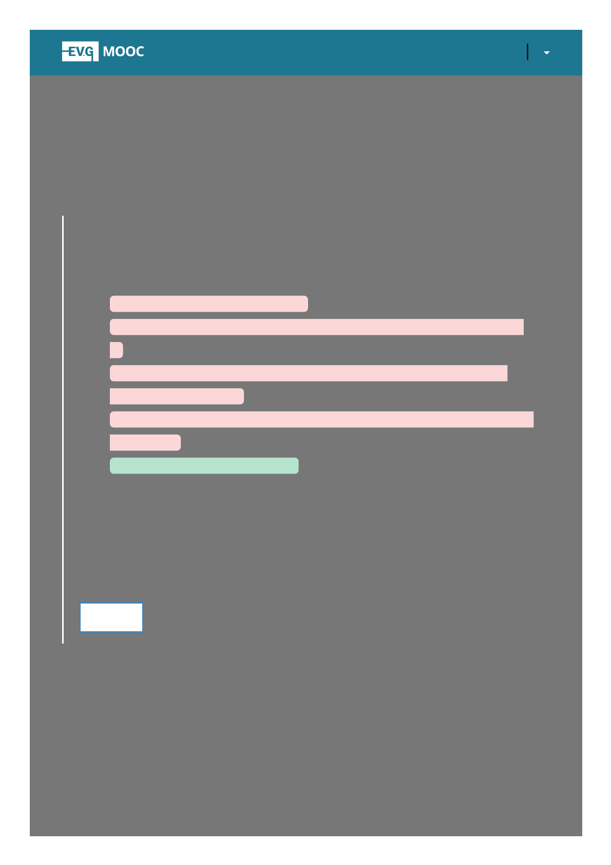 15/06/2021 inteli_emocional | - Turma JUN/2021: Módulo 1 - Gestão das Emoções Pessoais: Feedback da Questão 7 https://mooc.escolavirtual.gov.br/mod/lesson/view.php?id=163203&pageid=116838 1/2 Painel / Meus cursos / Inteligência Emocional / / Módulo 1 - Gestão das Emoções Pessoais Inteligência Emocional Módulo 1 - Gestão das Emoções Pessoais Feedback Leia as citações abaixo e aponte qual está em desacordo com os princípios da inteligência emocional: A. “Conhece-te a ti mesmo.” (Sócrates) B. “Que tal mudarmos o mundo começando por nós mesmos?” (Martin Luther King) C. “Ser feliz é deixar de ser vítima dos problemas e se tornar um autor da própria história” (Augusto Cury) D. “Quem combate monstruosidades deve cuidar para que não se torne um monstro.” (Nietzsche) E. “O inferno são os outros.” (Sartre) À exceção da conhecida frase de Sartre, as citações apresentadas refletem princípios importantes da inteligência emocional, como o autoconhecimento e a responsabilidade pessoal por buscar as mudanças que deseja em vez de cobrar do outro que ele mude. A inteligência emocional sempre começa em nós mesmos. Avançar https://mooc.escolavirtual.gov.br/my/ https://mooc.escolavirtual.gov.br/course/view.php?id=6742 https://mooc.escolavirtual.gov.br/mod/lesson/view.php?id=163203 15/06/2021 inteli_emocional | - Turma JUN/2021: Módulo 1 - Gestão das Emoções Pessoais: Feedback da Questão 7 https://mooc.escolavirtual.gov.br/mod/lesson/view.php?id=163203&pageid=116838 2/2 EV.G | Escola Virtual.Gov Seguindo as tendências educacionais mais recentes, a Escola Virtual.Gov oferece uma plataforma MOOC que sustenta a oferta de cursos de curta e média duração, abertos e gratuitos, como alternativa de formação mais aderente ao desenvolvimento rápido de competências para o trabalho. SOBRE A ESCOLA Catálogo de Cursos Catálogo de Programas Conheça a Escola Adesão Institucional Instituições Participantes Política de Privacidade UTILIDADES Validação de Documentos Perguntas Frequentes CatálogoÁrea do aluno Organizado por Escola Nacional de Administração Pública – Enap Português - Brasil (pt_br) https://www.youtube.com/channel/UCksexEveRkoez2kiEjaKZxQ https://twitter.com/enapgovbr https://www.instagram.com/enapgovbr/ https://www.facebook.com/enapgovbr/ https://www.escolavirtual.gov.br/catalogo https://www.escolavirtual.gov.br/programas https://www.escolavirtual.gov.br/conheca-a-escola https://www.escolavirtual.gov.br/adesao-institucional https://www.escolavirtual.gov.br/instituicoes-participantes https://www.escolavirtual.gov.br/politica-privacidade https://www.escolavirtual.gov.br/documentos/validacao https://www.escolavirtual.gov.br/perguntas-frequentes https://www.escolavirtual.gov.br/catalogo https://www.escolavirtual.gov.br/aluno/inicio https://www.enap.gov.br/