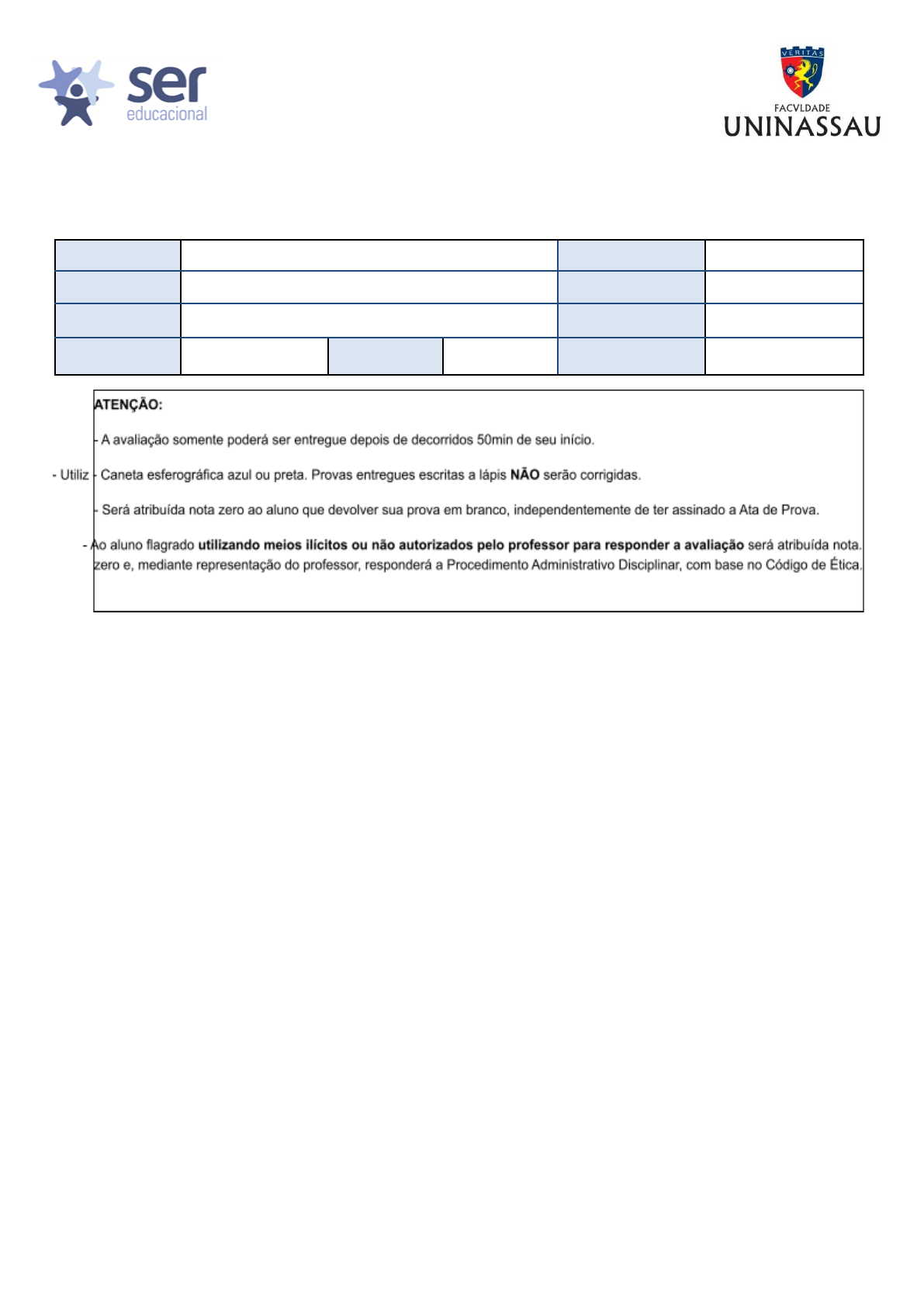 FACULDADE UNINASSAU CURSO DE GRADUAÇÃO EM PEDAGOGIA DISCIPLINA CURRÍCULOS, PROGRAMAS E PROJETOS PEDAGÓGICOS AV1 ALUNO Maria Flavianny Costa Martins MATRÍCULA 01288546 DISCIPLINA CURRÍCULOS DATA DA PROVA PROFESSOR PROF. MS. PAULO SÁ TIPO DE PROVA AV1 TURMA Parangaba CÓDIGO DA TURMA NOTA ATENÇÃO! PARA RESPONDER AS PRÓXIMAS QUESTÕES LEVAR EM CONSIDERAÇÃO: AS DISCUSSÕES EM SALA, CONTEXTO HISTÓRICO, TEÓRICOS, CARACTERÍSTICAS, APLICAÇÃO E INTERESSES, ALÉM DOS PENSAMENTOS CONSIDERADOS IMPORTANTES PELO AVALIANDO. 1. Construa uma análise acerca do currículo tradicional levando em consideração o seguinte ponto: Este modelo de currículo nos deixa algo importante ou deveria ser totalmente abolido? Esse sistema educacional tradicional que buscar a padronização, inspirada no método do Taylorismo, que focava na especialização dos trabalhadores e na função da gerência, refletindo em um ensino centrado na figura do professor, que transmitia conhecimentos específicos aos alunos, estes que era apenas como meros repetidores dos assuntos apresentados. Apesar da falta de interação entre o aluno e professor, a prática não deve ser abolida totalmente, e sim, melhorada. Pois, em escolas técnicas esse ensino aperfeiçoar as funções de cada um para evitar lentidão na produção e esforço físico desnecessário. FACULDADE UNINASSAU CURSO DE GRADUAÇÃO EM PEDAGOGIA DISCIPLINA CURRÍCULOS, PROGRAMAS E PROJETOS PEDAGÓGICOS AV1 2. Construa uma análise acerca do currículo crítico levando em consideração o seguinte ponto: Este modelo de currículo é generalizante e não aborda aspectos importantes sobre a cultura. Surgiu na década de 60, e seu plano teórico era nas concepções marxistas. Com teorias que surgiram de questionamentos sobre a estrutura educacional tradicional. As práticas curriculares, nesse sentido, eram vistas como um espaço de defesa das lutas no campo cultural e social. Apesar de enfatiza a práticas sociais, esse sistema não considera a individualidade de cada aluno e foca apenas na desigualdade social e nas lutas de classes. 3. Construa uma análise acerca do currículo pós-crítico levando em consideração o seguinte ponto: Este seria o modelo ideal e definitivo de currículo, apresentando a sua forma mais completa. Surgindo a partir das décadas de 1970 e 1980, as teorias curriculares pós-críticas também criticava as teorias tradicionais, mas levaram as suas condições para além da questão das classes sociais, indo direto ao foco principal: o sujeito. Dessa forma essa estrutura educacional é a mais ideal pois, por meio da pesquisa, busca considerar os alunos, como sujeitos na sua singularidade e analisar o currículo não somente como a redução do COMO, mas sim o processo de intenções e significados que envolve o processo formador daquilo que somos e daquilo que nos tornamos. Por tudo isso, consideramos o currículo indispensável na educação, nas relações com o outro e na produção social, pois é por meio das lacunas que ficaram estagnadas na sociedade e que fazem refletir quando há a necessidade de mudanças consideráveis, objetivando desenvolver novas perspectivas e novas reflexões sobre a sociedade e sobre a educação. 4 - Leia o texto a seguir: “Por diversos tipos de condicionamentos, os currículos tendem a recolher toda a complexa gama de pretensões educativas para os alunos de um determinado nível e modalidade de educação. Pode ser que o currículo não se esgote em seus conteúdos estritos todos os fins educativos, nem as funções não-manifestas da escola, mas é evidente que existe uma tendência progressiva para assumi-los no caso dos níveis obrigatórios de ensino” (SACRISTAN, G. O currículo: uma reflexão sobre a prática. 3ª ed. Porto Alegre: Artmed, 2000. p. 18) Considerando as informações apresentadas no texto, avalie as afirmações a seguir: FACULDADE UNINASSAU CURSO DE GRADUAÇÃO EM PEDAGOGIA DISCIPLINA CURRÍCULOS, PROGRAMAS E PROJETOS PEDAGÓGICOS AV1 I - O currículo é modelado dentro de um sistema escolar concreto e dirige-se a um grupo determinado de alunos e professores e serve-se de determinados meios e estratégias para cristalizar um contexto e dar-lhe um significado real. II - O currículo é uma visão tecnicista da realidade e dos fenômenos sociais da comunidade escolar. Deve ser elaborado democraticamente por todos os elementos que fazem parte da organização da escola. III - O currículo faz parte de múltiplas práticas de ordem política, administrativa, de supervisão, de produção de meios, de criação intelectual, de avaliação que como subsistemas ora independentes, ora interdependentes incidem sobre a ação pedagógica. É correto o que se afirma em: a) I, apenas. b) I e II, apenas. c) I e III, apenas. d) II e III, apenas.✅ e) I, II e III. 5 - Leia o texto: Há muitos tipos de currículo e sua descrição depende da forma e das concepções sobre o que e como aprender. Um currículo que considera o multiculturalismo se diferencia daqueles que definem o que aprender sob a lógica da teoria tradicional. Dessa forma, um currículo multiculturalista deve considerar: a) apenas os conhecimentos definidos pela legislação em vigor de forma que as diferenças sejam igualadas diante de em conjunto de conhecimentos dos alunos. b) a valorização das diferentes culturas que revelem a relação do conhecimento com a vida prática dos educandos com temas como gênero, raça, etnia, classe social e diferentes culturas. ✅ c) a valorização de novas culturas de modo que os alunos possam optar por aqueles conhecimentos que acham melhores e mais valorizados. d) o ensino daquilo que os alunos querem aprender. Isso significa que quem define o currículo são os alunos de cada classe, promovendo assim a autonomia na aprendizagem. e) Deve criar uma hierarquia em conhecimentos válidos socialmente e secundários. FACULDADE UNINASSAU CURSO DE GRADUAÇÃO EM PEDAGOGIA DISCIPLIN
