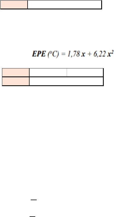UNIVERSIDADE DO VALE DO RIO DOS SINOS – UNISINOS OPERAÇÕES UNITÁRIAS || - CALOR Marla Caroline Quadrado MEMORIAL DE CÁLCULO Questão 1 – Utilizado os dados do Grupo 1 Letra a) Resposta: Para cálculo da EPE (elevação do ponto de ebulição) da solução do evaporador utilizou- se a correlação empírica disponibilizada no corpo do trabalho e a concentração utilizada em substituição a variável da eq.01 foi a fração de sólidos da corrente de produto (xP). eq.01 Letra b) Resposta: Para calcular o calor trocado (Q) entre os fluidos do evaporador primeiramente foi necessário ser realizado o Balanço de Sólidos conforme eq.02, a fim de se obter as vazões mássicas de produto (P) e de vapor (V). 𝐹. 𝑥𝑓 = 𝑃. 𝑥𝑝 + 𝑉. 𝑥𝑣 eq.02 Como a fração de sólidos no vapor é zero pode-se anular o termo, assim se utiliza o valor da vazão da corrente de alimentação (F), a fração de sólidos de entrada e de saída da solução para se calcular “P”. Obtido a vazão mássica das correntes mencionadas, se faz necessário obter o valor das entalpias delas. Para calcular as entalpias da corrente “F” e “P” utilizou-se as seguintes as equações 03 e 04. ℎ𝑓 ( ) = (4,19 − 2,35𝑥𝑓). (𝑇𝑓 − 𝑇𝑟𝑒𝑓) eq.03 ℎ𝑝 ( ) = (4,19 − 2,35𝑥𝑝). (𝑇1 − 𝑇𝑟𝑒𝑓) eq.04 A temperatura utilizada no cálculo da entalpia do produto (T1) foi calculada considerando a elevação do ponto de ebulição somada a temperatura do líquido (ou vapor saturado) na pressão em que o processo de evaporação ocorreu (101,3kPa). Já a temperatura de referência (Tref) dos dois casos foi de 0°C (273K). A entalpia da corrente de vapor foi obtida através da interpolação dos dados obtidos na Tabela A-6 Propriedades de Vapor Sobreaquecido, utilizando a pressão do evaporador de 101,3 kPa (0,1 MPa) e a temperatura de 101°C, que foi a obtida somando-se a temperatura de saturação do vapor a 101,3kPa (100°C) a EPE (1,1°C). EPE= 1,1 °C Q= 1.470,46 kJ/s (ou kW) Q= 1.470.462 J/s (ou W) Obtendo-se as vazões mássicas e entalpias das três correntes F, P e V, foi possível calcular o calor trocado através do balanço de energia, conforme equação 05. 𝑄 = (𝑉. ℎ𝑣 + 𝑃. ℎ𝑝) − 𝐹. ℎ𝑓 eq.05 Letra C) Resposta: Para cálculo da área de transferência de calor foi utilizado a equação 06, isolando-se a variável “A”. eq.06 O coeficiente global de transferência de calor (U) foi dado no enunciado, o calor trocado e T1 calculado na letra B e Ts foi obtido no aplicativo “Steam Table” utilizando a pressão do vapor de aquecimento saturado (S) de 174 kPa como referência. Letra D) Resposta: A taxa de consumo de vapor (S) foi calculada utilizando o cálculo de balanço de energia, conforme equação 07. 𝑺 = 𝑸 𝒉𝒔 𝒉𝒄 eq.06 As entalpias da corrente de vapor de aquecimento (S) e do líquido condensado (C), foram obtidas através do aplicativo “Steam Table” utilizando a pressão de 174kPa apenas alterando o estado físico das correntes: vapor para “S” e líquido para “C”. Letra e) Resposta: A economia de vapor (EV) foi calculado utilizando a equação 07. eq.07 A= 55,31 m2 S= 0,664 kg/s EV= 0,784 EV = 𝑽 𝑺 Questão 2 - Utilizado os dados do Grupo 1 Letra a) Resposta: As duas empresas obterão sucos com a mesma concentração de sólidos, 53,3% (xp=0,533). Para calcular o teor de solúveis do suco final obtido por cada indústria (xp), foi realizando primeiramente o balanço de sólidos do primeiro estágio, conforme equação 08, obtendo a vazão mássica da corrente “F1” F.xf = F1.xf1 + V1.x1 eq.08 Obtendo o valor da corrente “F1” é possível fazer o balanço de massa para se obter a vazão mássica de vapor do primeiro estágio (V1), apenas subtraindo a corrente de entrada “F” pela corrente “F1”, conforme equação 09. V1=F-F1 eq.09 Assim, podemos calcular a corrente mássica da corrente de produto, utilizando o balanço de massa global do sistema, conforme equação 10. 𝑃 = 𝐹 − 𝑉1 − 𝑉2 eq.10 Obtendo a vazão mássica de produto, pode-se realizar novo balanço de sólidos, igualando-se a quantidade de sólidos da corrente de alimentação com a corrente de produto, conforme equação 11, para obter o teor de sólidos dos sucos das indústrias (xp). eq.11 Letra B) Resposta: Indústria 1 e 2 (mesma resposta) 𝒎𝒗𝒕 = 𝟐, 𝟑𝟔𝟏 𝒌𝒈/𝒔̇ Foi calculado somando as duas correntes de vapor geradas pelos dois estágios por cada Indústria, e se obteve a mesma vazão de vapor total para as duas empresas.