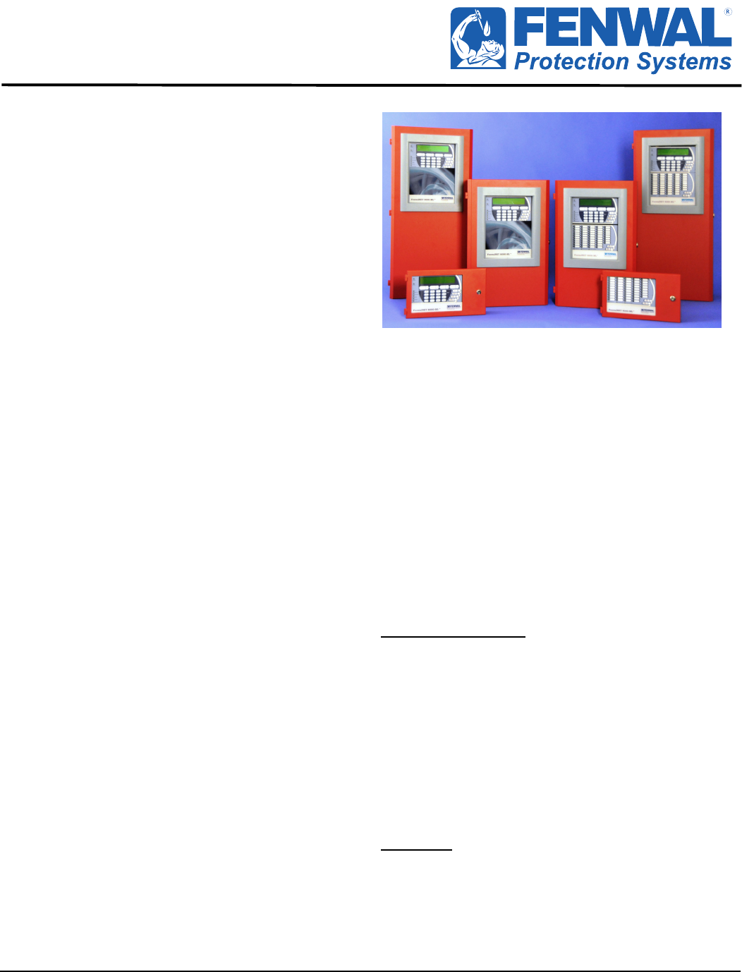 TM Eficaz: outubro 2012 F-74-800 FN-8000-ML ™ Multi-loop Unidade de incêndio Alarm- Supressão Controle Inteligente DESCRIÇÃO - UNIDADE DE CONTROLE O FN-8000-ML é um dos mais tec- camente avançadas unidades de controle de alarme de supressão com foco de incêndio inteligente disponíveis para a indústria hoje. Ele combina a alta qualidade, a confiabilidade do sistema e flexibilidade exigida pelas comercial moderna, de alta tecnologia e ções aplica- industriais em um pacote esteticamente agradável e fisicamente robusto. A sua arquitectura modular permite a expansão campo fácil a partir da base da unidade 2-SLC 510 que suporta dispositivos endereçáveis (255 por circuito) para um sistema de 8-SLC capaz de 2.040 dispositivos endereçáveis. Apesar de seu Pacto com- fit-entre-parede pregos dimensões, a FN-8000-ML é projetado para ser rápido e fácil de instalar. tecnologias de ponta cut-ting incorporadas na concepção electrónica permitir diagnósticos para ing Comissão- tempo-eficiente. Principal Board Controller - MCB principal da placa de circuito impresso do FN de 8000-ml contém a unidade do sistema de processamento central (CPU) e todos os circuitos primários. O MCB é o coração do sistema, controlar a operação e supervisão de todos os módulos do sistema e software. Ele recebe dados do dispositivo de ansa, processa os dados com base em instruções pré-programadas, e transmite comandos de saída para os módulos de saída, dispositivos de campo, e de visualização (s). O MCB é montado no gabinete usando design especial articulada stand-offs que permitem a bordo para balançar à esquerda e permitir o acesso fácil ao conjunto PMU / PSU trás. Interface de usuário O interface do utilizador é constituído por um teclado incorporado e um jogo dis- que proporcionar meios físicos, através da qual um operador e / ou o instalador realiza funções do sistema, entra no senha de segurança, opera teclas programáveis, navega nos menus de sistema, configura e testes todo o sistema FN-8000-ML. CARACTERÍSTICAS • Multi-circuito, a unidade de controlo focada supressão-inteligente • Out-of-the-box recursos - 2 SmartOne SLC com 255 endereços irrestritos cada - 4 x 40 de exibição do teclado- - 2 NAC e 2R-NACs - 3 programável e 1 Incidências Relês Form-C - 2 Saídas de energia - portas USB para PC e impressora - RS-232 para gráficos - 4 moles interruptores programáveis - CA de entrada 120/240 V 50/60 Hz - Unidade 5.4 A Fonte de Alimentação - 2-camada ou de camada 3 NEMA um cerco - ajusta-se entre 16” pregos - RS-485 Anunciador • recursos de controle de supressão confiável e segura Triple R-redundância • sistemas de extinção incluem: - FM-200, FE-13, a 3M Novec 1230 Fire Protection Fluid, Argonite e Halon agentes Limpo - Névoa de água - Serviço de aspersão de Supervisão - Dilúvio, Pré-Acção, espuma, Sistemas de espuma de água • modular expansível - De 3 a 8 SLCs (2.040 endereços) - Módulos funcionais e expansão - Fonte de energia - Networkable até 64 nós com 130,560 endereços em toda a rede • Evento-Output-Control programação • manutenção de alto nível e diagnóstico - detecção de falha de terra ao circuito - capacidade de log 10,000 • Compatível com os investimentos instalada - dispositivos & protocolo SmartOne SLC - Cabeças de comando Fenwal - Fenwal iniciadores - painéis legado FN-2000 via kit de adaptação simples • Perfeitamente integrado HSSD, ASD e LHD • conectividade com a Internet com o recurso de notificação por e-mail • BACnet, IP, compatibilidade Modbus TCP / Modbus RTU • estética agradável • blocos terminais passíveis • Aprovado pela FM para ANSI / UL864 • Listado na UL No. S2422 • cUL No. S2422 • CSFM Aprovado: Não. 7165-1076: 0194 • NYC Corpo de Bombeiros Certificado de Aprovação: No. 6092 • City of Chicago Aceitável para Classe 1 Aplicações Figura 1. Modular design para atender as aplicações mais exigentes Lançamento supressão liberação manual Soltar remoto Módulo ION (CPD-7052) FOTO (PSD-7152) TÉRMICA(THD-7252) SmartOne Circuito de Linha de Sinalização (SLC) -255 dispositivos por circuito (Sem restrições ao tipo de dispositivo) FN-8000-ML Painel de controle DIVULGAÇÃO ENDEREÇÁVEIS MÓDULO Lançamento ERA NT REL FACILIDADE ASM Sopro / estrobos SLCs adicionais Módulo de relé - HVAC - Paradas - Portas e amortecedores - Elevador recall Saídas de relés Indicar remoto Módulos de Controlo (RDCMs), 1-15 LED anunciador Modules (LAMs), 1-16 SmartOne APIC EMPURRAR PUXAR Internet Módulo de comunicações (ICM) BACnet / Modbus DAF LHS SUPPRES SION SISTEMA ABOR T abortar Station AlarmLin e Inteligente AlarmLine KIDDE-FEN WA G, INC. 400 MAIN ST. Um SHLAND, MA 01721 AnaLASER II INTERF ACE MÓDULO PA RT. NÃO. 89-300010-001 FENW ALNET ENDEREÇO TM FM APROVADO EM OUT RXTX RXTX GND Todos os terminais são limitados em potência R Detecção AIR-Intelligence Air Sampling Detecção de fumo AnaLASER II alta sensibilidade gaiola cartão backplane Linha de sinal Circuito (SLC) Cartão de Interface de Rede Cartão Laço City (NIC) Cartão Relé LANÇAMENTO / Notificação Appliance Circuit (R-NAC) Alarme Digital Card Communicator Transmitter (DACT) 1 2 3 4 5 6 1 2 34 56 USB e / ou conexão serial para o portátil e impressoras de interface MODO LAI, N / O INSTRUÇÕES VER INSTALAÇÃO CAT. NÃO. 70-407008-001 S m A R t o m T M ForService SENDTO: KIDDE-FENWAL, INC. 400 main. Ashland, MA01721 DATA DE FABRICAÇÃO: MAX. INSTALAR. TEMP. 120 ° F 06-235578-001 ALL TERMINALSARE Power Limited MODELO AO INSTRUÇÕES VER INSTALAÇÃOGATO. NÃO. 70-408004-001 S m a r t O n e T M PARA SERVIÇO DE ENVIAR PARA: KIDDE-FENWAL, INC. 400 MAIN ST. Ashland, MA 01721 DATA DE FABRICAÇÃO: MAX. INSTALAR. TEMP. 120 ° F 06-235577-001 TERMINAIS 5-7 são limitados em potênciaTERMINAIS 1-4 são limitados em potência MODO LAI, N / O INSTRUÇÕES VER INSTALAÇÃO CAT. NÃO. 70-407008-0