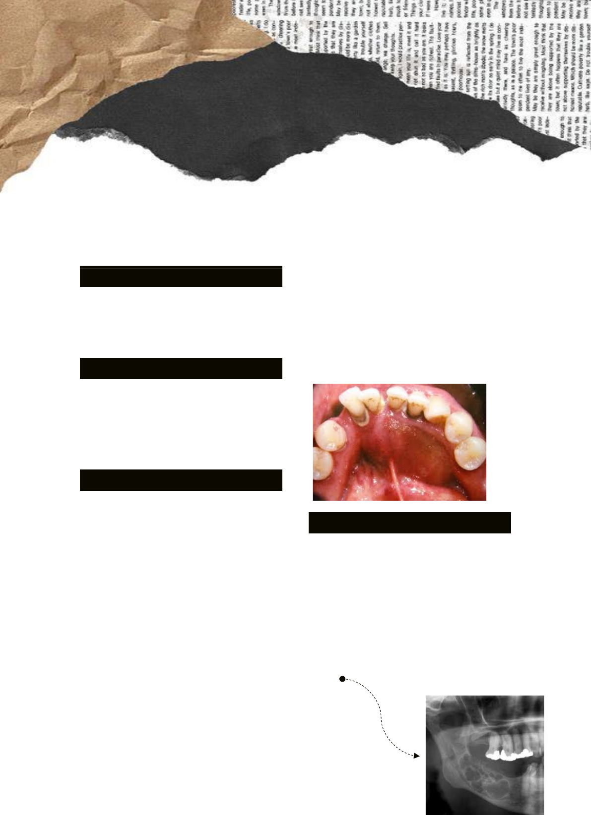 INTRODUÇÃO É um tumor odontogênico de origem epitelial, que surge a partir de lâminas dentárias. São tumores de crescimento lento, localmente invasivos, que apresentam curso benigno. PROGNÓSTICOS: 1. Sólido convencional ou multicistico (86% dos casos) 2. Unicístico (13% dos casos) 3. Periférico ( extraóssea) ( 1% dos casos) EPIDEMIOLOGIA Mais comum • Ampla faixa etária • Raro em crianças: <10 anos Incomum: 10-19 anos • Predileção: acima dos 20 anos de idade Sexo: M> Fou M = F Raça: pardos e negros (alguns estudos) • Prevalência em relação aos demais tipos: 85% Características Clinicas Crescimento Lento Assintomático Diagnóstico: Acidental ou quando há abaulamento das corticais Assimetria Facial Dor ou parestesia: Incomuns Região de acomentimento mais comum: Posterior de mandíbula CARACTERÍSTICAS RADIOGRÁFICAS • Lesão radiolúcida • Multilocular: Pode apresentar Unilocular Margens por vezes festonadas Pode haver expansão de cortical Reabsorção radicular em lâmina de faca Padrões comum: Favos de mel ou bolhas de sabão Ameloblastoma M ar ia E ma nu ella S ale s M ar qu es CARACTERÍSTICAS HISTOPATOLÓGICAS PADRÕES HISTOLÓGICOS: • Padrão folicular Ninhos e ilhas tumorais que lembram o órgão do esmalte Células colunares com polaridade invertida (periferia) Células frouxamente dispostas, reticulo estrelado (centro) • Padrão plexiforme Longos cordões anastomosados - Raras formações cisticas e quando presentes, no estroma - Estroma arranjado frouxamente • Padrão Acantomatoso Metaplasia escamosa Frequente formação de ceratina na região central do padrão folicular Pode confundir com CEC Padrão desmoplásico Pequenas ilhas e cordões de epitélio odontogénico • Estroma densamente colageinizado • Associado a grande expressão de fatores de crescimento TRATAMENTO: Enucleação + osteoctomia - Ressecção em bloco Localmente invasivos - necessita de margem - Recidiva: até 15% AMELOBLASTOMA UNICÍSTICO EPIDEMIOLOGIA Prevalencia 10-46% de todos os ameloblastomas Pacientes jovens: 2 década de vida Crescimento lento e assintomático *Região mais comum posterior de mandibula Diagnostico déferencial cisto dentigero CARACTERISTICAS RADIOGRÁFICAS * Lesão radiolucida, unilocular Bem delimitada • Expansio ou perfuracao de cortical * Deslocamento/ reabsorgao de dentes PADRÕES Padrão Luminal Parede cistica fibrosa Revestida ameloblastico com epitélio Camada basal com celulas colunares / cúbicas com núcleo hipercromático, com polaridade reversa vacuolização citoplasmática basilar Células epiteliais sobrejacentes semelhantes estrelado reticulo Padrão Intraluminal • Projeção de de ameloblastoma em direção ao lúmen cístico nódulos Associado a inflamação Padrão mural Infiltração pode variar extensão e profundidade Padrão mais agressivo TRATAMENTO Excisão cirúrgica simples - Chance de recidiva Enucleação + osteotomia Marsupialização + enucleação e osteotomia AMELOBLASTOMA PERIFÉRICO (EXTRAOSSEO) EPIDEMIOLOGIA • Prevalência: lesão rara Localização: gengiva * Indistinguivel de um granuloma piogênico/ LPCG * Pacientes de meia idade: 5o anos de idade Crescimento lento e assintomático Erosão do osso subjacente Histopatologico: Semelhante ao ameloblastoma sólido folicular ou plexiforme. TRATAMENTO Excisão cirúrgica simples Recidiva 25-20%