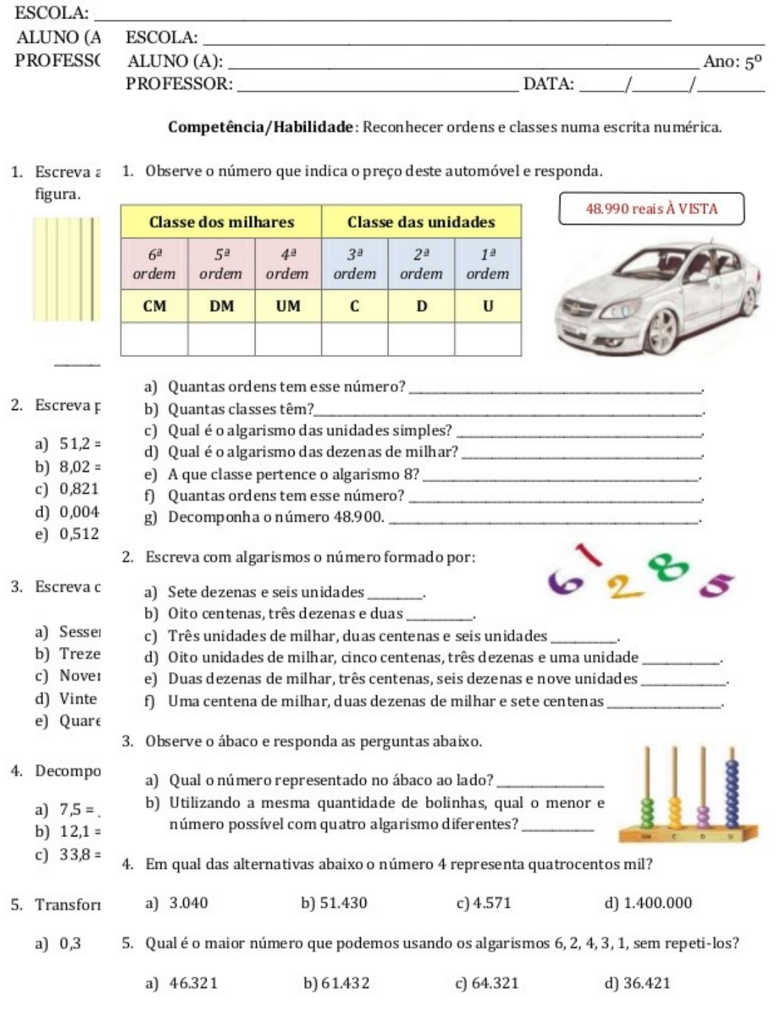 A Realizar uma prova escrita sobre frações e números decimais para avaliar o conhecimento prévio dos alunos. B Organizar uma feira de matemát...