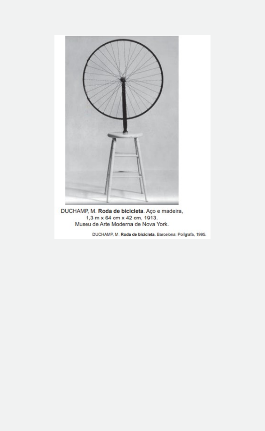 QUESTÃO 32 TEXTO II Ao ser questionado sobre seu processo de criação de ready-mades, Marcei Duchamp afirmou: — Isto dependia do objeto; em geral, era preciso tomar cuidado com o seu look. É muito difícil escolher um objeto porque depois de quinze dias você começa a gostar dele ou a detestá-lo. É preciso chegar a qualquer coisa com uma indiferença tal que você não tenha nenhuma emoção estética. A escolha do ready-made é sempre baseada na indiferença visual e, ao mesmo tempo, numa ausência total de bom ou mau gosto. CABANNE, P Marcel Duchamp: engenheiro do tempo perdido. São Paulo: Perspectiva, 1987 (adaptado). COMPARTILHE Relacionando o texto e a imagem da obra, entende-se que o artista Marcel Duchamp, ao criar os ready-mades, inaugurou um modo de fazer arte que consiste em 1. designar ao artista de vanguarda a tarefa de ser o artífice da arte do século XX. 2. considerar a forma dos objetos como elemento essencial da obra de arte. 3. revitalizar de maneira radical o conceito clássico do belo na arte. 4. criticar os princípios que determinam o que é uma obra de arte. 5. atribuir aos objetos industriais o status de obra de arte. Comentário da questão Marcel Duchamp, uma das maiores figuras vanguardistas da arte, trouxe esta nova interpretação da obra artística por criticar seus processos e suas determinações, característica que contrapõe o molde de arte formal e erudito. Equipe Descomplica A melhor equipe de professores do Brasil ;) Gabarito da questão Opção D