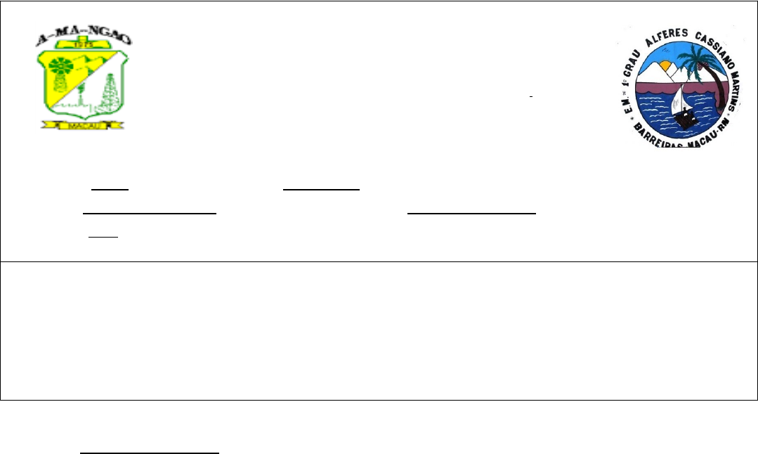 ESTADO DO RIO GRANDE DO NORTE PREFEITURA DE MACAU SECRETARIA MUNICIPAL DE EDUCAÇÃO E CULTURA ESCOLA MUN. DE 1º GRAU ALFERES CASSIANO MARTINS RUA SÃO SEBASTIÃO/SN, BARREIRAS/ MACAU RN ATIVIDADES ELABORADAS PARA AULAS NÃO PRESENCIAIS Aluno: _____________________________________________ Ano/Série: ____ Turma:______Turno: Vespertino Data: 17.06.21 Professor: Sybelle Evangelista Componente Curricular: Língua Portuguesa Atividade n: 10. Orientações para o uso correto das expressões mais usadas na língua Portuguesa. AULA TEMA: Redação. É IMPORTANTE QUE ESTE MATERIAL SEJA IMPRESSO E MONTADO EM FORMA DE CADERNO DE ESTUDOS, PARA FUTUROS ESQUEMAS DE REDAÇÕES. APRENDA QUE... COMO FAZER UMA BOA REDAÇÃO OS PARÁGRAFOS. ESTRUTURA Lista de sinônimos e antônimos. Aplicação em textos A utilização de sinônimos é um ótimo recurso em provas de redação, principalmente do Enem. Na grade de correção do Exame Nacional do Ensino Médio, a competência 5 avalia o domínio de recursos coesivos para a progressão do texto, isso significa que avalia-se tanto a utilização de conectivos estabelecendo uma relação de sequência entre as partes do texto, quanto a referenciação, ou seja, a utilização de palavras que auxiliem a retomada de ideias e evite a repetição de palavras. Coesão referencial A coesão é o fator de textualidade responsável por garantir a progressão textual, tanto em relação à união das partes do texto, por meio de conectivos (coesão sequencial) quanto evitar a repetição de palavras dentro de um texto (coesão referencial). · Agora, observe o parágrafo abaixo: “Em primeiro lugar, cabe destacar a precariedade das prisões brasileiras. De acordo com uma pesquisa, alguns problemas crônicos nas prisões são a superlotação e a saúde precária. Além de possuir a quarta maior população carcerária do mundo e não haver perspectiva de melhora nas prisões devido às celas sobrecarregadas, há, consequentemente, maior proliferação de doenças devido ao ambiente insalubre ao qual estão expostos por causa das celas sujas e da falta de recursos mínimos de higiene nas prisões”. Note que o fragmento possui diversas repetições da palavra “prisões” e poderia ser substituída por sinônimos, por exemplo: “estabelecimento prisionais”, “celas”, “cadeias”, “cárcere”, etc. Pratique esse exercício de sinonímia nas suas redações sempre! O uso dos Homônimos e Parônimos nas redações. REFERÊNCIAS: Educa Mais Brasil.com.br O blog de redação. Blogspot.com.br SOS estudante Assessoria Acadêmica e Escolar: Homônimos e Parônimos. Slidsahred.net