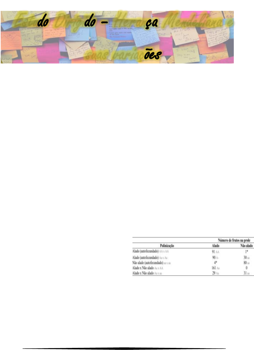 Sabrina B 1 Ao final da lista encontra-se a chave de resposta. Bons Estudos!!! 1. Relacione todos diferentes gametas que podem ser produzidos pelos seguintes indivíduos: a. AABBCc; b. aaBbCc; c. AABbCcddEeFf; d. AABBCCDDEEFFGGHHIi; 2. A relação entre cromátides recombinadas e não recombinadas é de, no máximo 50%. Quantas cromátides deverão mostrar recombinação para que a relação chegue a 25% numa célula onde o número somático 2n = 24? 3. Um indivíduo é heterozigoto para os 4 pares de genes A, B, C e D. Os alelos A e B estão no mesmo par de cromossomos homólogos, enquanto que C e D estão juntos no outro par de homólogos. a. Preveja quais os tipos de gametas que esse indivíduo produz considerando uma permuta entre A e B somente. b. Quantos tipos de gametas diferentes ocorrerão se em ambos os cromossomos houver permuta? 4. Em cevada a presença e ausência de aristas nos grãos são dependentes de um gene K. K que determina a ausência é dominante sobre seu homólogo k que determina a presença das aristas. Variedades homozigotas com e sem aristas foram cruzadas entre si. a. Qual o fenótipo das plantas em F1 e a frequência fenotípica em F2? b. Como se poderão determinar as constituições genéticas das plantas em F2? 5. Baseado nos dados da tabela abaixo, diga que tipo de interação está ocorrendo na forma do fruto de Plectritis congesta e defina os genótipos de cada geração. 6. Uma geneticista de plantas tem duas linhagens puras de feijão. Uma com pétalas roxas e outra com pétalas brancas. Ela supõe que a diferença da cor é devido a apenas um gene. Para testar essa ideia ela procura por uma proporção de 3:1 em F2. Ela cruza as linhagens e Estudo Dirigido – Herança Mendeliana e suas variações Sabrina B 2 descobre que toda a prole F1 é roxa. As plantas de F1 são autofecundadas e a F2 é obtida. O cruzamento- teste realizado resultou em 320 roxas e 80 brancas. Com esses resultados é possível se comprovar a proposta da pesquisadora? Caso seja sim ou caso seja não, demonstre o que pode ter acontecido. 7. Foram realizados cruzamentos entre linhagens homozigotas derivadas de cruzamentos entre as espécies Lycopersicon esculentum x L. peruvianum para estabelecer a herança para resistência à marcha bacteriana em tomates (TSVW) e encontraram em F2 551 plantas resistentes e 163 suscetíveis. O retrocruzamento com o pai suscetível apresentou a proporção de 194:222 (resistente: suscetível) e com o pai resistente apenas 353 plantas todas resistentes. Usando o símbolo criado pelo autor, Sw5 para resistência a doença, determine o tipo de herança, diagrame os cruzamentos a partir da geração paternal e teste os valores observados pelo teste do qui- quadrado. 8. A cor do tegumento dos grãos de lentilha (Lens culinares) é marrom e verde e a forma do grão é lisa e rugosa. A situação abaixo demonstra a segregação de F2 para a cor do tegumento e do retrocruzamento realizado. Baseado nesses dados elabore hipóteses de trabalho para ambos os cruzamentos e determine o intervalo da probabilidade (P) usando o teste do qui- quadrado para testar as hipóteses. 9. Plantas de milho resistentes a Helmintosporium turcicum possuem o alelo Ht do gene para resistência. Da mesma forma o gene Rt determina a resistência a Puccinia sorghi e genótipo agag condiciona plantas resistentes ao ataque de gafanhotos. Se plantas resistentes a todas as características são cruzadas com plantas suscetíveis qual a probabilidade de, em F2, aparecer plantas suscetíveis a Helmintosporium turcicum resistentes aos demais fatores estudados? E qual a probabilidade de aparecerem plantas somente suscetíveis ao ataque de gafanhotos? 10. A série alélica V participa da formação da cor das vagens, junto com os alelos A, aa, a. O gene V junto com aa e junto com a produz vagens estriadas e rosa normal, respectivamente; com A produz vagens amarelas, que também é determinada por, vlae e v juntos com aa e a, porém Vlae -A- e vvA- produz vagens vermelhas. Partindo desses dados determine a cor das vagens, em F2 do seguinte cruzamento: VV aaaa x VlaeVlae AA, sendo V dominante sobre Vlae que é dominante sobre v e A dominante sobre aa que é dominante sobre a. 11. O pólen de plantas de tomates virescentes (amarelecentos devido à deficiência de clorofila) foi utilizado para fecundar uma planta normal verde (com produção normal de clorofila). Todos os híbridos se apresentaram de cor verde normal. Ao cruzar um desses híbridos com uma planta de cor virescente se Sabrina B 3 obteve uma progênie formada por 112 plantas verdes e 72 plantas virescentes. Que conclusão se pode obter com tal resultado sobre o tipo de interação que está ocorrendo nesse caso? 12. Em populações de feijão (Phaseolus vulgaris) dois genes aparecem para determinar a cor do tegumento das sementes. No retrocruzamento foram encontrados os seguintes fenótipos e suas quantidades: 450 – sementes esverdeadas e 150 – sementes azuladas. Baseado nesses dados responda: a. Que tipo de interação está ocorrendo? b. Qual a proporção fenotípica esperada para essa interação? 13. Os genes du (dull) e su (sugary) condicionam aumento de 35 e 40% de amilose, em grãos de milho, respectivamente. A combinação Su du produz até 60% de amilose, porém quando o su está em homozigose há uma redução na taxa de amido. Os genes alelos produzem 100% de amilose. Partindo do cruzamento de plantas SuSu dudu com susu DuDu. a. Qual será a proporção em F2 quanto à produção de amido? b. Que tipo de interação está ocorrendo entre os genes? c. E qual o resultado do retrocruzamento? 14. Dois genes diferentes atuam na absorção e na utilização de ferro (Fe) em plantas de milho. O gene ys1 reduz a absorção de ferro nas pontas das raízes, enquanto que o gene ys3 permite a absorção, mas acumula-o nas células das raízes. Plantas com genótipo ys1ys1 que tiveram suas folhas pulverizadas com solução de f
