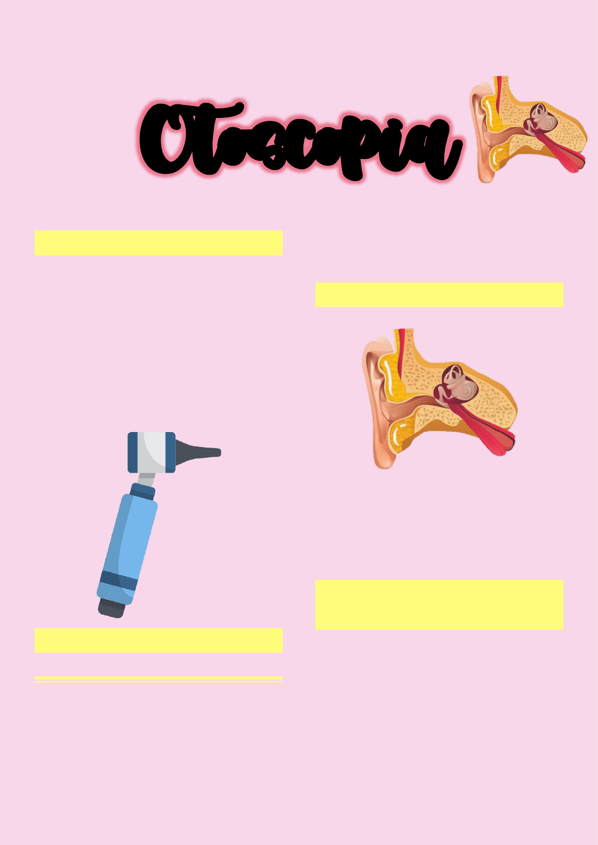 PAULA LARISSA LOYOLA SOUZA BLOCO NASCIMENTO, DESENVOLVIMENTO E CRESCIMENTO TH 3 Conceito: Visualização da membrana timpânica com a utilização de um espéculo acoplado a uma fonte luminosa, com ou sem ajuda de lentes de aumento/vídeo o Cone de plástico/espéculo Principal método clínico de avaliação do ouvido médio para detecção de patologias inflamatórias, infecciosas etc. do complexo ouvido-garganta Geralmente realizado com auxílio do otoscópio O exame: Devemos realizar: A inspensão visual Palpação do pavilhão auricular e da região pré e retroauricular Por fim, a otoscopia propriamente dita A empatia com o paciente e um ambiente tranquilo colaboram para a realização do exame. Além disso, é claro, vale escolher um momento em que o paciente esteja mais calmo. Anatomia do pavilhão auditivo: Pavilhão auditivo → conduto auditivo externo → parte densa (marca da orelha externa e média) Tuba de ostaque → comunicação com a nasofaringe Passo a passo para realização da otoscopia: Posicionar adequadamente o crânio. Posição correta deve permitir que a origem da hélice permaneça na mesma linha que o canto do olho. Inspecionar a orelha externa e descrever a aparência e a cor da pele, a presença de nódulos ou malformações; Tracione a orelha para cima e para trás buscando corrigir a curvatura do canal auditivo, no caso de um adulto. Em Otoscopia PAULA LARISSA LOYOLA SOUZA BLOCO NASCIMENTO, DESENVOLVIMENTO E CRESCIMENTO TH 3 crianças pode ser necessário tracionar para baixo e para trás. Deve-se segurar o otoscópio com a mão do mesmo lado em que o exame será realizado. Ao examinar o ouvido direito deve-se segurar o ostocópio com a mão direita e realizar a tração do pavilhão auricular com a mão esquerda. O oposto deve ser realizado quando se proceder ao exame do ouvido esquerdo. Escolher o cone plástico mais adequado para a otoscopia, que deve estar adequadamente higienizado (quando não descartável). Deve-se escolher o cone de acordo com o tamanho do meato auditivo e adaptá-lo ao otoscópio. Segure-se o otoscópio próximo ao engale entre o cabo e a porção emissora de luz. Deve-se segura o equipamento de forma semelhante a uma caneta, com o equipamento repousando entre o polegar, indicador e dedo médio, e com o dorso da mão voltada para a face do paciente. Desta forma, é possível encostar o dorso da mão no rosto do paciente de forma a garantir maior segurança Examine o conduto auditivo e determine se há eritema, áreas de estreitamento, corpos estranhos, otorragia, saída de líquido cefalorraquidiano ou secreção purulenta Introduza um pouco mais o otoscópio, mantendo a tração do pavilhão auricular e visualize as estruturas relacionadas ao tímpano. Estruturas: Membrana timpânica normal é fina e semitransparente o Quando vista pelo ostoscopio, parece cinza Apagamento do triangulo luminoso Conteúdo com bolhas Serosa-secretora