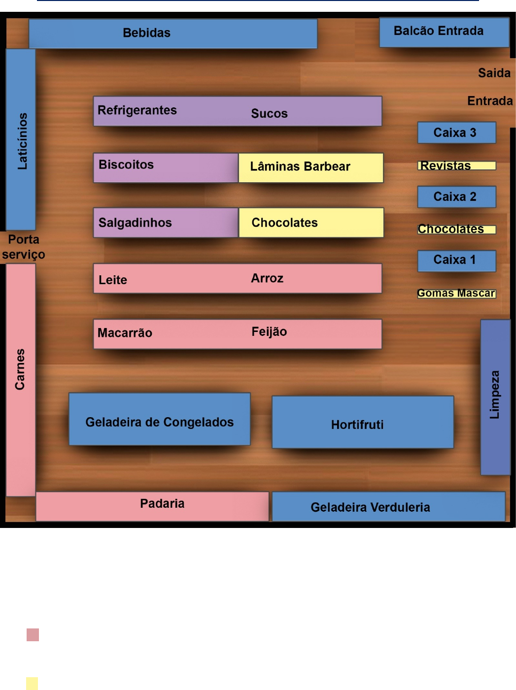 PLANTA BAIXA DO SUPERMERCADO COM SUAS PRATILEIRAS: O merchandising utiliza várias ferramentas estratégicas, sendo assim o desenho da planta baixa do supermercado, também a disposição dos produtos dentro do mesmo. Um bom desenho é importante para assim o cliente acaba comprando os produtos básicos e os supérfluos por impulso. Como podemos observar no desenho a distribuição dentro do plano do supermercado: Os produtos do tópico 1 se encontram no fundo do supermercado para que o cliente que entrar tenha que percorrer todo o supermercado para chegar até eles, já que esses produtos são os que se consomem diariamente. Os produtos do tópico 2 se encontram na frente, geralmente perto dos caixas porque são produtos que são comprados por impulso, já que eles investem mais no design e apresentação do produto para obter sua venda. Os produtos do tópico 3 se encontram no meio do supermercado, são produtos que acompanham os produtos básicos (tópico 1), assim sua ordem tem que estar de uma maneira que chame a atenção do cliente, os produtos são organizados na prateleira de uma forma em que os clientes os clientes os achem mais fáceis. Também se tem muito em conta o design desses produtos e a ordem que devem levar nas prateleiras. Essas estratégias de merchandising são usadas para elaborar uma boa estratégia de marketing e assim poder ter vendas favoráveis nas empresas.