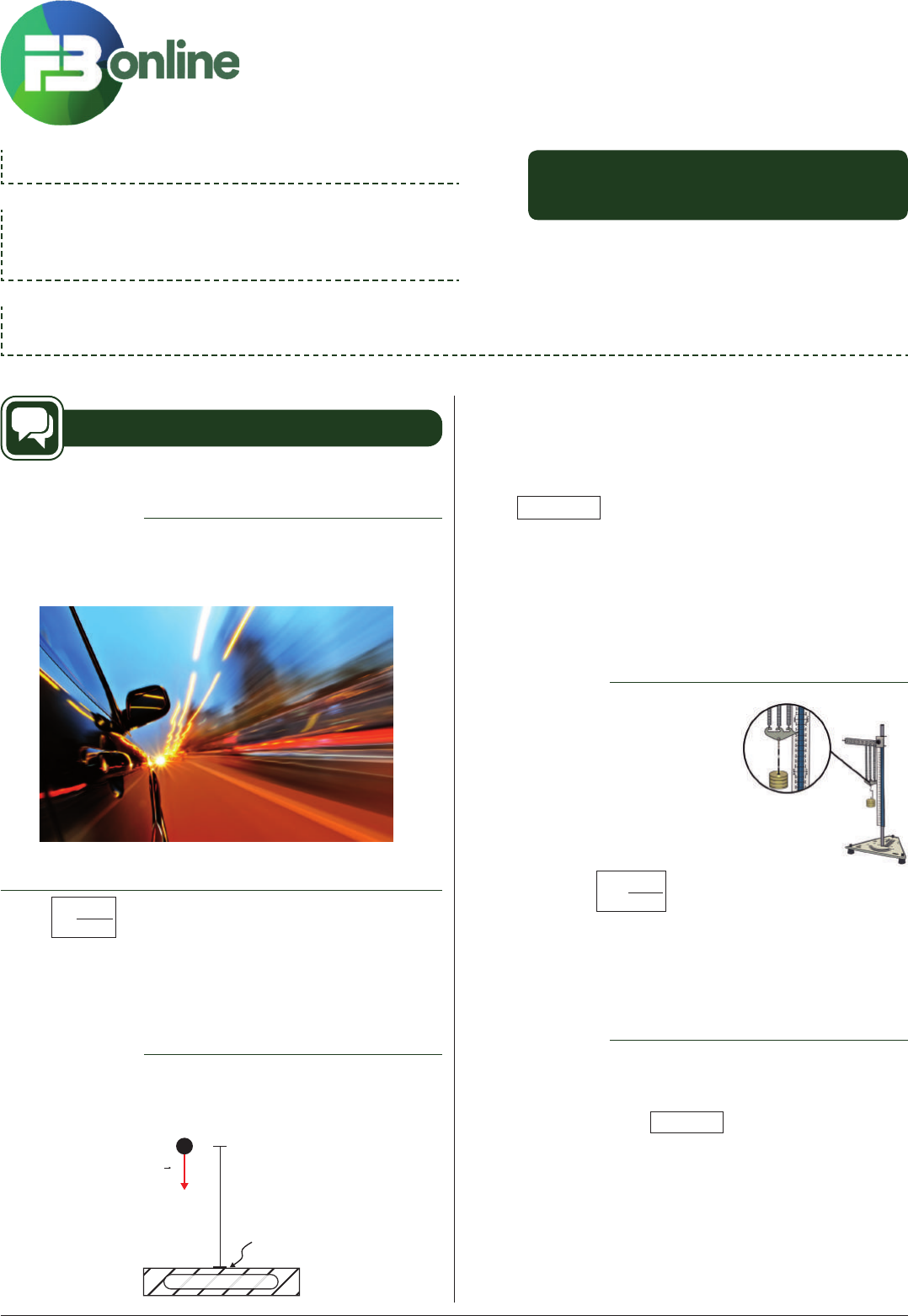 CIÊNCIAS DA NATUREZA E SUAS TECNOLOGIAS F B O N L I N E . C O M . B R ////////////////// Professor(a): Paulo lemos assunto: energia frente: Física i OSG.: 120318/17 AULA 20 EAD – MEDICINA Resumo Teórico Energia cinética (Ec) A energia cinética, representada na figura abaixo, é a energia que está relacionada com o estado de movimento de um corpo. Este tipo de energia é uma grandeza escalar que depende da massa e do módulo da velocidade do corpo em questão. hx dy l/1 23 RF /E as yp ix Módulo da energia cinética E m v 2c 2 = ⋅ Em que: m → massa do corpo; v → velocidade escalar do corpo. Energia potencial gravitacional (Epg) Energia potencial gravitacional, representada na figura a seguir, é definida como a forma de energia armazenada por um sistema, associada à posição relativa a um referencial, havendo uma interação gravitacional entre a Terra e o referido sistema. Nível de Referência Ep = 0 h P A energia potencial gravitacional de um corpo que se encontra a uma altura h do solo pode ser convertida no trabalho da força peso, ou seja: E pg = W peso → E pg = P ⋅ h → E m g hpg= ⋅ ⋅ Em que: E pg → energia potencial gravitacional; m → massa do corpo; g → aceleração da gravidade; h → altura do corpo. Energia potencial elástica (Epe) Energ ia potenc ia l e l á s t i ca , representada na figura ao lado, é a energia armazenada em um sistema elástico, ou seja, sistema que possua elasticidade, tipo mola e elástico. A energia potencial elástica de um sistema elástico pode ser convertida em trabalho da força elástica, ou seja: E pe = W fe → E K X 2pe 2 = ⋅ Em que: K → constante elástica da mola; X → deformação sofrida pela mola. Energia mecânica (Em) Energia mecânica é a capacidade que um sistema tem em produzir trabalho. A energia mecânica total de um sistema é a soma algébrica das energias potencial e cinética do sistema, ou seja: E E EM P C= + Forças dissipativas (não conservativas) Uma força não conservativa é aquela cujo trabalho realizado depende não só da trajetória descrita pelo ponto de aplicação como, também, da velocidade do corpo que se move ou de outras grandezas. Como exemplos mais significativos de forças não conservativas pode referir-se o atrito e a resistência do ar. 2F B O N L I N E . C O M . B R ////////////////// Módulo de estudo OSG.: 120318/17 Forças conservativas Força conservativa é aquela cujo trabalho total realizado depende apenas dos pontos inicial e final e não do caminho percorrido. Os exemplos mais significativos de forças conservativas são a força gravitacional (peso) e a força elástica, força elétrica e força magnética. Sistema conservativo e dissipativo Observem a ilustração abaixo: 10 m B A Ar te F B – A da pt ad o Sistema dissipativo Um sistema é dito dissipativo quando nele atuam forças dissipativas, ou seja, forças que, ao realizarem trabalho, dissipam a energia mecânica do sistema. Analisando o esquiador na figura acima, podemos concluir que: E E EM(A) M(B) dissipada= + Conclusão: Em um sistema dissipativo, a energia mecânica inicial é a soma das energias mecânica final e dissipada. Observação: A E dissipada é sempre igual ao módulo do trabalho realizado pela força de atrito, ou seja: E dissipada = | W fat | Sistema dissipativo Um sistema mecânico é dito conservativo quando nele só atuam forças conservativas, ou seja, forças que, ao realizarem trabalho, mantêm constante a energia mecânica do sistema. Desprezando os atritos e analisando o esquiador figura acima, podemos concluir que: E EM A M B( ) ( )= Conclusão: Em um sistema conservativo, a energia mecânica inicial é igual à final. Exercícios 01. (Mackenzie-SP) Uma bolinha é abandonada do ponto A do trilho liso AB e atinge o solo no ponto C. Supondo que a velocidade da bolinha no ponto B seja horizontal, a altura h vale: A h 4,00 m 3,20 m C B Re pr od uç ão / M ac ke nz ie -S P A) 1,25 m B) 1,75 m C) 2,00 m D) 2,25 m E) 2,50 m 02. (Olimpíada Brasileira de Física) Um bloco de massa m = 0,60 kg, sobre um trilho de atrito desprezível, comprime uma mola de constante elástica k = 2,0 · 10³ N/m, conforme a figura abaixo. m O P h Re pr od uç ão / O BF Considere que a energia potencial gravitacional seja zero na linha tracejada. O bloco, ao ser liberado, passa pelo ponto P (h = 0,60 m), em que 75% de sua energia mecânica é cinética. Adote: g = 10,0 m/s² e despreze o efeito do ar. A compressão x da mola foi de: A) 9,0 cm B) 12,0 cm C) 15,0 cm D) 18,0 cm E) 21,0 cm 03. (PUC-RJ) Um ciclista tentando bater um recorde de velocidade em uma bicicleta desce, a partir do repouso, a distância de 1440 m em uma montanha cuja inclinação é de 30°. Calcule a velocidade atingida pelo ciclista ao chegar à base da montanha. Dados: Não há atrito e g = 10 m/s2. A) 84 m/s B) 120 m/s C) 144 m/s D) 157 m/s E) 169 m/s 04. (UFPE) Uma pequena conta de vidro de massa igual a 10 g desliza sem atrito ao longo de um arame circular de raio R = 1,0 m, como indicado na figura. 60º R g A B Se a conta partiu do repouso na posição A, determine o valor de sua energia cinética ao passar pelo ponto B. O arame está posicionado verticalmente em um local em que |g| = 10 m/s². 3 F B O N L I N E . C O M . B R ////////////////// OSG.: 120318/17 Módulo de estudo 05. (Fatec-SP) A figura representa uma pista no plano vertical, por onde uma partícula desliza sem atrito. Abandonada do repouso no ponto A, a partícula passa por B, tendo nesse ponto aceleração 2 g (igual ao dobro da aceleração gravitacional). Sendo R o raio da circunferência descrita, a altura de A em relação à base é: B R A Base A) 1R B) 2R C) 3R D) 4R E) 5R 06. (UCS/2014) O centro de massa (ponto que se comporta como se toda a massa de um corpo estivesse concentrada nele) de uma pessoa de 80 kg se encontra exatamente na altura do umbigo quando ela está em pé sobre o chão, com a postura ereta. Suponha que a pessoa, para comemorar