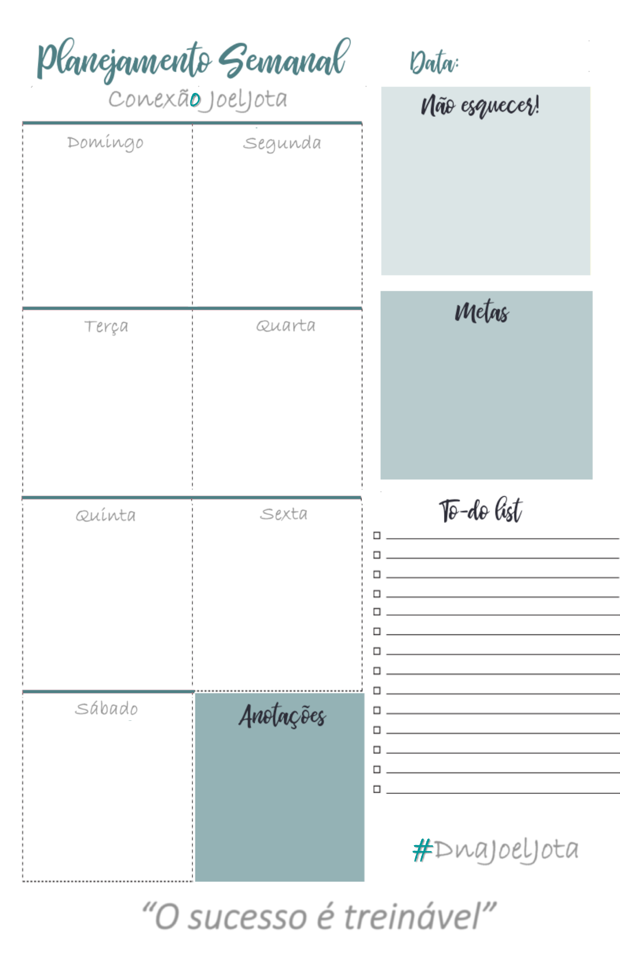 Terça Quarta Quinta Sexta Sábado #DnaJoelJota Conexão JoelJota SegundaDomingo “O sucesso é treinável”