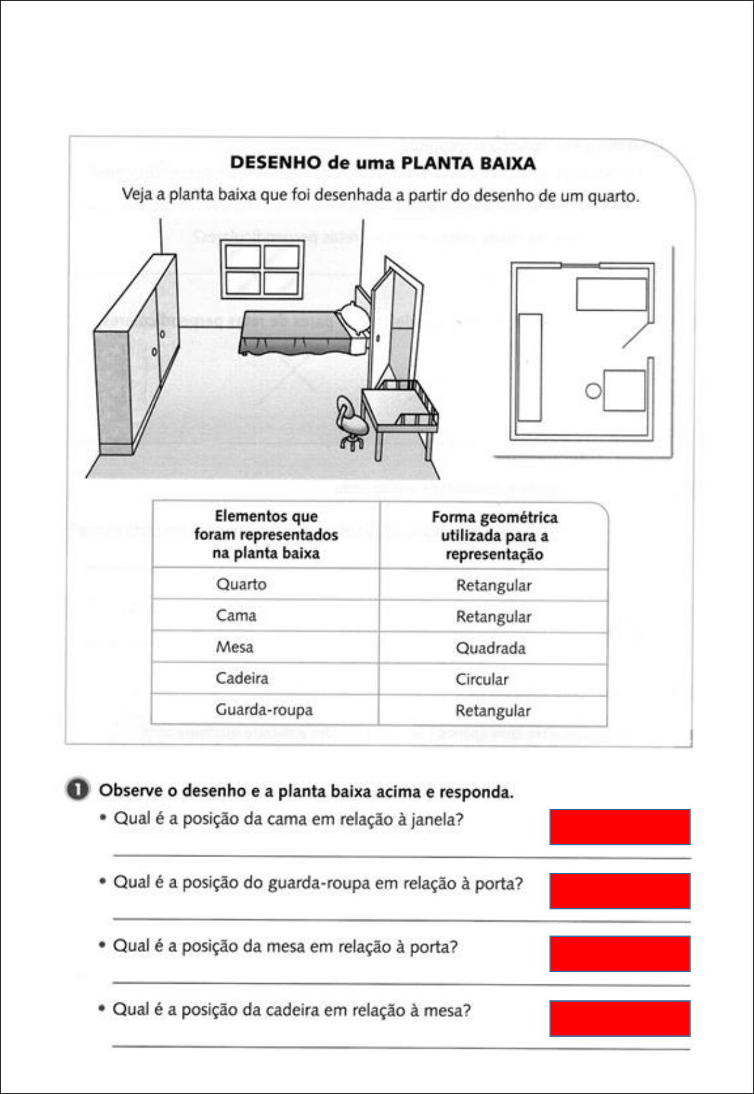 CORREÇÃO ao lado direito de frente do lado direito próximo Não, exatamente. A porta está invertida. RETANGULAR Sim. A porta, na parede da frente à esquerda; a janela, na parede esquerda. F Forma: quadrada,RE34 retangular, circular Forma: quadrada, retangular, circular Posição = localização: no piso, no teto, de frente, à esquerda, à direita (do observador)