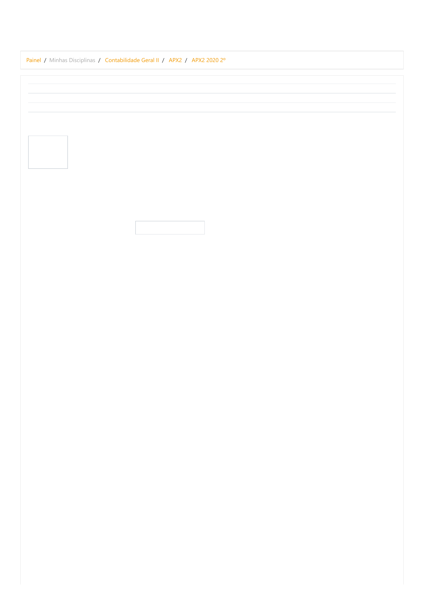 05/12/2020 APX2 2020 2º: Revisão da tentativa https://graduacao.cederj.edu.br/ava/mod/quiz/review.php?attempt=243649&cmid=352870 1/7 Painel / Minhas Disciplinas / Contabilidade Geral II / APX2 / APX2 2020 2º Questão 1 Completo Não avaliada Iniciado em sábado, 5 dez 2020, 09:28 Estado Finalizada Concluída em sábado, 5 dez 2020, 11:15 Tempo empregado 1 hora 47 minutos Assumo o compromisso de confidencialidade e de sigilo escrito, fotográfico e verbal sobre as questões do exame ou avaliação pessoais que me serão apresentadas, durante o curso desta disciplina. Comprometo-me a não revelar, reproduzir, utilizar ou dar conhecimento, em hipótese alguma, a terceiros e a não utilizar tais informações para gerar benefício próprio ou de terceiros. Reitero minha ciência de que não poderei fazer cópia manuscrita, registro fotográfico, filmar ou mesmo gravar os enunciados que me são apresentados. Declaro, ainda, estar ciente de que o não cumprimento de tais normas caracterizará infração ética podendo acarretar punição nas esferas penal, civil e administrativa de acordo com a legislação vigente. Dê seu ciente aqui: ciente https://graduacao.cederj.edu.br/ava/my/ https://graduacao.cederj.edu.br/ava/course/view.php?id=48 https://graduacao.cederj.edu.br/ava/course/view.php?id=48§ion=2 https://graduacao.cederj.edu.br/ava/mod/quiz/view.php?id=352870 05/12/2020 APX2 2020 2º: Revisão da tentativa https://graduacao.cederj.edu.br/ava/mod/quiz/review.php?attempt=243649&cmid=352870 2/7 Questão 2 Completo Vale 1,00 ponto(s). Ao elaborarmos a Demonstração do Resultado do Exercício utilizando as contas abaixo, encontraríamos um Lucro Líquido de .............................. Os espaços vazios referentes aos vários lucros foram somente para facilitar a estrutura da DRE no seu rascunho. Receitas Financeiras (Juros Ativos) 2.000 Prejuízo na alienação de um bem do Ativo Imobilizado 2.000 Participação de Empregados (10%) 2.600 Comissões sobre Vendas 3.000 Vendas Canceladas 5.000 Lucro após IR e CSLL Outras Receitas (Aluguéis Ativos) 10.000 Depreciação 4.000 Lucro antes do IR e CSLL Receita Bruta (Vendas) 99.000 Lucro Líquido ????? Despesas Gerais 8.000 Impostos e Contribuições sobre Vendas 12.000 Lucro Bruto IR e CSLL (20%) 6.000 Receita Líquida 82.000 Participação de Administradores (10%) 2.340 Lucro antes das Receitas e Despesas Financeiras CMV 21.000 Salários 24.000 Escolha uma opção: a. 21.060 b. 19.440 c. 24.000 d. 21.300 05/12/2020 APX2 2020 2º: Revisão da tentativa https://graduacao.cederj.edu.br/ava/mod/quiz/review.php?attempt=243649&cmid=352870 3/7 Questão 3 Completo Vale 1,00 ponto(s). Questão 4 Completo Vale 1,00 ponto(s). Questão 5 Completo Vale 1,00 ponto(s). São dadas as seguintes informações, em R$ , extraídas da escrituração contábil da Cia ABC, que elabora a demonstração dos fluxos de caixa pelo método direto: Saldo da conta Duplicatas a Receber em 31-12-2009 ........... 385.890,00 Saldo da conta Duplicatas a Pagar em 31-12-2010 ............... 388.650,00 Vendas efetuadas pela companhia no exercício de 2010 .... 956.230,00 Compras efetuadas pela companhia no exercício de 2010 .. 487.340,00 Saldo da Conta Duplicatas a Pagar em 31-12-2009 ............ 416.220,00 Saldo da conta Duplicatas a Receber em 31-12-2010 ........ 352.810,00 O valor das compras pagas aos fornecedores no exercício de 2010 foi, em R$ Escolha uma opção: a. 514.910,00 b. 875.990,00 c. 903.560,00 d. 804.870,00 A Demonstração dos Fluxos de Caixa tem por objetivo evidenciar as variações ocorridas entre o início e o final do exercício no Escolha uma opção: a. grupo de outros resultados abrangentes da companhia b. patrimônio líquido da companhia c. disponível da companhia d. ativo circulante da companhia Antes da distribuição dos resultados da Cia Castelo, seu Patrimônio Líquido no encerramento do exercício social de X1, estava assim constituído: Capital Social Ágio na Emissão de Ações Reserva Legal Reserva Estatutária 22.000 300 4.100 2.000 O Lucro Líquido apurado no exercício corrente de X1 foi de 12.000. Assim, o valor a ser destinado à constituição da Reserva Legal no encerramento do exercício social de X1 será igual a: Escolha uma opção: a. 300 b. zero c. 600 d. 400 05/12/2020 APX2 2020 2º: Revisão da tentativa https://graduacao.cederj.edu.br/ava/mod/quiz/review.php?attempt=243649&cmid=352870 4/7 Questão 6 Completo Vale 1,00 ponto(s). Questão 7 Completo Vale 1,00 ponto(s). Foram extraídos os seguintes saldos (em R$) da Demonstração das Mutações do Patrimônio Líquido da Cia Azul Celestial, relativos ao exercício encerrado em 31 de dezembro de 20X5: Patrimônio Líquido em 31/12/2004 702.000 Lucro Líquido do Exercício 200.000 Lucro na venda de Ações em Tesouraria 1.000 Acréscimo da Reserva Legal 10.000 Acréscimo da Reserva Estatutária 25.000 Acréscimo das demais Reservas de Lucro 105.000 Dividendos propostos para 20X6 60.000 Aumento de capital em 20X5 em numerário 150.000 Com base nas informações disponíveis, pode-se concluir que o valor do Patrimônio Líquido da companhia em 31/12/20X5, em R$, foi igual a: Escolha uma opção: a. 993.000,00 b. 985.000,000 c. 983.000,00 d. 999.000,00 A empresa Revendas Comerciais S/A, cujo capital social é constituído de 600 mil ações, apresentou os seguintes dados em relação ao exercício de 2005: Reserva Legal Reservas Estatutárias Participações Estatutárias Provisão para Imposto de Renda Receita Líquida de Vendas Lucro Operacional Bruto Lucro Operacional Líquido Capital Social $ 30.000 $ 45.000 $ 18.000 $ 40.000 $ 225.000 $ 145.000 $ 130.000 $ 800.000 No caso ora apresentado, baseado apenas nas informações fornecidas acima, podemos dizer que o lucro por ação do capital social a ser indicado na última linha da DRE foi da ordem de: Escolha uma opção: a. $ 0,15 por ação b. $ 0,11 por ação c. $ 0,12 por ação d. $ 0,09 por ação 05/12/2020 APX2 