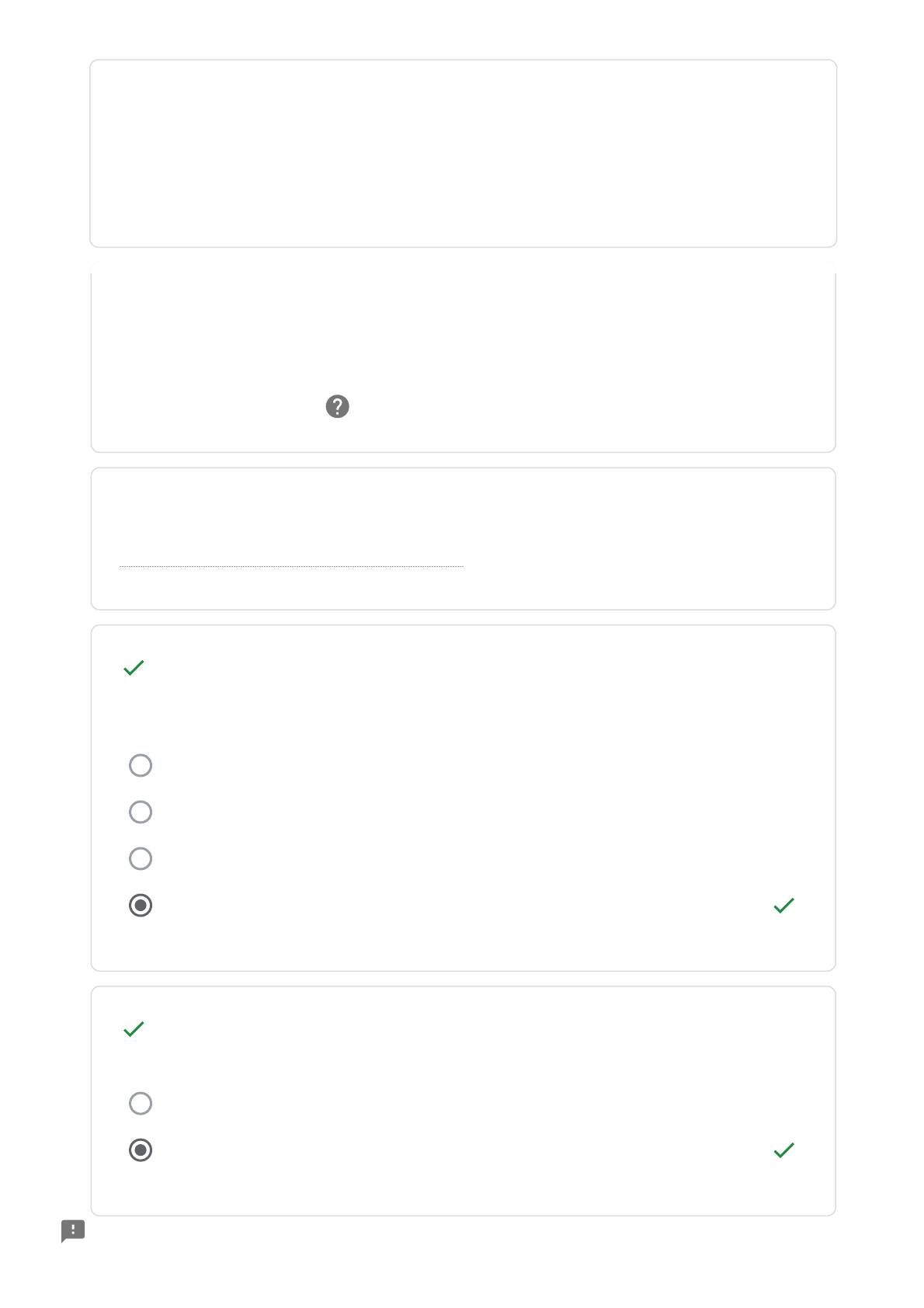 05/07/2021 Capacitação e Certificação: HCIA 5G - Huawei https://docs.google.com/forms/d/e/1FAIpQLSecgAfXAufDnwlhRXfuRYifQWc1UkdWFFQkZ2cAubzJcSeHhw/viewscore?viewscore=AE0zAgCGs… 1/46 Jorge luís de Freitas Marques 1/1 Easy deployment and management Mobile Low cost Efficient storage 1/1 True False Capacitação e Ce�i�cação: HCIA 5G - Huawei Total de pontos 132/136 Nome Completo * Which of the following is not advantage of a thin client in the cloud X service? * 3GPP release 16 describes only the URLLC and mMTC scenarios. 05/07/2021 Capacitação e Certificação: HCIA 5G - Huawei https://docs.google.com/forms/d/e/1FAIpQLSecgAfXAufDnwlhRXfuRYifQWc1UkdWFFQkZ2cAubzJcSeHhw/viewscore?viewscore=AE0zAgCGs… 2/46 1/1 SMART grid AUTOMATED DRIVING IoT Drone 1/1 massive connections high reliability low delay large bandwidth 1/1 330 KV 220 KV 800 KV . 35 KV Which of the following 5G service application does unmanned aerial vehicle (UAV) refer to? In an industrial internet, sensors are used to monitor the status. which one of the following isthe network requirement case? which of the following is the minimum value of ultra -high voltage (UHV) of a power system? 05/07/2021 Capacitação e Certificação: HCIA 5G - Huawei https://docs.google.com/forms/d/e/1FAIpQLSecgAfXAufDnwlhRXfuRYifQWc1UkdWFFQkZ2cAubzJcSeHhw/viewscore?viewscore=AE0zAgCGs… 3/46 1/1 Multiplexing gain Single-channel array gain 3d beamforming gain Diversity gain 1/1 SCa. 240p 1080p 480p 720p 1/1 High software price Piracy No anywhere anytime access Low hardware investment Which of the following is the main advantage of the using massive MIMO over traditional MIMO? Which of the following TV definitions is equivalent to the definition of the pre -VR full view 4K 2D content? Which of the following are pain points relating to PC gaming experience? 05/07/2021 Capacitação e Certificação: HCIA 5G - Huawei https://docs.google.com/forms/d/e/1FAIpQLSecgAfXAufDnwlhRXfuRYifQWc1UkdWFFQkZ2cAubzJcSeHhw/viewscore?viewscore=AE0zAgCGs… 4/46 1/1 tik tok face time 1080 video 8k VR 1/1 to the centimeter to the meter to the submitter . to the millimeter 1/1 Automated driving Intelligent meter reading Intelligent parking AR/VR Which of the following is true 100 Mbps eMBB service? Which one of the following levels of precision are possible with the 3G+RTK function? Which one of the following services belongs to URLLS application scenario? 05/07/2021 Capacitação e Certificação: HCIA 5G - Huawei https://docs.google.com/forms/d/e/1FAIpQLSecgAfXAufDnwlhRXfuRYifQWc1UkdWFFQkZ2cAubzJcSeHhw/viewscore?viewscore=AE0zAgCGs… 5/46 1/1 Bearer-bases data splitting Data splitting on the gNodeB side Direct data splitting by the EPC Data splitting on the eNodeB side 1/1 vehicle-mounted mobile module mobile handheld terminal mobile MIFI hotspot device home CPE gateway 1/1 Inventory network devices Return on Investment Terminals Technology maturity Which of the following statements is correct about data splitting with Option 3x? Which of the following are commercial products in the 5G terminal industry? which of the fololowing are the key factory for operators to select nsa or sa networking? 05/07/2021 Capacitação e Certificação: HCIA 5G - Huawei https://docs.google.com/forms/d/e/1FAIpQLSecgAfXAufDnwlhRXfuRYifQWc1UkdWFFQkZ2cAubzJcSeHhw/viewscore?viewscore=AE0zAgCGs… 6/46 1/1 IoV smart grid Drone IoT 1/1 Massive MIMO uses Large-scale antenna arrays Massive MIMO improves capacity of a single call Only horizontal beamforming is available Legacy wide beams are replaced with narrow beams by adjusting then beam weight. 1/1 Shortening the resource allocation interval Dynamic uplink and down link resources allocation F-FDMA D2D communication Which one of the following 5G service application does the V2X apply to? Which of the following massive MIMO statements are correct? Which of the following technical solutions reduce the 5G delay? 05/07/2021 Capacitação e Certificação: HCIA 5G - Huawei https://docs.google.com/forms/d/e/1FAIpQLSecgAfXAufDnwlhRXfuRYifQWc1UkdWFFQkZ2cAubzJcSeHhw/viewscore?viewscore=AE0zAgCGs… 7/46 1/1 public network GPRS with low rate and long delay unable to provision telecontrol, tele indication and telemetering, slow fault locating high cost for monitoring service carried by operator 4G network low security and reliability of electric power services carried on public network incapable of collecting electric consumption information, costly manual meter reading 1/1 400 MHz 8.50 MHz 200 MHz 100 MHz 1/1 industrial manufacturing Gaming Video Which of the following are points of electronic power telecommunication? Which of the following is the maximum bandwidth of 5G mmWave defined by 3GPP release 15 ? which of the following are service seniors where VR is predominately used? 05/07/2021 Capacitação e Certificação: HCIA 5G - Huawei https://docs.google.com/forms/d/e/1FAIpQLSecgAfXAufDnwlhRXfuRYifQWc1UkdWFFQkZ2cAubzJcSeHhw/viewscore?viewscore=AE0zAgCGs… 8/46 Education 1/1 higher efficiency than manual operations 30% less medicine is used, saving water and protecting the environment. precise operation high security due to man-machine separation 1/1 Phase 2.2 Phase 1.1 Phase 2.1 Phase 1.2 1/1 1/50 1/10 1/100 1/20 Compared with traditional plat preservation which of the following advantages does dronebased plant preservation have? During 5G standardization, which of the following is the SA (standalone) architecturedeveloped in? In the IMT2020 vision, which of the following is correct ratio of 5G service delay to the 4G service delay? 05/07/2021 Capacitação e Certificação: HCIA 5G - Huawei https://docs.google.com/forms/d/e/1FAIpQLSecgAfXAufDnwlhRXfuRYifQWc1UkdWFFQkZ2cAubzJcSeHhw/viewscore?viewscore=AE0zAgCGs… 9/46 1/1 Fully Automated parking Lase change assistance Automated driving urban areas Automatic driving in lanes 1/1 Explosive increase of connected devices Ultra-Low latency for communication between vehicles Fast handover o
