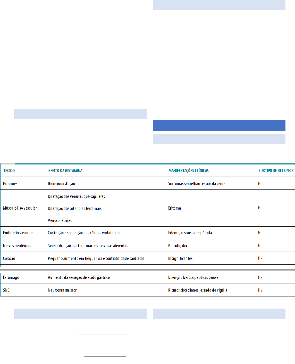 ANTI-HISTAMÍNICOS RESUMO FARMACOLOGIA – MARYELLE BARROS – UFAL -TURMA 82. Fármacos Anti- Histamínicos A histamina é importante mediador dos processos alérgicos e inflamatórios. Também desempenha funções significativas em regulação da secreção de ácido gástrico, neurotransmissão e imunomodulação. AÇÕES DA HISTAMINA • No músculo liso: dilatação das arteríolas terminais e vênulas pós-capilares. Constrição das veias. • No sistema respiratório: broncoconstrição. • Nas terminações nervosas sensoriais periféricas: prurido (picada de inseto) resultam da ação despolarizante direta da histamina sobre as terminações nervosas aferentes. RECEPTORES DA HISTAMINA • H1: Promove o aumento do IP3, DAG, Ca++ intracelular, ativação do FNkB. Está no músculo liso, endotélio vascular e cérebro. Medeiam reações inflamatórias e alérgicas. • H2: Aumento do AMPc. Está nas células parietais gástricas, músculo cardíaco, mastócitos e cérebro. • H3: Diminui o AMPc. Está no SNC e alguns nervos periféricos. • H4: Diminuição do AMPc, aumento do Ca++ intracelular. Está nas células hematopoiéticas e mucosa gástrica. CLASSES E AGENTES FARMACOLÓGICOS • Mecanismo de ação 1: estabilização da conformação inativa do receptor H1 para diminuir os eventos de sinalização que levariam à resposta inflamatória. Isso para os agonistas inversos ou antagonistas competitivos. • Mecanismo de ação 2: Para os que impedem a extrusão de grânulos dos mastócitos induzidos pela ligação de um antígeno ao complexo IgE/receptor Fc nas células. Ex.: cromoglicato e nedocromila (asma). Eles interrompem a corrente de cloreto através das membranas das mastócitos. • Mecanismo de ação 3: tem como estratégia administrar um fármaco capaz de neutralizar funcionalmente os efeitos da histamina. Ex.: epinefrina no tratamento da anafilaxia. ANTI-HISTAMÍNICOS H1 MECANISMO DE AÇÃO • São agonistas inversos mais do que antagonistas. • Se ligam preferencialmente à conformação inativa do receptor H1 e desviam o equilíbrio para o estado inativo. CLASSIFICAÇÃO • Os de primeira geração: o Divididos em 6 subgrupos com base em suas cadeias laterais: etanolaminas, etilenodiaminas, alquilaminas, piperazinas, fenotiazinas e piperidinas. o Clorfeniramina, difenidramina, hidroxizina e prometazina são os mais usados. Os de segunda geração: o Divididos estruturalmente em 4 subclasses: alquilaminas, piperazinas, ftalazinonas e piperidinas. ANTI-HISTAMÍNICOS RESUMO FARMACOLOGIA – MARYELLE BARROS – UFAL -TURMA 82. o Amplamente utilizados: loratadina, cetirizina e fexofenadina. EFEITOS FARMACOLÓGICOS E USOS CLÍNICOS • Distúrbios alérgicos: o Bloqueiam o aumento da permeabilidade capilar necessário para a formação de edema. o As propriedade anti-inflamatórias são atribuíveis à supressão da via do FNkB e à redução subsequente da transcrição de citocinas pró-inflamatórias, quimiotaxia e expressão de moléculas de adesão. • Prurido generalizado: o Hidroxizina e doxepina. • Náuseas e cinetose: o Ao inibir os sinais histaminérgicos do núcleo vestibular para o centro do vômito no bulbo, os anti-histamínicos H1 como dimenidrinato, difenidramina, meclizina e prometazina mostram-se úteis como agentes antieméticos. • Insônia: o Difenidramina, doxilamina e pirilamina. • Asma e anafilaxia: o Os anti-histamínicos H1 apresentam eficácia limitada na asma brônquica e não devem ser utilizados como monoterapia para a doença. FARMACOCINÉTICA • Bem absorvidos por via oral • Metabolizados pelo fígado (maioria) EFEITOS ADVERSOS • Toxicidade do SNC • Cardiotoxicidade → prolonga o intervalo QT. (terfenadina e astemizol não são mais comercializados) • Efeitos anticolinérgicos: midríase, xeroftalmia, xerostomia, retenção urinária e dificuldade miccional. • Os anti-histamínicos de primeira geração penetram na BHE → ação sedativa • Os de 2ª geração não sofrem rápida difusão através da membrana, tem alta afinidade à albumina e à bomba de efluxo de P-glicoproteína → limita os efeitos sedativos. FÁRMACOS • Dibenzoxepinas tricíclicas (doxepina): o é comercializado como antidepressivo tricíclico. o Antagonista de H1 e de H2. o Pode causar sonolência e efeitos anticolinérgicos. • Etanolaminas o Atividade antimuscarínica e causa sedação o Difenidramina (VI, P e T), dimenidrinato (VO e P) e carbinoxamina (VO) o Ação de até 6 horas. (3-6) • Etilenodiaminas (pirilamina): o Sonolência e efeitos no GI • Alquilaminas (clorfeniramina): o Mais potentes antagonistas de H1 o Menos tendência de causar sonolência • Piperazinas de primeira geração: o Clorciclizina, hidroxizina (alergias cutâneas), ciclizina e meclizina (cinetose). • Piperazinas de segunda geração (cetirizina): o Produz efeitos anticolinérgicos mínimos. o Ação de 12-24 hrs o Administração via oral. • Fenotiazinas (prometazina): o Considerável atividade anticolinérgica o É o fenergan • Piperidinas de primeira geração (ciproeptadina e fenindamina): o Tem propriedades anti-histamínicas e antisserotoninérgicas o Podem aumentar o apetite e dar sonolência. • Piperidinas de segunda geração (terfenadina) o Foram retirados do mercado o Os fármacos da classe são loratadina, desloratadina, ebastina, rupatadina e a fexofenadina. ANTI-HISTAMÍNICOS H2 Agentes que diminuem a secreção ácida. São antagonistas dos receptores H2. Os antagonistas dos receptores H2 inibem reversível e competitivamente a ligação de histamina a receptores H2, resultando em supressão da secreção ácida gástrica. Quatro antagonistas dos receptores H2 estão disponíveis: cimetidina, ranitidina, famotidina e nizatidina. São rapidamente absorvidos pelo intestino delgado. Efeitos adversos mínimos ocasionais diarréia, cefaleia, dor muscular, constipação intestinal e fadiga. Cimetidina atravessa a placenta e é secretad