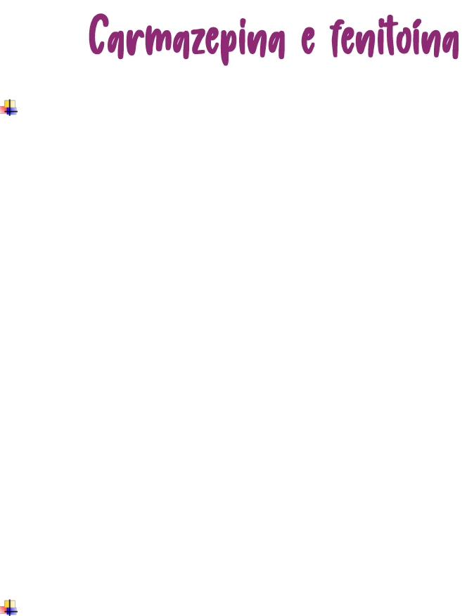 Estrutura da carbamazepina A carbamazepina é quimicamente relacionada com os fármacos antidepressivos tricíclicos e, em um teste de triagem, verificou-se que inibe crises eletricamente provocadas em camundongos. Farmacológica e clinicamente, suas ações assemelham-se às da fenitoína, embora pareça ser particularmente eficaz no tratamento de crises parciais complexas (p. ex., epilepsia psicomotora). Também é usada para tratar outras afecções, tais como dor neuropática e transtorno maníaco-depressivo. Aspectos farmacocinéticos A carbamazepina é bem absorvida, porém de maneira lenta, após a administração oral. Sua meia-vida plasmática é de cerca de 30 horas quando administrada em dose única, mas é forte agente indutor de enzimas hepáticas, e a meia-vida plasmática se abrevia para cerca de 15 horas quando é administrada repetidamente. Alguns de seus metabólitos apresentam propriedades antiepilépticas. Usa-se uma preparação de liberação lenta para pacientes que apresentam efeitos adversos transitórios coincidindo com picos de concentração plasmática após doses orais. Efeitos adversos da carbamazepina Produz vários efeitos adversos que variam de sonolência, tontura e ataxia a alterações mentais e motoras mais graves.Também pode causar retenção hídrica (e, por isso, hiponatremia) e vários efeitos adversos gastrintestinais e cardiovasculares. A incidência e a intensidade desses efeitos são relativamente baixas em comparação com outros fármacos. O tratamento geralmente é iniciado com baixa dose, elevada gradualmente para evitar toxicidade relacionada com a dose. Pode ocorrer depressão intensa da medula óssea, causando neutropenia, e outras formas graves de reação de hipersensibilidade, especialmente em pessoas de origem asiática. A carbamazepina é poderoso indutor de enzimas microssômicas hepáticas e, desse modo, acelera o metabolismo de muitos outros fármacos, tais como fenitoína, contraceptivos orais, varfarina e corticosteroides, bem como dela própria. Ao iniciar o tratamento, aplica-se o oposto da estratégia de “dose de ataque”: doses baixas iniciais são gradualmente aumentadas, uma vez que, quando no início do tratamento, as enzimas metabolizadoras não estão induzidas, e mesmo as doses baixas podem causar efeitos adversos (particularmente ataxia); à medida que ocorre a indução enzimática, são necessárias doses mais elevadas para manter as concentrações plasmáticas terapêuticas. Em geral, não é aconselhável combiná-la com outros fármacos antiepilépticos, e interações com outros fármacos (p. ex., varfarina) metabolizados pelas enzimas do citocromo P450 (CYP) são comuns e clinicamente importantes. A oxcarbazepina é um profármaco metabolizado até um composto que se assemelha muito à carbamazepina, com ações semelhantes, porém menor tendência para induzir enzimas que metabolizam fármacos. Outro fármaco relacionado estruturalmente, a eslicarbazepina, pode apresentar menos efeitos sobre a metabolização de enzimas. FENITOÍNA Estrutura da fenitoína A fenitoína é o membro mais importante do grupo de compostos da hidantoína e é estruturalmente relacionada com os barbitúricos. É altamente eficaz em reduzir a intensidade e a duração de convulsões induzidas eletricamente em camundongos, embora seja ineficaz em convulsões induzidas por PTZ. Devido aos seus muitos efeitos acessórios e a um comportamento farmacocinético imprevisível, o uso da fenitoína está diminuindo. O fármaco é eficaz em várias formas de crises parciais e generalizadas, embora não em crises de ausência, que podem até piorar. Aspectos farmacocinéticos A fenitoína tem certas peculiaridades farmacocinéticas que precisam ser levadas em consideração quando usada clinicamente. É bem absorvida por via oral, e cerca de 80 a 90% do conteúdo plasmático é ligado à albumina. Outros fármacos, tais como os salicilatos, a fenilbutazona e o valproato, inibem sua ligação competitivamente. Isso eleva a concentração de fenitoína livre, mas também aumenta a depuração hepática de fenitoína, podendo potencializar ou reduzir o efeito da fenitoína de modo imprevisível. A fenitoína é metabolizada pelo sistema de oxidases de função mista hepática e eliminada principalmente como glicuronídio. Causa indução enzimática e, desse modo, aumenta a taxa de metabolismo de outros fármacos (p. ex., anticoagulantes orais). Metabolismo da fenitoína Pode ser aumentado ou competitivamente inibido por vários outros fármacos que compartilham as mesmas enzimas hepáticas. O fenobarbital produz ambos os efeitos, e como a inibição competitiva é imediata, enquanto a indução leva tempo, ele inicialmente aumenta e depois reduz a atividade farmacológica da fenitoína. O etanol tem efeito duplo semelhante. O metabolismo da fenitoína mostra a característica de saturação, o que significa que, acima da faixa de concentração plasmática terapêutica, a taxa de inativação não aumenta em proporção com a concentração plasmática. As consequências disso são as seguintes: A meia- vida plasmática (aproximadamente 20 horas) passa a ser maior à medida que aumenta a dose A concentração plasmática média do estado de equilíbrio, obtida quando um paciente recebe dose diária constante, varia sem proporção com a dose. Efeitos adversos da fenitoína Os efeitos adversos da fenitoína começam a aparecer com concentrações plasmáticas que excedam 100 mol/l e podem ser graves acima de cerca de 150 mol/l. Os efeitos adversos mais leves incluem vertigem, ataxia, cefaleia e nistagmo, mas não sedação. Em concentrações plasmáticas mais elevadas, ocorre confusão acentuada com deterioração intelectual; o aumento paradoxal da frequência das crises é uma armadilha em particular para o profissional que prescreva de maneira incauta. Esses efeitos ocorrem agudamente e são rapidamente reversíveis. É frequente a ocor
