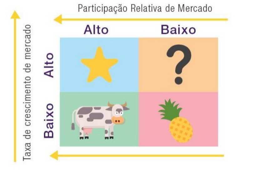 MATRIZ BCG A Matriz BCG tem esse nome porque foi criada pelo Boston Consulting Group, também na década de 1970. Ela tem a função gerenciar o portfólio de produtos e indicar a melhor estratégia de investimentos dentro do Orçamento Empresarial. Basicamente, a Matriz BCG permite a compreensão do momento em que cada produto ou serviço se apresenta no mercado. Ela é composta por dois eixos, representadas num gráfico: crescimento do mercado (eixo y) e participação relativa (eixo x). INTERROGAÇÃO: Esse é o quadrante no qual a empresa precisa prestar mais atenção. Isso porque o crescimento do mercado é alto e a participação ainda é baixa. Ela não está conseguindo desenvolver todo seu potencial. Então, talvez seja o caso de reservar um aporte financeiro maior no orçamento, fazendo com esse produto ou serviço possa vir a ser uma estrela. ESTRELA: Essa é a parte da matriz na qual toda empresa quer que seus produtos estejam, pois chegar nesse quadrante significa que o item tem alta participação de mercado e alta possibilidade de crescimento. Quer dizer, então, que há muito potencial e um bom espaço a ser percorrido. VACA LEITEIRA: Produto ou serviço consolidado e que chegou no limite, pois tem alta participação e baixo crescimento de mercado. Uma avaliação possível, portanto, é de que não vale muito a pena fazer grandes aportes de recursos nele, bastando manter no patamar em que está, sem perder o foco, é claro. ABACAXI: Esse é o quadrante que representa um problema. Nele estão os produtos que possuem baixa participação no mercado e baixa taxa de crescimento. Aqui, cabe a pergunta: até que ponto vale a pena investir nesse produto ou serviço? Talvez seja melhor direcionar esses recursos para produtos que tragam um retorno melhor para o negócio.