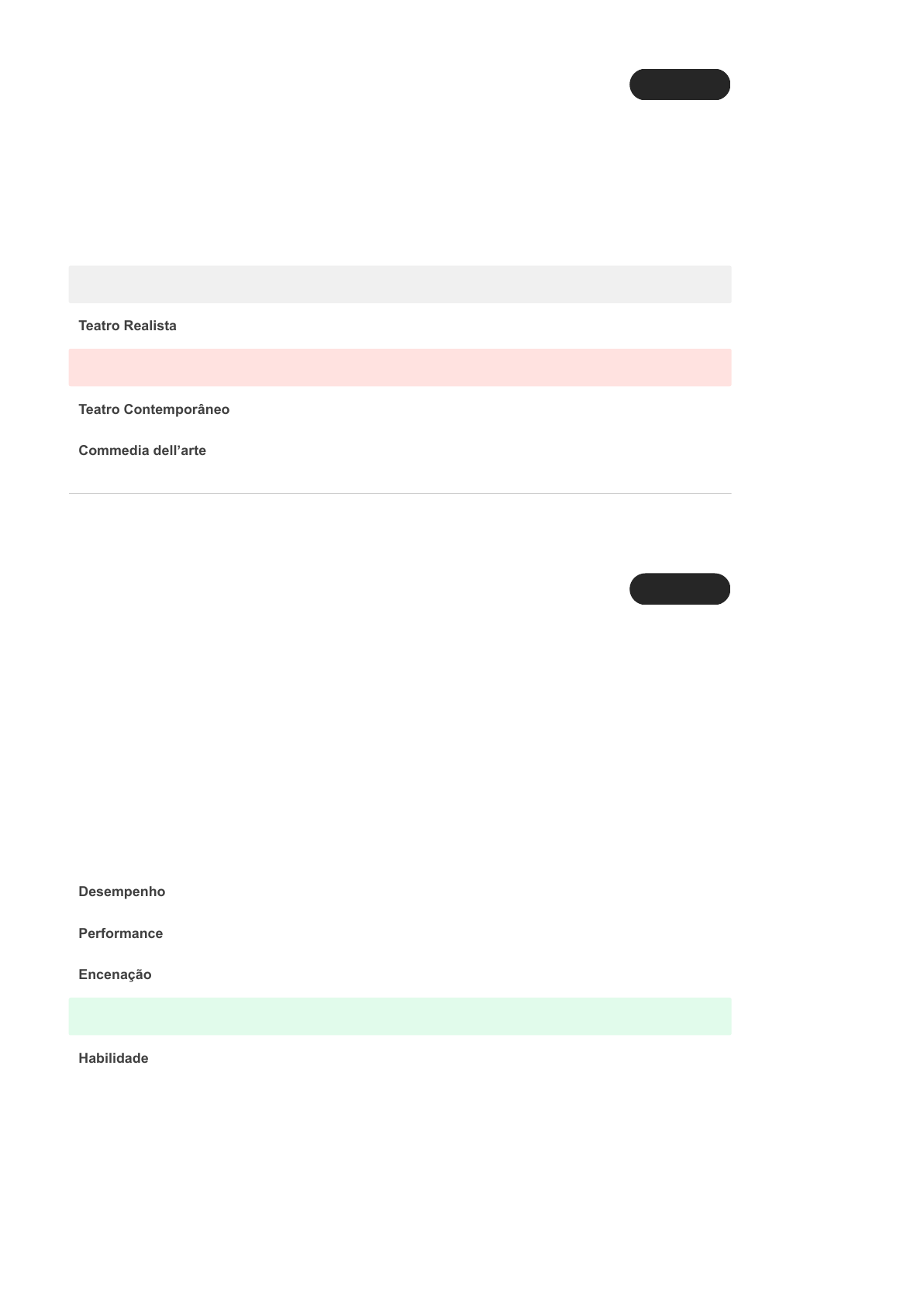 08/07/2021 Comentários https://sereduc.blackboard.com/ultra/courses/_50204_1/outline/assessment/_3712174_1/overview/attempt/_13314771_1/review/inline-feedback?… 1/6 Ocultar opções de resposta Ocultar opções de resposta Pergunta 1 -- /0,6 Nesse tipo de dramaturgia teatral, as personagens eram simulacros da vida real, tentativas de copiar as pessoas tal qual eram, partindo do pressuposto que o teatro deve imitar a vida. O ator deveria se adequar ao papel e não o contrário. O estilo de interpretação era de grande eloquência e demasiadamente afetado. Refere-se: Resposta corretaTeatro Clássico Teatro Realista Incorreta: Teatro Romântico Teatro Contemporâneo Commedia dell’arte Pergunta 2 -- /0,6 Assinale a alternativa que completa a frase: Alguns estudiosos da _____________________ levantaram diversos pontos importantes e específicos referentes ao assunto para teatro. Um deles é que o texto dramático se completa na encenação, ou seja, texto e performance são indissoluvelmente ligados. Portanto, que o texto seja percebido através de um sistema de signos linguísticos associados à performance, de modo que o conteúdo total se mantenha idêntico ao ser transferido de um sistema de signos linguísticos para um sistema de signos performáticos. Desempenho Performance Encenação Resposta corretaTradução Habilidade 08/07/2021 Comentários https://sereduc.blackboard.com/ultra/courses/_50204_1/outline/assessment/_3712174_1/overview/attempt/_13314771_1/review/inline-feedback?… 2/6 Ocultar opções de resposta Ocultar opções de resposta Pergunta 3 -- /0,6 Na montagem de um espetáculo, quem alinha a obra é o: Ator Texto Personagem Incorreta: Cenário Resposta corretaDiretor Pergunta 4 -- /0,6 "É uma expressão cunhada pelo crítico inglês Martin Esslin (1918 - 2002) no fim da década de 1950 para abarcar peças que, surgidas no Pós-Segunda Guerra Mundial, tratam da atmosfera de desolação, solidão e incomunicabilidade do homem moderno por meio de alguns traços estilísticos e temas que divergem radicalmente da dramaturgia tradicional realista." Assinale a alternativa correta que corresponde a definição acima: Resposta corretaTeatro do absurdo. Teatro de sombras. Melodrama. Teatro comédia. 08/07/2021 Comentários https://sereduc.blackboard.com/ultra/courses/_50204_1/outline/assessment/_3712174_1/overview/attempt/_13314771_1/review/inline-feedback?… 3/6 Ocultar opções de resposta Ocultar opções de resposta Teatro dramático. Pergunta 5 -- /0,6 A intervenção de Nossa Senhora, uma figura de deus ex machina, por exemplo, e a salvação dos bons e condenação dos maus têm fundações, como o próprio título sugere nos autos medievais e flerta com a Antiguidade Clássica. Sábato Magaldi (2004), considera que o autor dessa peça dramática alia o popular ao erudito e o regional ao universal. O trecho refere-se a peça: Vestido de noiva Os sete gatinhos Resposta corretaO auto da compadecida Eles Não Usam Black-tie Dona flor e seus dois maridos Pergunta 6 -- /0,6 A partir do início do século XX, alguns movimentos artísticos surgiram pela Europa, contestando as convenções e se opondo ao Realismo e ao Naturalismo vigentes. Foram chamados de vanguardas movimentos como Dadaísmo, Futurismo, Cubismo, Surrealismo e Expressionismo, surgidos nesse momento como uma resposta às necessidades de reformar padrões artísticos, formas e conteúdos. Em relação a Vanguarda, assinale a alternativa INCORRETA. 08/07/2021 Comentários https://sereduc.blackboard.com/ultra/courses/_50204_1/outline/assessment/_3712174_1/overview/attempt/_13314771_1/review/inline-feedback?… 4/6 Ocultar opções de resposta A sociedade, à época, passava por várias transformações com a consolidação da Revolução Industrial, os avanços tecnológicos e científicos. Surgiu, então, a necessidade de colocar a arte dentro do novo contexto, procurando explorar novas estéticas e abordagens. Podemos dizer que os movimentos de vanguardas procuravam chocar o público, usando de ironia e desconstrução, e propondo novas formas de pensar a vida e as situações. As vanguardas artísticas se apresentaram nas artes plásticas, visuais, cinema, teatro, música, escultura, literatura e arquitetura. No Brasil, influenciaram o Modernismo, iniciado na Semana de Arte Moderna, em 1922. Incorreta: O cinema, por exemplo, permitia retratar a realidade de forma mais precisa, uma cópia fiel da vida real. Com isso, as pinturas e as encenações teatrais sempre seriam menos “realistas” que a fotografia ou o filme. Era necessário explorar a arte por outros caminhos, conferindo a ela, ainda, outras funções além de retratar a realidade. Resposta correta A palavra vanguarda (do francês, avant-garde) significa “retaguarda”, colocando os movimentos assim denominados em posição de pioneirismo e inovação. Pergunta 7 -- /0,6 (IFPB – Idecan/2019) Criada por Antonin Artaud, teatrólogo francês, o teatro da crueldade foi marcado pelo ataque ao predomínio do texto no século XX e pelo mergulho em experiências ritualísticas, operando para desorganizar os sistemas de significação de sua época. Para Artaud, as palavras eram incapazes de capturar a vida. Assinale a alternativa correta que destaca os aspectos que tornam possível a intersecção entre Artaud e o teatro contemporâneo. Resposta corretaDesmonte do sujeito – Palimpsesto e fragmento – Corpo como discurso. Teatro da morte – Predomínio visual - Estruturalismo. Erotismo – vanguarda - Religiosidade. Domínio científico – Modernidade – Juízo de Deus. Mímese e representação – Verborragia e caricatura – Dialética do esclarecimento. 08/07/2021 Comentários https://sereduc.blackboard.com/ultra/courses/_50204_1/outline/assessment/_3712174_1/overview/attempt/_13314771_1/review/inline-feedback?… 5/6 Ocultar opções de resposta Ocultar opções de resposta Pergunta 8 -- /0,6 É geralmente coordenada pela direção de atores