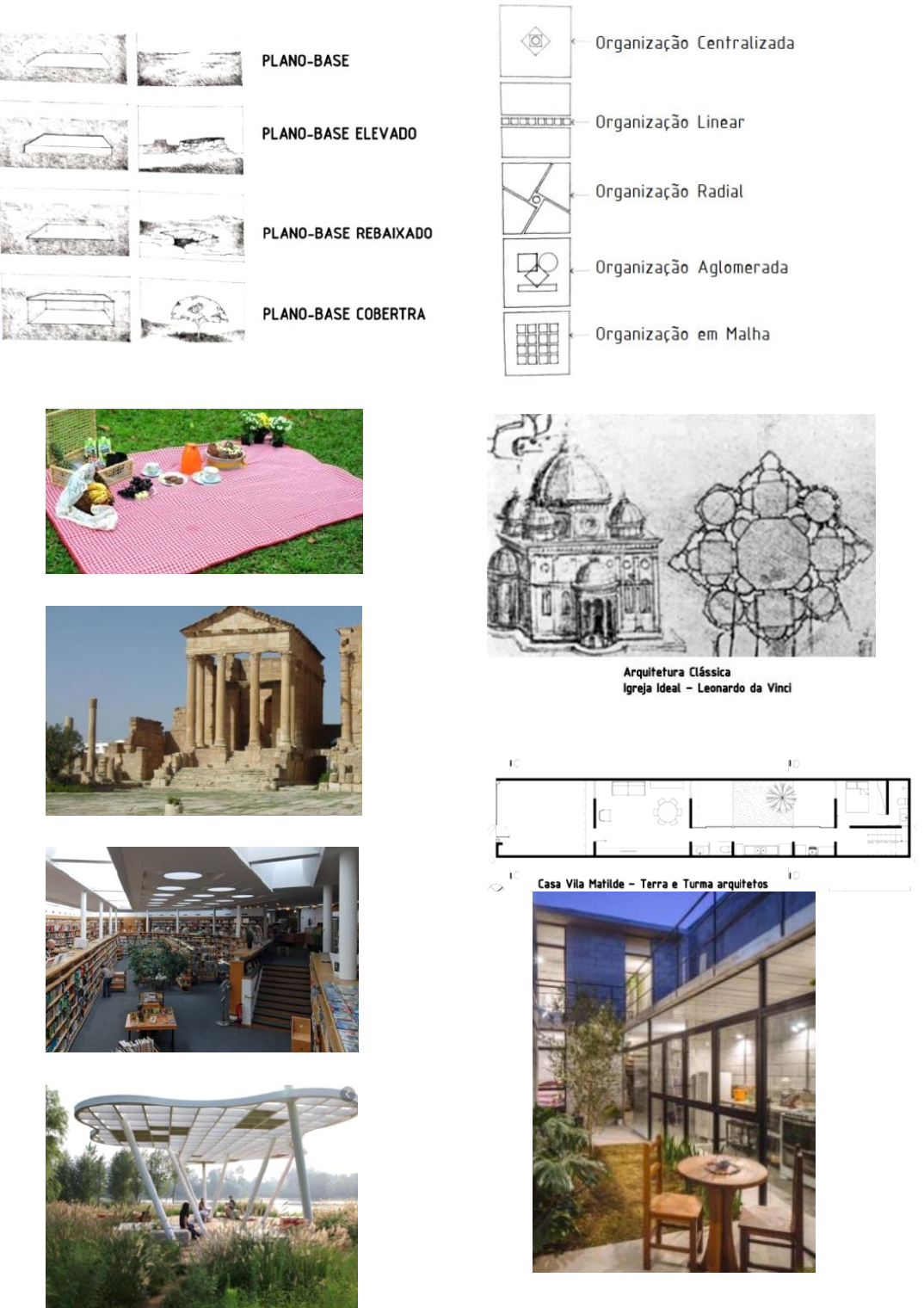 2.2 O Espaço Ex.1: Plano-Base Plano-Base Elevado Plano-Baixo Rebaixado Plano-Baixo Coberta: 3. A Ordem 3.1 Organização Centralizada 3.2 Organização Linear Página 1 de Fundamentos da ARQ