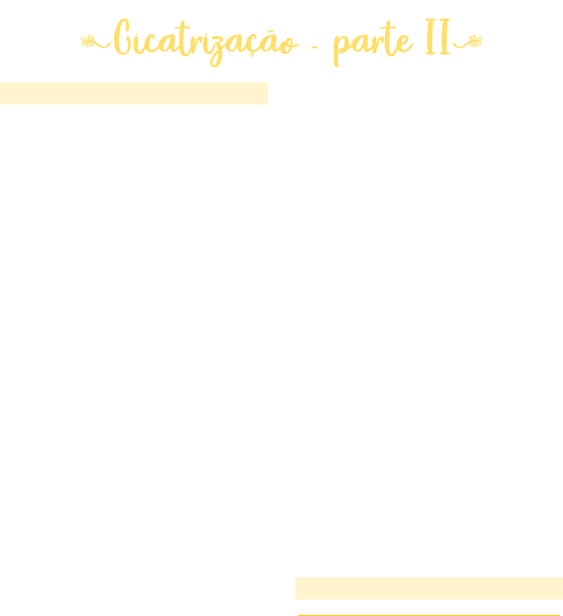INTRODUÇÃO O processo cicatricial, na maioria das vezes, ocorre de forma rápida e satisfatória. obs: todas aquelas fases explicadas na aula anterior; se não houver nada atrapalhando, como uma infecção, hipóxia, trauma mais extenso, necrose a cicatriz desenvolve muito rápido A cicatrização patológica pode estar relacionada a inúmeros fatores, como infecção, hipoalbuminemia, má perfusão tecidual, doenças preexistentes (como diabetes e obesidade), irradiação, tabagismo, uso de corticoide, entre outros. *Cada uma dessas alterações, no organismo, age em uma determinada fase e altera a cicatrização; lembrar que —> a infecção pode agir nas 3 fases; o DM pode causar alterações microvasculares bem como pode alterar a parte de opsonização das células no combate à infecção, a qual pode estar diminuída e isso atrasa a cicatrização; pode ter um componente vascular associado (insuficiência venosa, insuficiência arterial crônica, etc.) — tudo isso leva a uma cicatrização patológica (≠ do processo normal) Também interferem na velocidade e qualidade da cicatrização o tamanho, a localização da lesão, o mecanismo de trauma, raça, idade e fatores genéticos do paciente. 1. Feridas grandes demoram mais para cicatrizar; 2. A localização influencia no tempo de cicatrização, ex.: na face cicatriza mais rápido; e até por conta disso o tempo que deixa o ponto depende da pele de cada região, ex.: na face tira os pontos entre 6, 7 ou no máximo 8 dias, nos MMII tira com 2 ou até 3 semanas ou mais, então cada pele de cada região vai ser importante no processo de cicatrização (isso devido a vascularização) 3. Se foi só uma lesão abrasiva/superficial ou lesão mais profunda que acometeu fáscia, músculo → tem-se queimadura associada, área de isquemia; 4. Negro e oriental → tem alterações significativas em relação a queloide e cicatriz hipertrófica, eles têm piora da resposta cicatricial; (tendem a ter uma cicatriz mais pigmentada) 5. Crianças têm cicatrização melhor e, apesar da cicatrização nos idosos ser mais lenta ela costuma ser boa (não costuma ter queloide em idosos), diferente das pessoas mais jovens, principalmente na puberdade e adultos jovens que sofrem influência hormonal; 6. Pais com alteração cicatricial muito provavelmente também se observa nos filhos Tão importante quanto a formação do tecido cicatricial provisório é a sua degradação, que, se ocorrer de maneira inadequada, pode levar à fibrose excessiva. *então tudo tem que ser compensado - a medida que tem a cicatrização tem que ter a degradação do tecido que já não for mais importante para a cicatriz; excesso de colágeno e não tiver uma degradação suficiente para deixar uma concentração ideal na ferida acaba atrapalhando a cicatrização e isso é chamado de tecido de fibrina (quando tem aquele tecido mais amarelado) A cicatriz patológica pode levar a situações graves e incapacitantes, como nas sequelas de queimadura (que podem provocar estenoses orificiais e bridas palpebrais, cervicais ou interdigitais) e na estenose cáustica do esôfago, por exemplo. *estenose orificial → cicatriz ao redor da boca que fica tão fibrótica que a cicatriz não tem distensibilidade, deixando-a limitada e impedindo a mobilidade da boca (não consegue fazer uma abertura total da boca p.ex.); *Em região de articulação, p.ex. quando tem queimadura, pode ter uma brida ou sinéquia naquela região e não conseguir fazer a extensão completa do membro, ficando sempre travado; bridas palpebrais não consegue ter a mobilização das pálpebras; estenose no esôfago por conta de queimadura com produtos básicos – soda cáustica (p.ex.: tentativa de suicídio) DISTÚRBIOS FIBROPROLIFERATIVOS 1. CICATRIZES HIPERTRÓfiCAS São cicatrizes elevadas, tensas, lisas, sem sulcos, poros ou pelos, de coloração avermelhada, que não ultrapassam os limites da lesão original e tendem a regredir, total ou parcialmente, ao longo do tempo. Podem apresentar dor e/ou prurido e são decorrentes de distúrbios fibroproliferativos da derme, por trauma ou inflamação local. *o fato de não ultrapassem os limites é um sinal clínico muito importante na diferenciação entre cicatriz hipertrófica e queloide; qualquer cicatriz, seja por uma incisão cirurgia ou trauma, pode causar cicatriz dessa maneira; geralmente são autolimitadas, ou seja, conseguem se resolver sozinhas depois de um certo tempo (diferentes do queloide → muita dificuldade para conseguir lidar com a cicatriz queloide, por ela ser muito mais agressiva e se comportar como um tumor mesmo de pele - apesar de não ser classificada como um tumor Podem ocorrer em qualquer idade e local do corpo e tendem a regredir espontaneamente, são mais comuns que o queloide e geralmente mais responsivas ao tratamento. *80 a 90% são cicatrizes hipertróficas; 10% são queloides As cicatrizes hipertróficas geralmente se desenvolvem antes de completar 4 semanas da lesão. obs: se desenvolvem geralmente um pouco antes da formação de um queloide; são ocasionadas SEMPRE por uma lesão; o queloide, em alguns casos, pode se desenvolver espontaneamente, ou seja, sem lesão prévia/externa obs: a cicatriz hipertrófica fica elevada, é inestética, formada por um cordão fibroso regular, que respeita os limites da ferida, geralmente é edificado 2. QUELOIDES obs: geralmente tem exacerbação dos sintomas - paciente reclama de dor e coça desesperadamente essa coceira acontece porque tem muitas células de mastócitos e eles degranulam e liberam histamina na região; pouco responsivo ao tratamento, apenas de ter uma certa resposta não atenua (40 a 50% regridem com tratamentos combinados) São cicatrizes com forma tumoral (nodulares, multinodulares, pediculadas ou não), de consistência endurecida, de superfície lisa, com tonalidade avermelhada, violácea ou acastanhada, dolorosas e pruriginosas e que ultrapassam os limites 