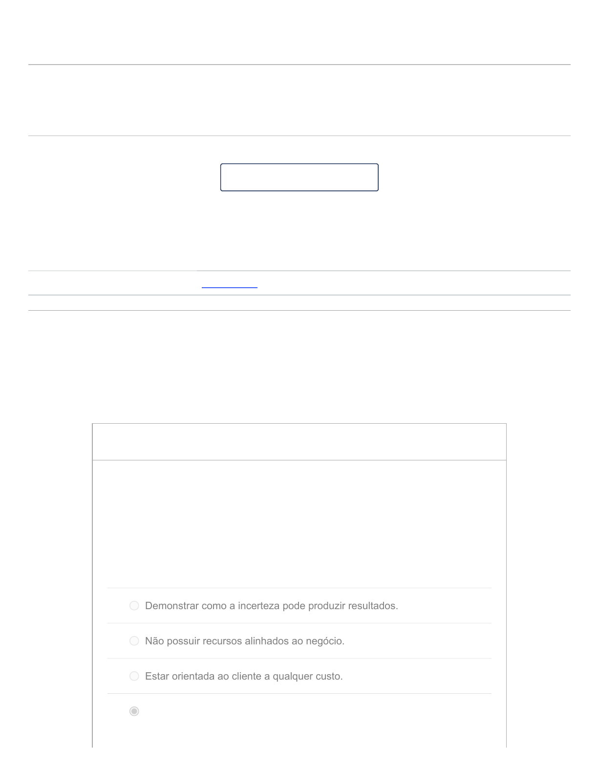 5/28/2021 Avaliação Geral da Disciplina: MODELAGEM DE PROCESSOS DE NEGÓCIO https://cruzeirodosul.instructure.com/courses/12258/quizzes/51945 1/11 Avaliação Geral da Disciplina Entrega Sem prazo Pontos 10 Perguntas 15 Disponível 20 mai em 0:00 - 31 mai em 23:59 12 dias Limite de tempo Nenhum Tentativas permitidas 3 Histórico de tentativas Tentativa Tempo Pontuação MAIS RECENTE Tentativa 1 24 minutos 9,33 de 10 As respostas corretas estão ocultas. Pontuação desta tentativa: 9,33 de 10 Enviado 28 mai em 18:47 Esta tentativa levou 24 minutos. Fazer o teste novamente 0,66 / 0,66 ptsPergunta 1 Business process management foca na melhoria e gestão de processos de negócios da empresa – do princípio ao fim –, visando atingir três resultados cruciais. Assinale a alternativa que contém um desses resultados esperados: Demonstrar como a incerteza pode produzir resultados. Não possuir recursos alinhados ao negócio. Estar orientada ao cliente a qualquer custo. Estar orientada ao cliente, mas sem abrir mão do desempenho. https://cruzeirodosul.instructure.com/courses/12258/quizzes/51945/history?version=1 https://cruzeirodosul.instructure.com/courses/12258/quizzes/51945/take?user_id=235583 5/28/2021 Avaliação Geral da Disciplina: MODELAGEM DE PROCESSOS DE NEGÓCIO https://cruzeirodosul.instructure.com/courses/12258/quizzes/51945 2/11 Contratar sempre mais pessoas, nem que isso a faça abrir mão do desempenho. Um dos resultados mais importantes e visíveis pelas empresas que utilizam a modelagem de negócios é a preocupação no aumento da eficácia e eficiência mediante um desempenho correto, superior e percebido pelo cliente. Ou seja, tudo é feito para o cliente, mas sem abrir mão do desempenho. Cada vez mais rápido, cada vez melhor. 0,66 / 0,66 ptsPergunta 2 Os modelos nos permitem examinar os seguintes aspectos, EXCETO: Fazer recomendações de melhoria a partir de sua análise. Entender suas metas de desempenho a longo prazo. Não se prestar a monitoramentos, reconstruções e/ou redesenhos. Representar uma fração do mundo real. A forma como uma organização funciona. É exatamente o contrário, afinal, os modelos de processos nos permitem redesenhar, reconstruir e monitorar tais processos para garantir que são eficazes. 5/28/2021 Avaliação Geral da Disciplina: MODELAGEM DE PROCESSOS DE NEGÓCIO https://cruzeirodosul.instructure.com/courses/12258/quizzes/51945 3/11 0,66 / 0,66 ptsPergunta 3 São benefícios importantes na modelagem de negócios os seguintes, EXCETO: Gestão de riscos focada no cumprimento estabelecido e na ausência de não conformidades. Simplificação de processos de negócios para impulsionar a eficácia, eficiência e agilidade. Melhora dos níveis de serviço ao cliente e aumento de sua satisfação. Aumento dos custos para melhorar fluxos de receita, abaixando a margem. Aceleração do time to market de produtos e serviços. Na verdade, um benefício importante no contexto da alternativa em questão seria reduzir custos e melhorar fluxos de receita. 0,66 / 0,66 ptsPergunta 4 Uma vez que os novos modelos de processos são desenhados, bem como as mudanças são implementadas, o próximo passo é largar o processo, de modo que se autoajuste. 5/28/2021 Avaliação Geral da Disciplina: MODELAGEM DE PROCESSOS DE NEGÓCIO https://cruzeirodosul.instructure.com/courses/12258/quizzes/51945 4/11 testar sua futura eficácia. ignorar a transição do serviço, a qual não é levada em consideração nesses casos. ignorar o novo processo e deixar as pessoas à vontade quanto às práticas. cortar postos de trabalho e sobrecarregar os contratados restantes. Uma vez que os novos modelos de processos são desenhados e as mudanças implementadas, deve-se testar a futura eficácia dos quais, de modo que os profissionais de modelagem devem trabalhar constantemente para atualizar e melhorar ainda mais tais soluções. 0,66 / 0,66 ptsPergunta 5 A modelagem de negócios utiliza um livro conhecido como Babok, sigla esta que significa Business Analysis Body of Knowledge. Big Analysis Body of Knowledge Business Analyst Beware of Knowledge. Body Analysis Beneth of Knowledge. Business Analyst Body of Knew. 5/28/2021 Avaliação Geral da Disciplina: MODELAGEM DE PROCESSOS DE NEGÓCIO https://cruzeirodosul.instructure.com/courses/12258/quizzes/51945 5/11 Babok significa Business Analysis Body of Knowledge ou, em português, Corpo de conhecimento em análise de negócios. 0,67 / 0,67 ptsPergunta 6 O que as regras de negócio fazem em sua essência? Restringem aspectos futuros do negócio, apenas. Desprezam o usuário. Definem especificidades e anacronismos idiossincráticos. Expõem o usuário e suas ineficiências. Definem ou restringem algum aspecto de negócio. A regra de negócio define ou restringe algum aspecto dessa área e sempre é testada com verdadeiro ou falso. Confirma uma estrutura de negócio para controlar ou até mesmo influenciar o seu comportamento. Descreve as operações, definições e restrições que se aplicam a uma empresa. 0,67 / 0,67 ptsPergunta 7 Regras de dedução especificam 5/28/2021 Avaliação Geral da Disciplina: MODELAGEM DE PROCESSOS DE NEGÓCIO https://cruzeirodosul.instructure.com/courses/12258/quizzes/51945 6/11 Se determinados fatos são verdadeiros, de modo que uma conclusão pode ser deduzida. Se falsos fatos sobre classes e modelagem de dados cooperativos podem ser gravados. O comportamento determinado e invariante. Os invariantes e seus resultados pela forma de processar algoritmos. Se determinados fatos são falsos, de modo que uma conclusão pode ser deduzida. Regras de dedução especificam que se determinados fatos são verdadeiros, uma conclusão pode ser deduzida. 0,67 / 0,67 ptsPergunta 8 Apelar para padrões é útil para ajudar a resolver qual tipo de problema? Recorrente. Insurgente. Divergente. Indefinido. Incoerente. 5/28/2021 Avaliação Geral da Disciplina: MODELAGEM DE PROCESSOS DE NEGÓCIO https://cruzeirodosu