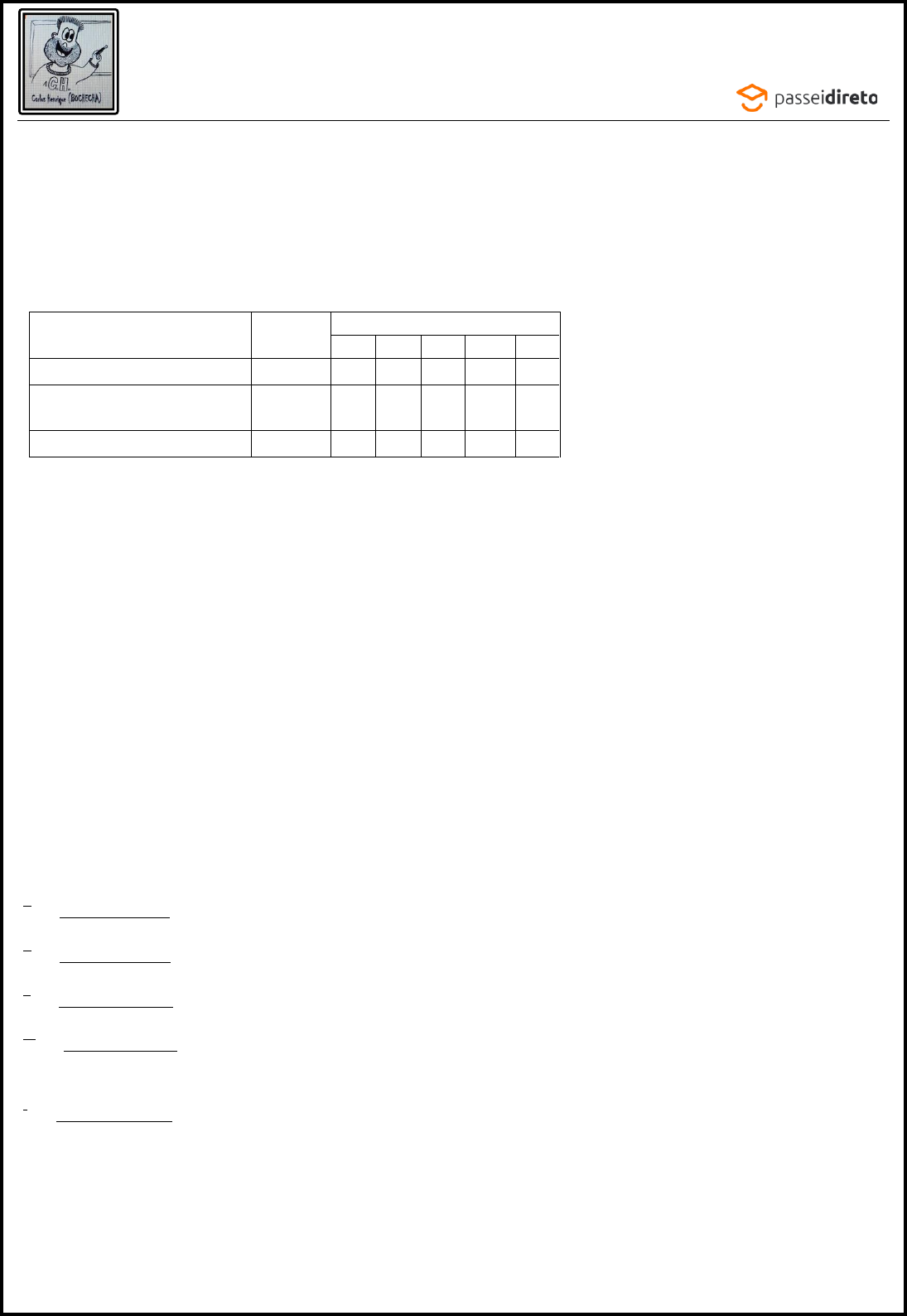 Matemática por assunto - ENEM 2020 Prof. Carlos Henrique (Bochecha) Estatística Página 1 de 1 Média aritmética ponderada 6. (Enem 2020) Com o objetivo de contratar uma empresa responsável pelo serviço de atendimento ao público, os executivos de uma agência bancária realizaram uma pesquisa de satisfação envolvendo cinco empresas especializadas nesse segmento. Os procedimentos analisados (com pesos que medem sua importância para a agência) e as respectivas notas que cada empresa recebeu estão organizados no quadro. Procedimento Peso Notas da empresa X Y Z W T Rapidez no atendimento 3 5 1 4 3 4 Clareza nas informações passadas aos clientes 5 1 4 3 3 2 Cortesia no atendimento 2 2 2 2 3 4 A agência bancária contratará a empresa com a maior média ponderada das notas obtidas nos procedimentos analisados. Após a análise dos resultados da pesquisa de satisfação, os executivos da agência bancária contrataram a empresa a) X. b) Y. c) Z. d) W. e) T. Resposta: [C] Tem-se que p p p p 3 5 5 1 2 2 x 2,4, 3 5 2 3 1 5 4 2 2 y 2,7, 3 5 2 3 4 5 3 2 2 z 3,1, 3 5 2 3 3 5 3 2 3 w 3 3 5 2 + + = = + + + + = = + + + + = = + + + + = = + + e p 3 4 5 2 2 4 t 3. 3 5 2 + + = = + + Por conseguinte, a empresa contratada foi a Z.